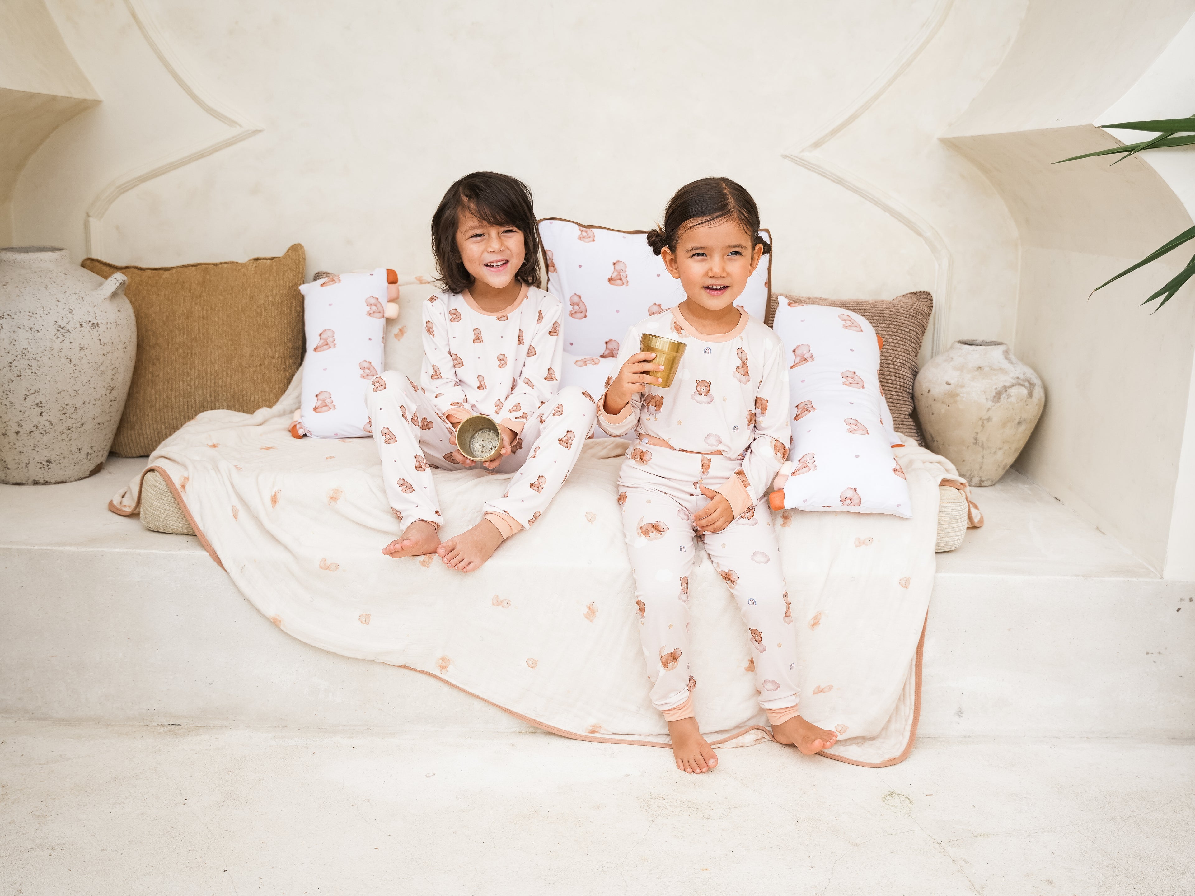 Here, all the bears are sleeping on clouds, drifting through dreams of endless possibilities. With our signature bear reaching for the stars, we’ve woven in our iconic logo bear print. This design inspires your little ones to dream big and reach for the stars with courage and curiosity.