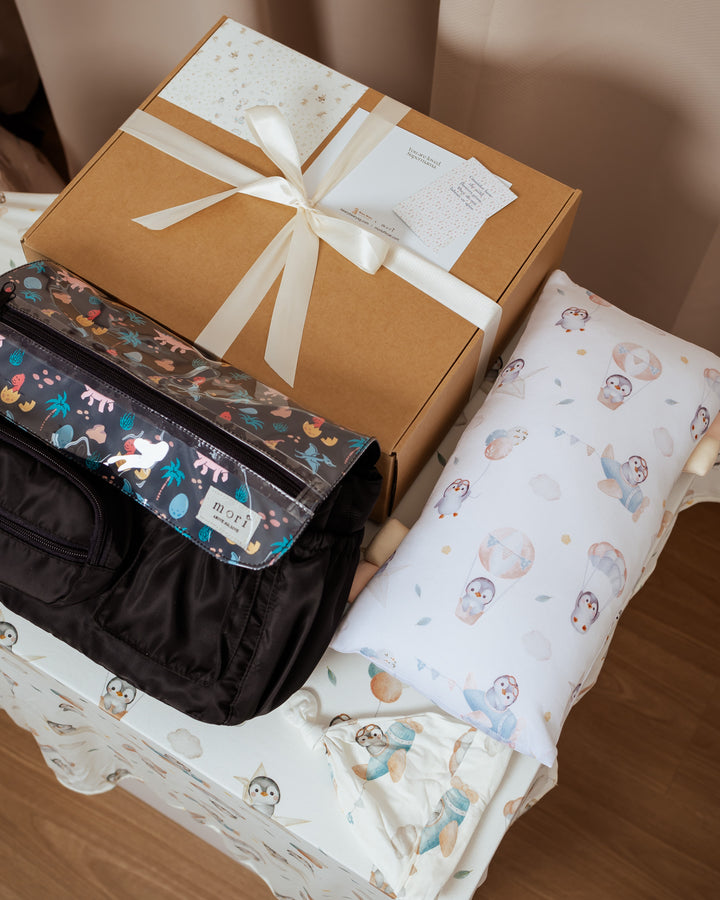 Stroller Organiser + Baby Bamboo Swaddle + Baby Bamboo Pillow + Gift-Ready Box Packaging with Gift Card