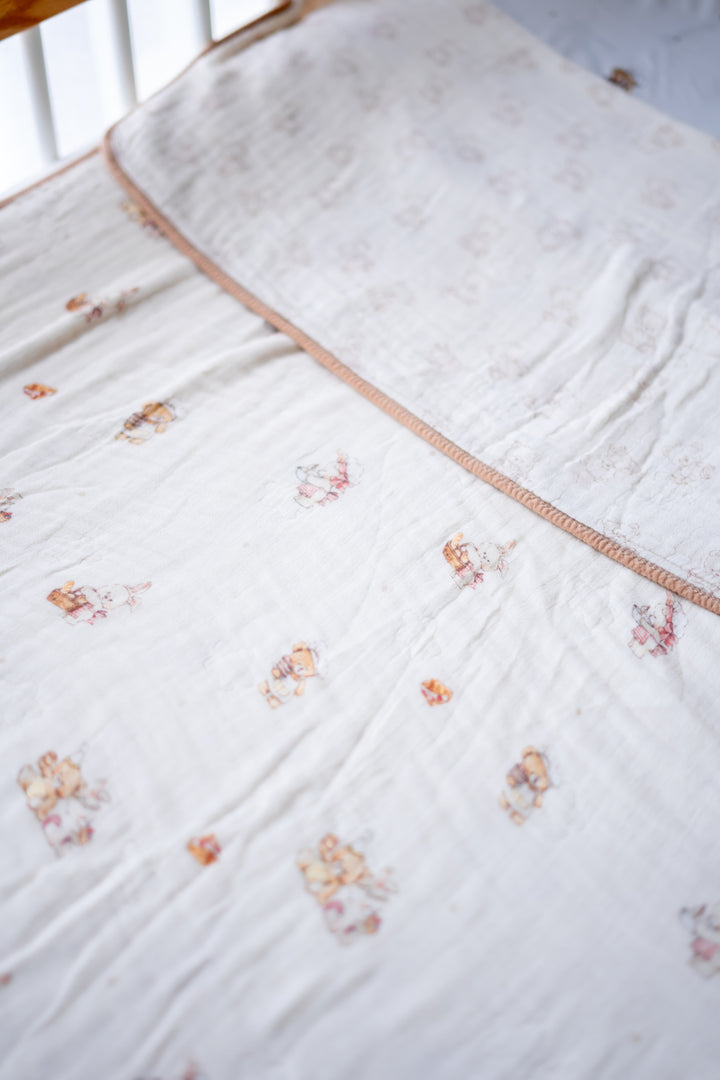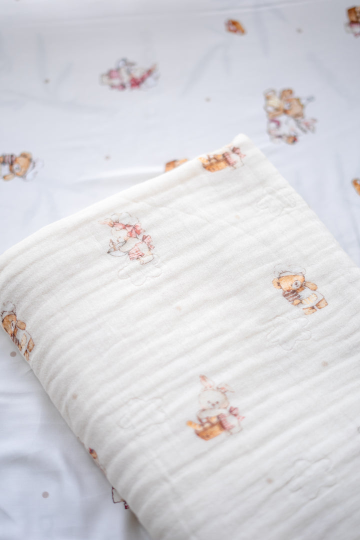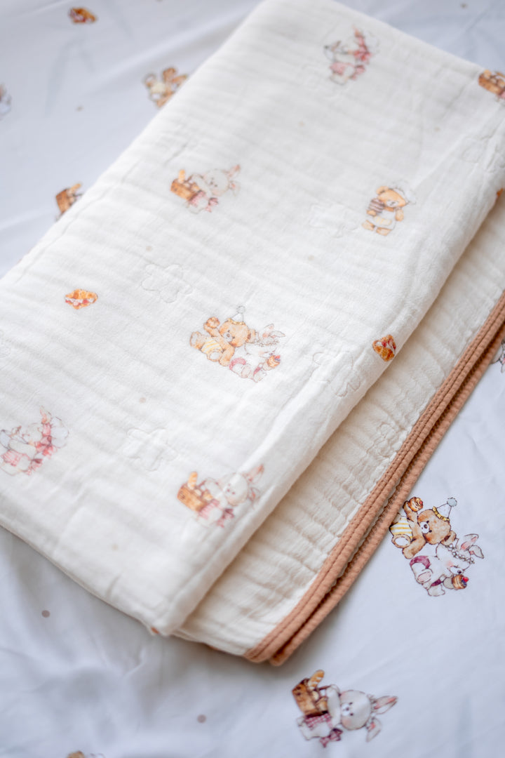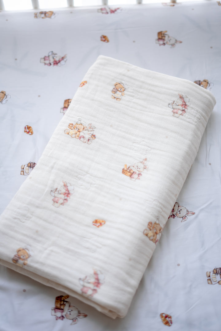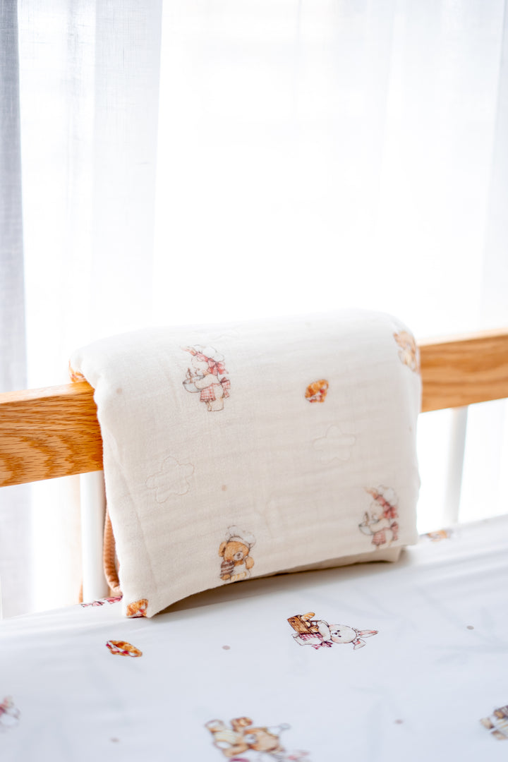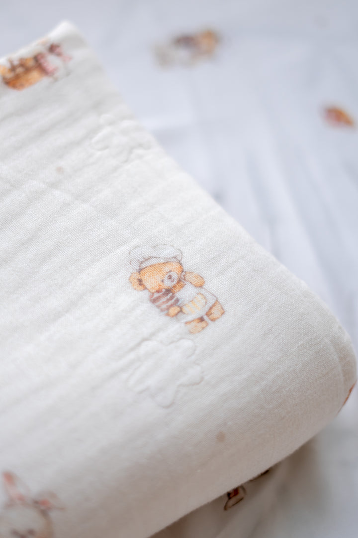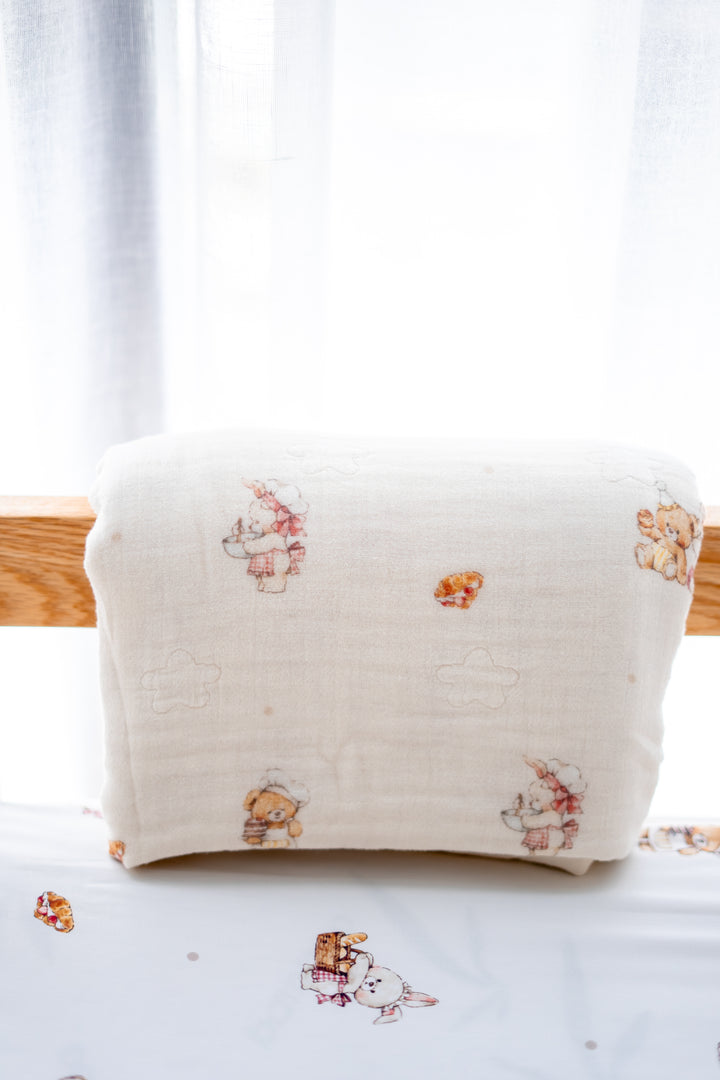 Bakery Cafe / Teddy Outlined Bamboo Cotton Blanket