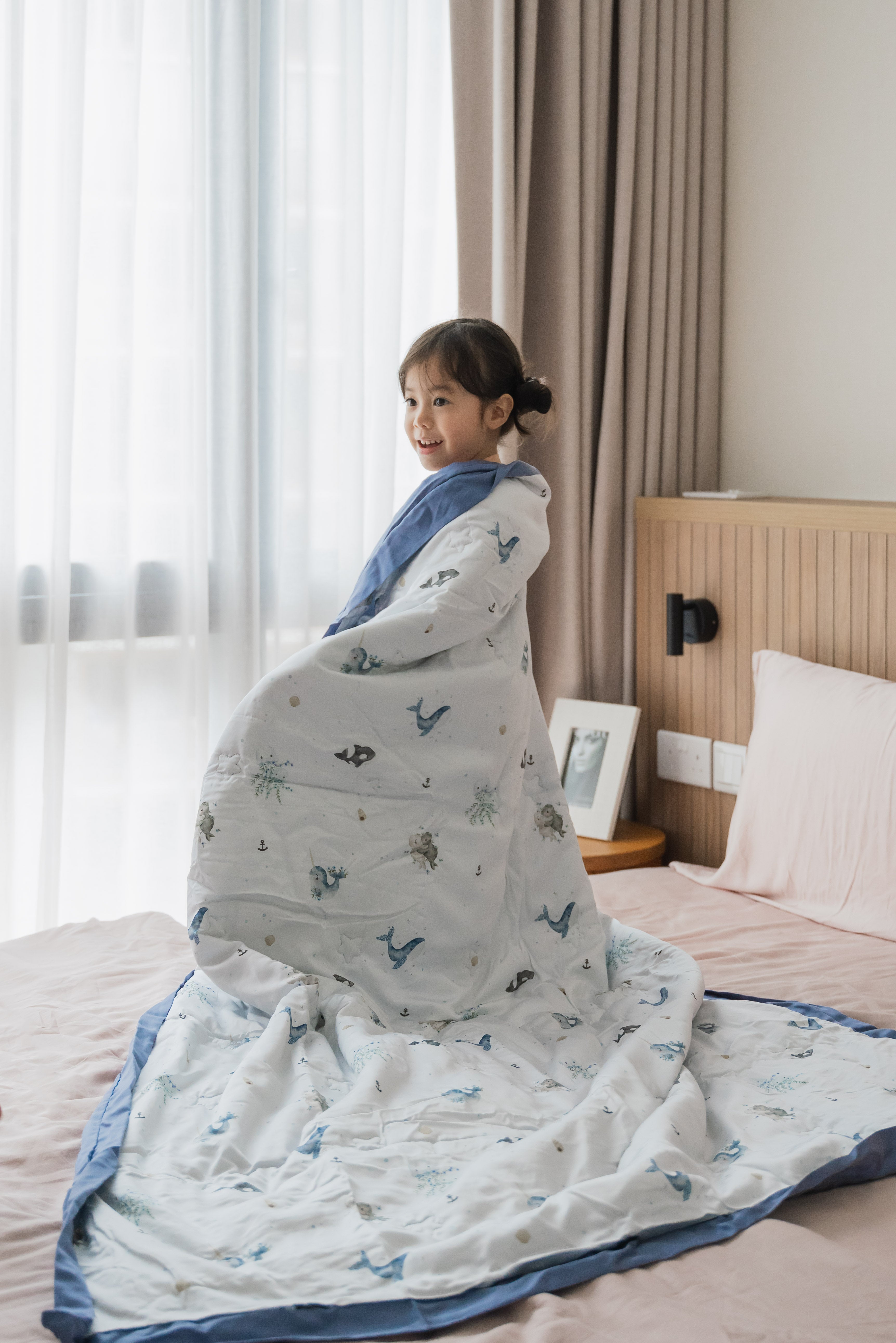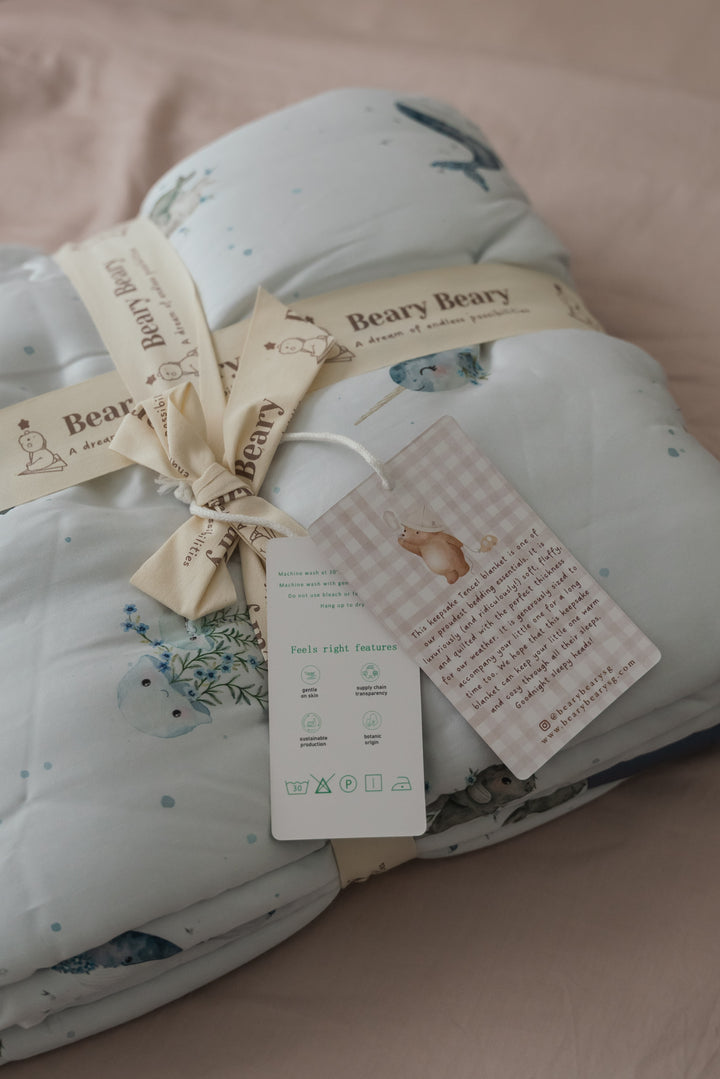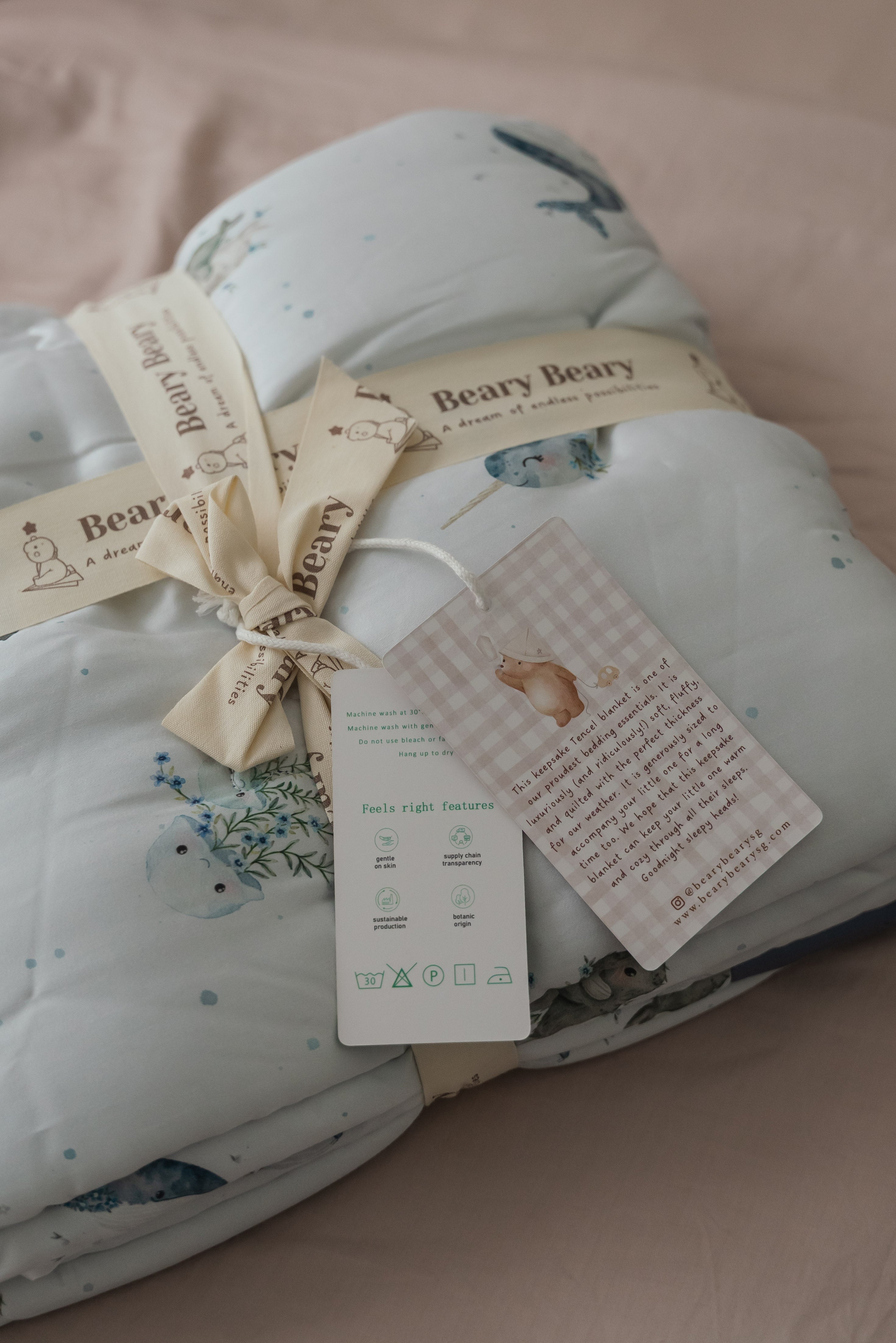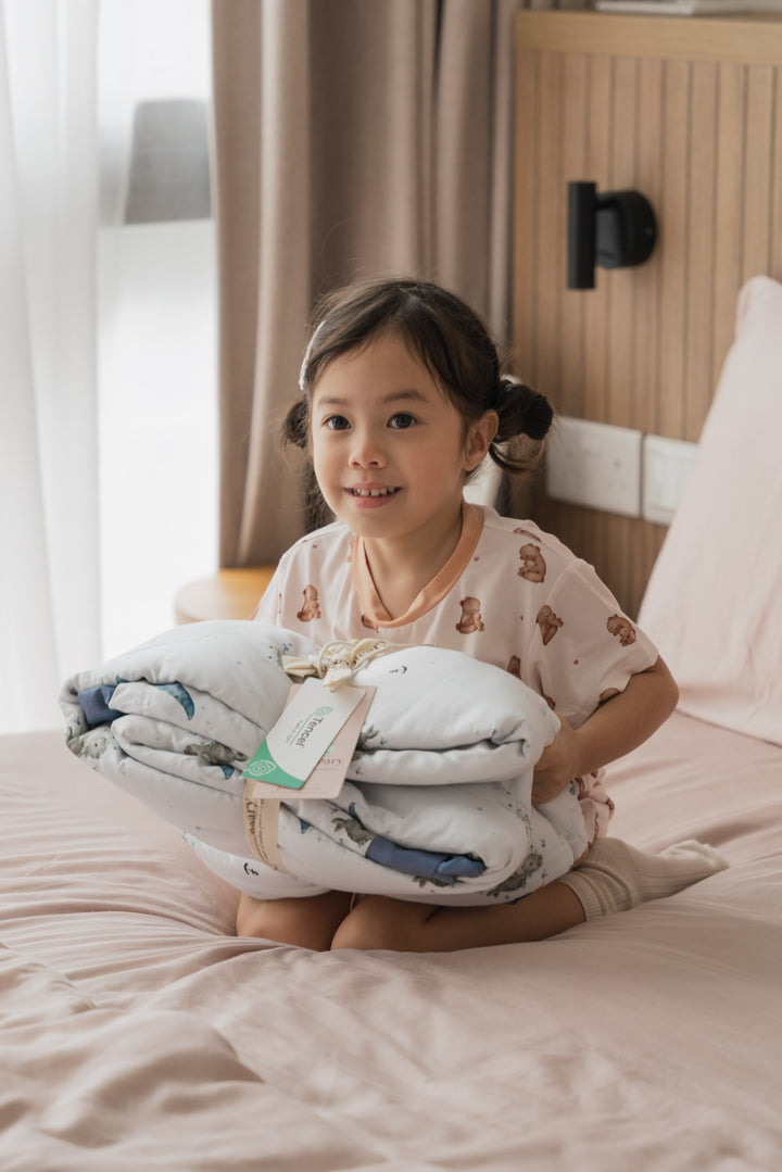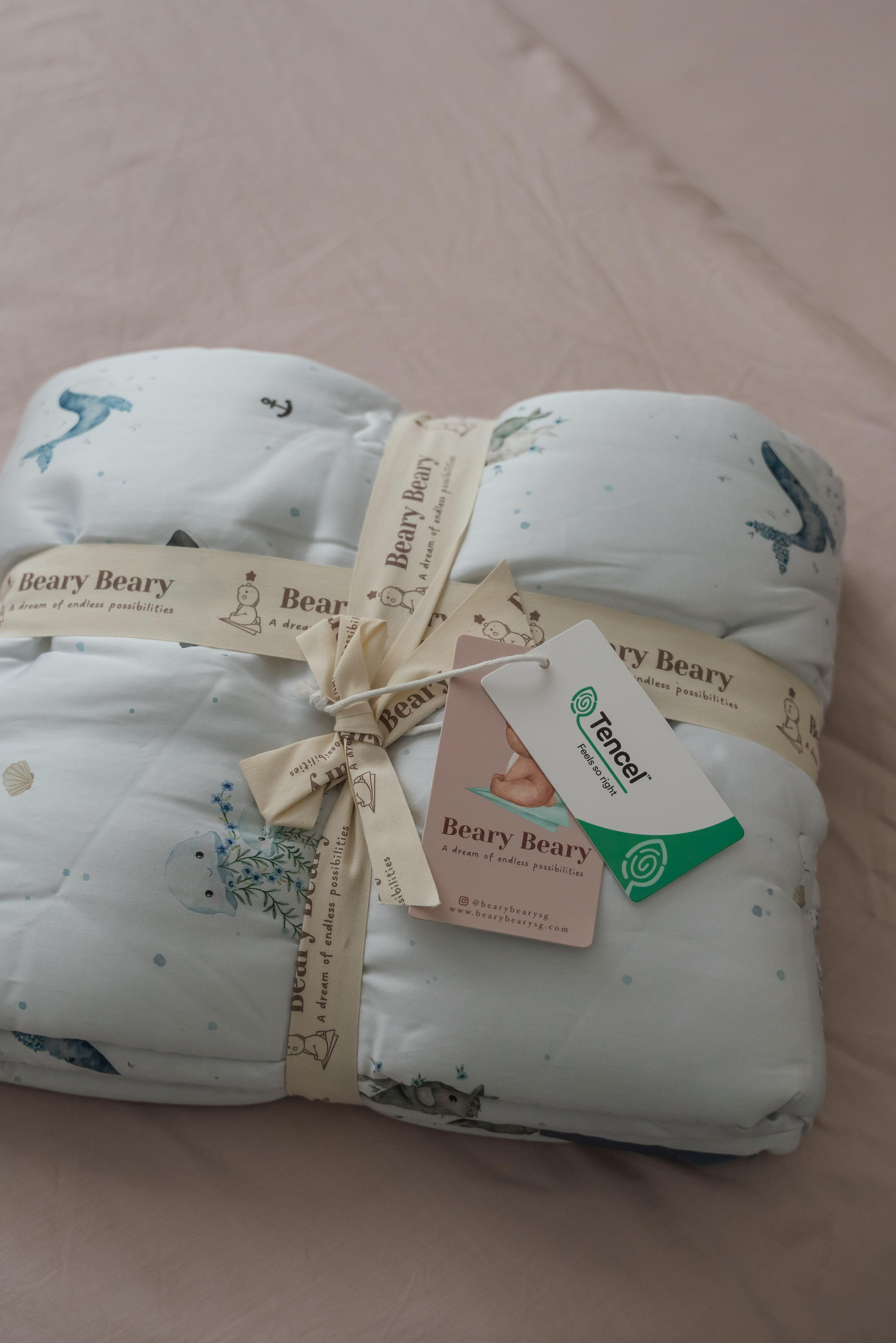 Introducing one of our proudest creations: the Quilted Tencel Blanket. Crafted for the ultimate in comfort, this luxurious blanket boasts a ridiculously soft and smooth texture, making it the perfect companion for snuggling at bedtime. Quilted with our premium cotton, it keeps your little one cozy and warm, even in air-conditioned rooms.