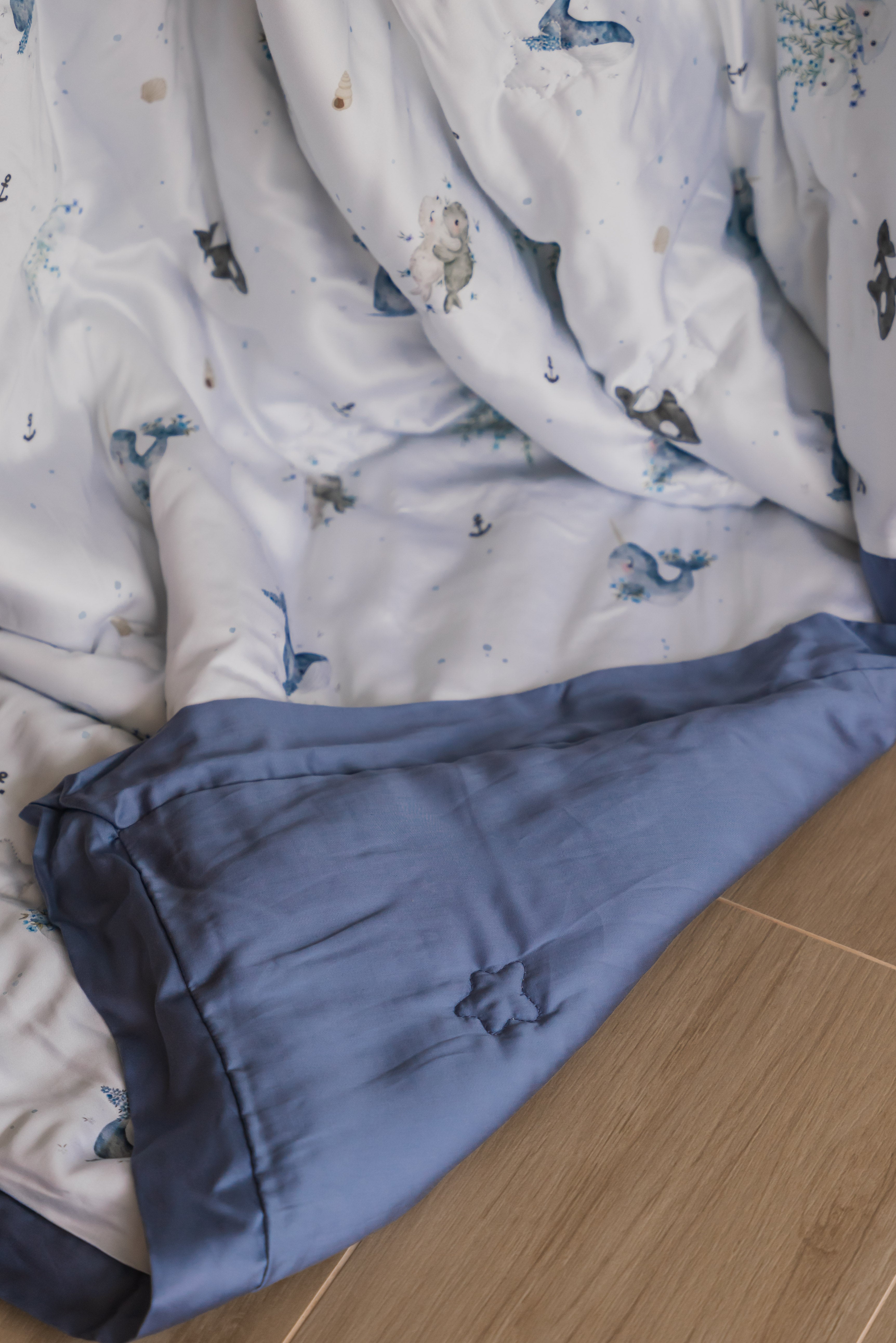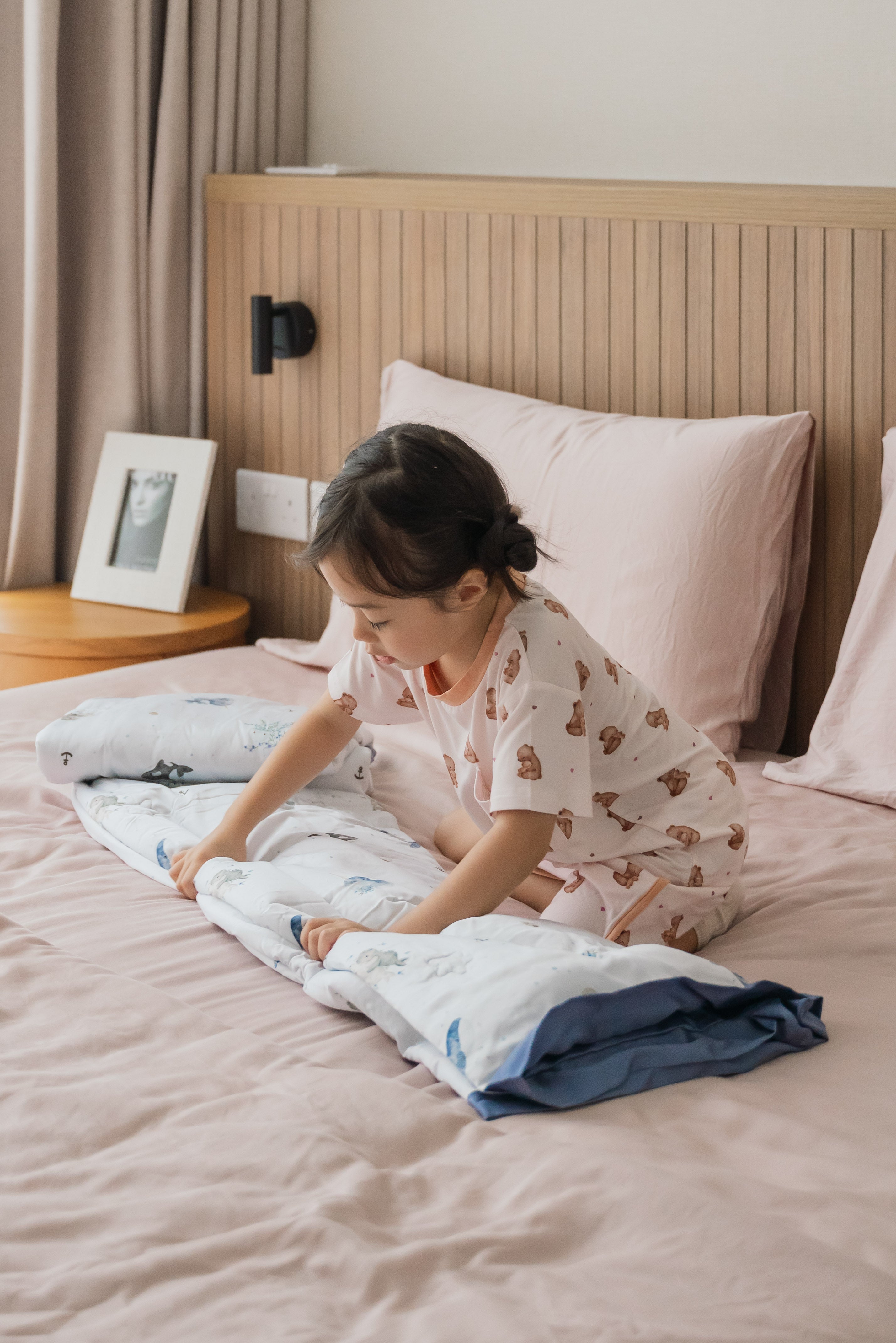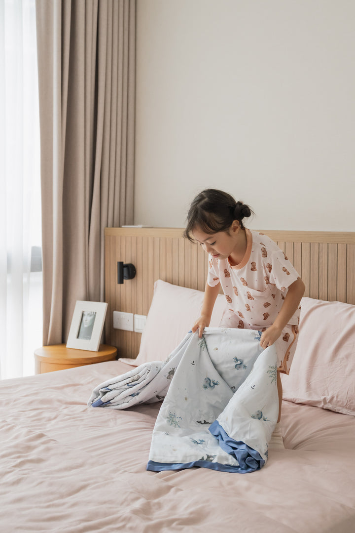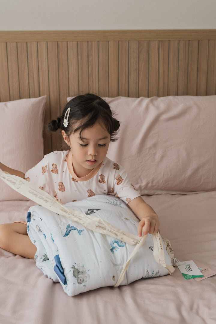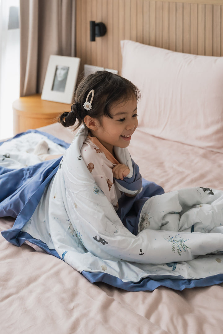 Introducing one of our proudest creations: the Quilted Tencel Blanket. Crafted for the ultimate in comfort, this luxurious blanket boasts a ridiculously soft and smooth texture, making it the perfect companion for snuggling at bedtime. Quilted with our premium cotton, it keeps your little one cozy and warm, even in air-conditioned rooms.