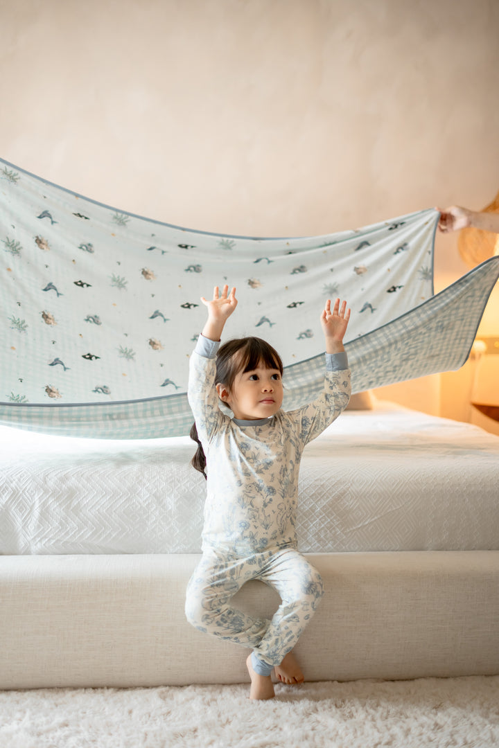 [Blanket] Ocean World/ Checkered Double Printed Bamboo Blanket