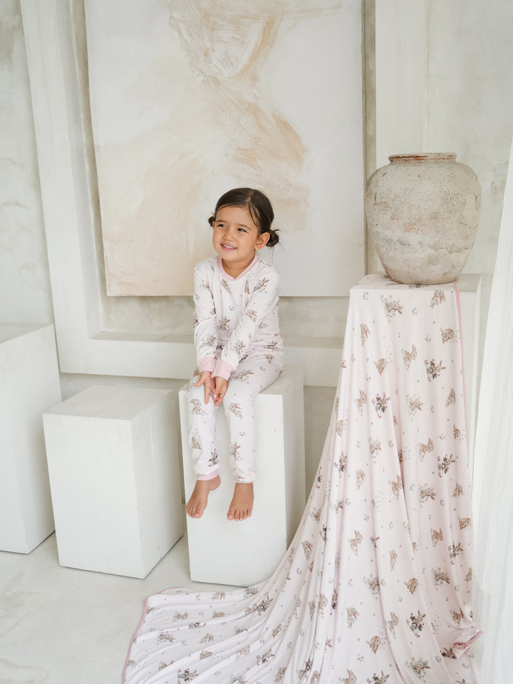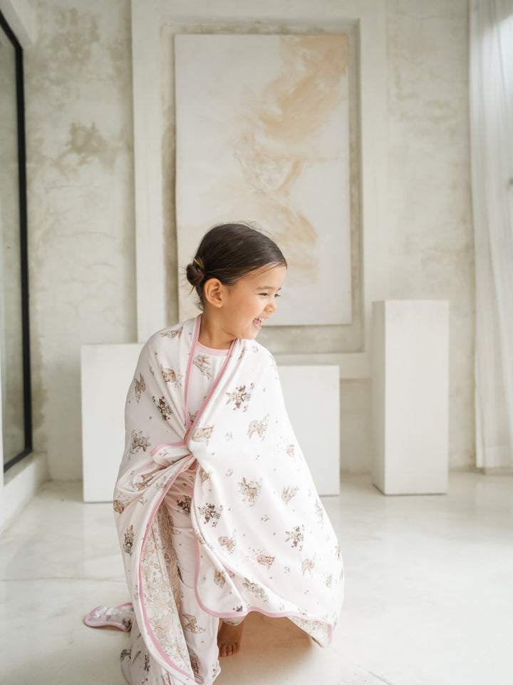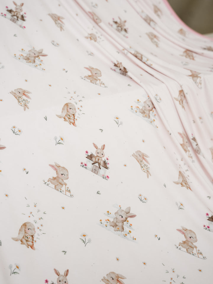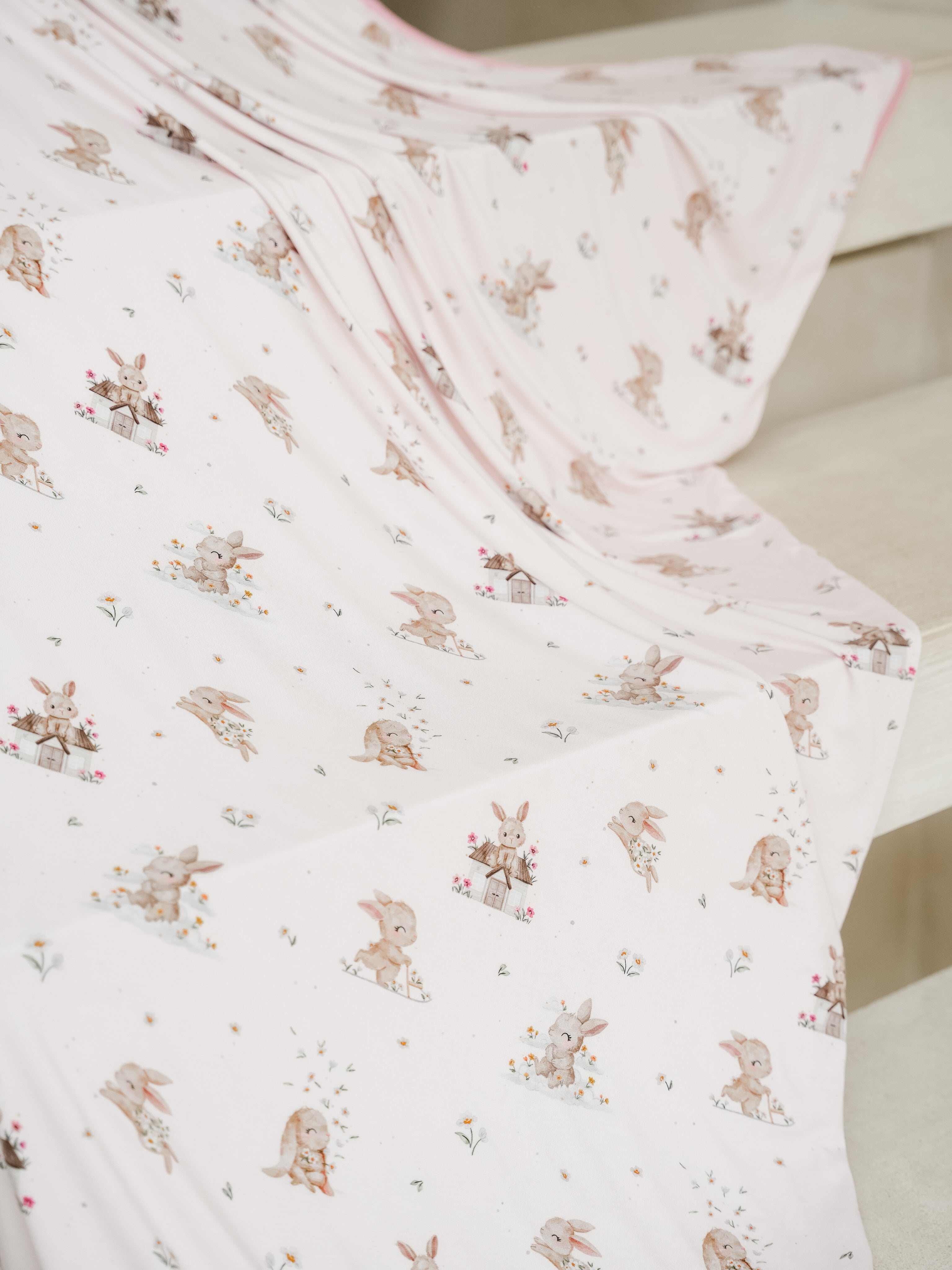 [Blanket] Bunnies Meadow/ Floral Bunny Double Printed Bamboo Blanket