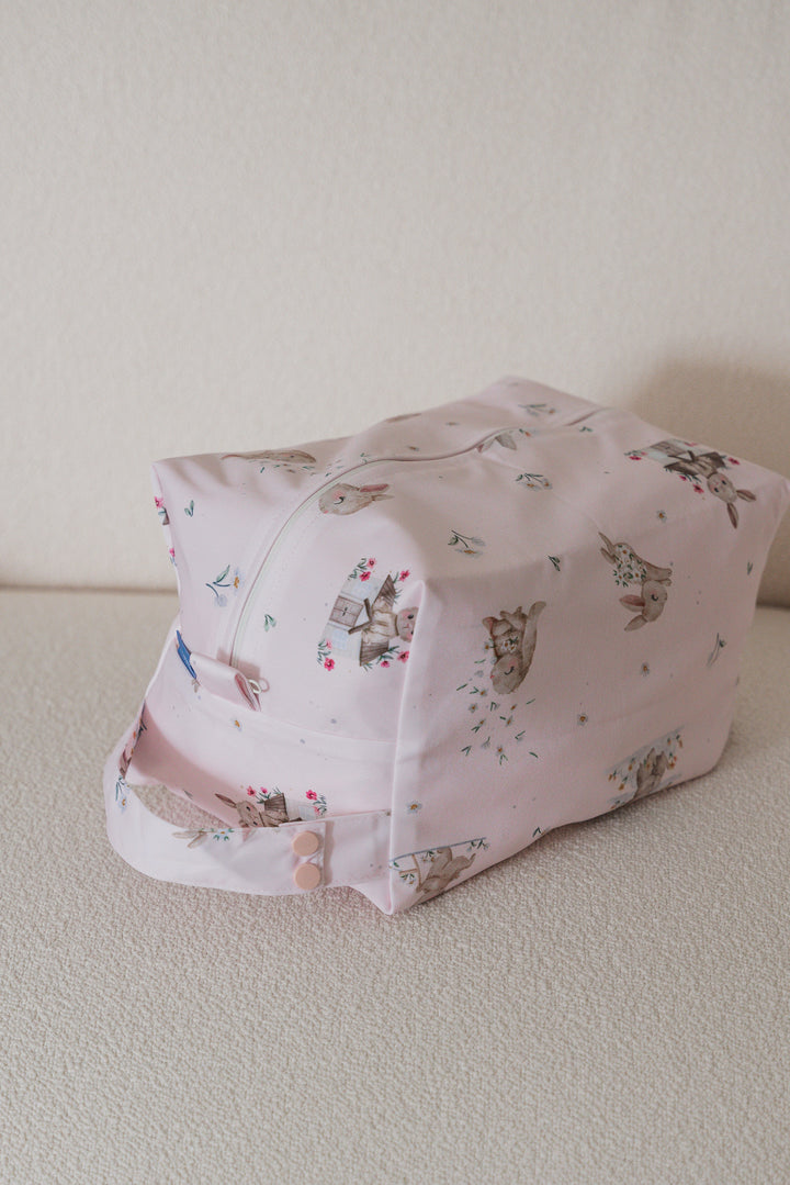 Crafted with care, these bags feature a snap-button handle for easy hanging on a stroller or in the bathroom. Double-lined and equipped with a high-quality YKK zipper, they offer enhanced durability for long-lasting use.