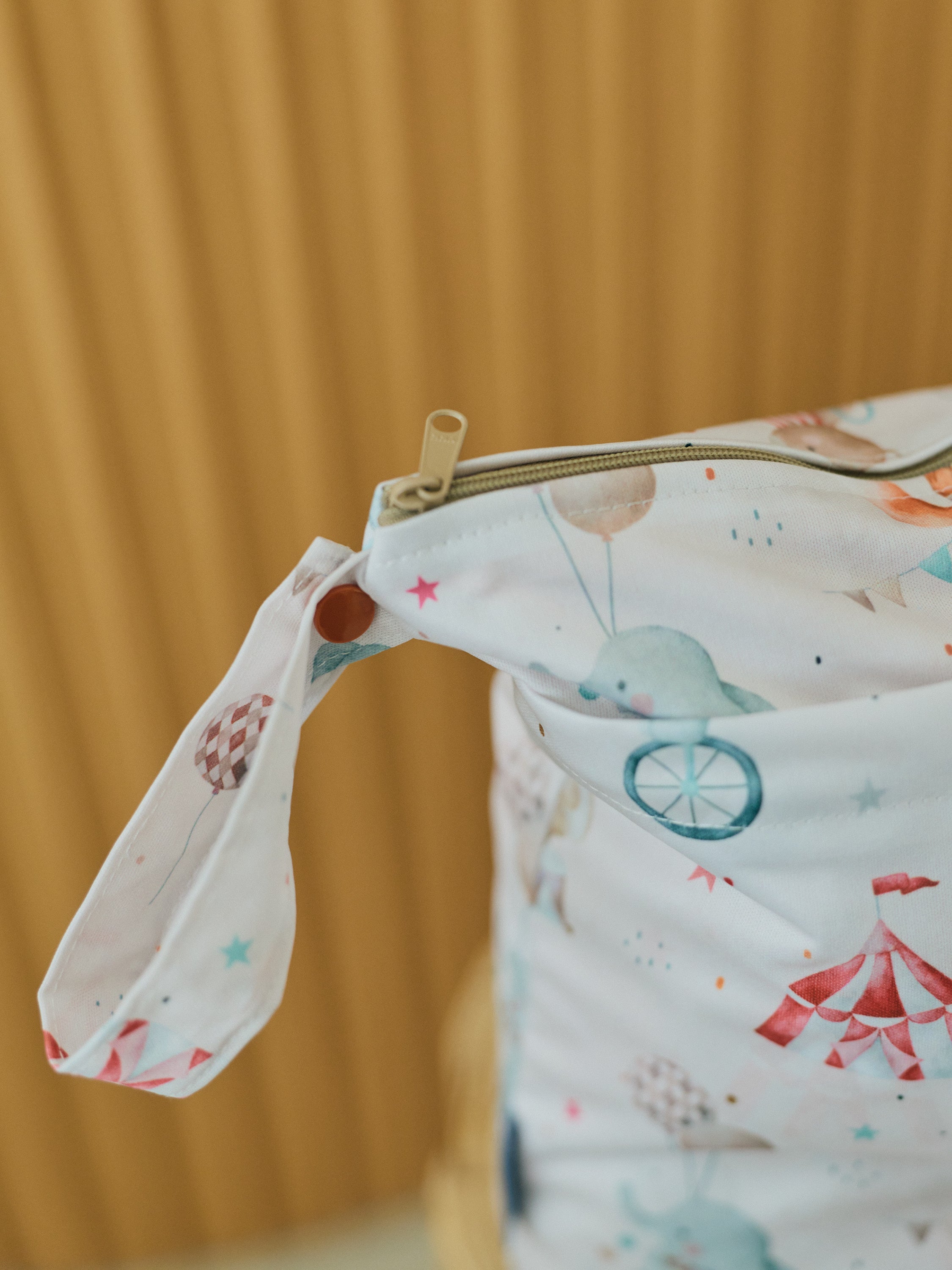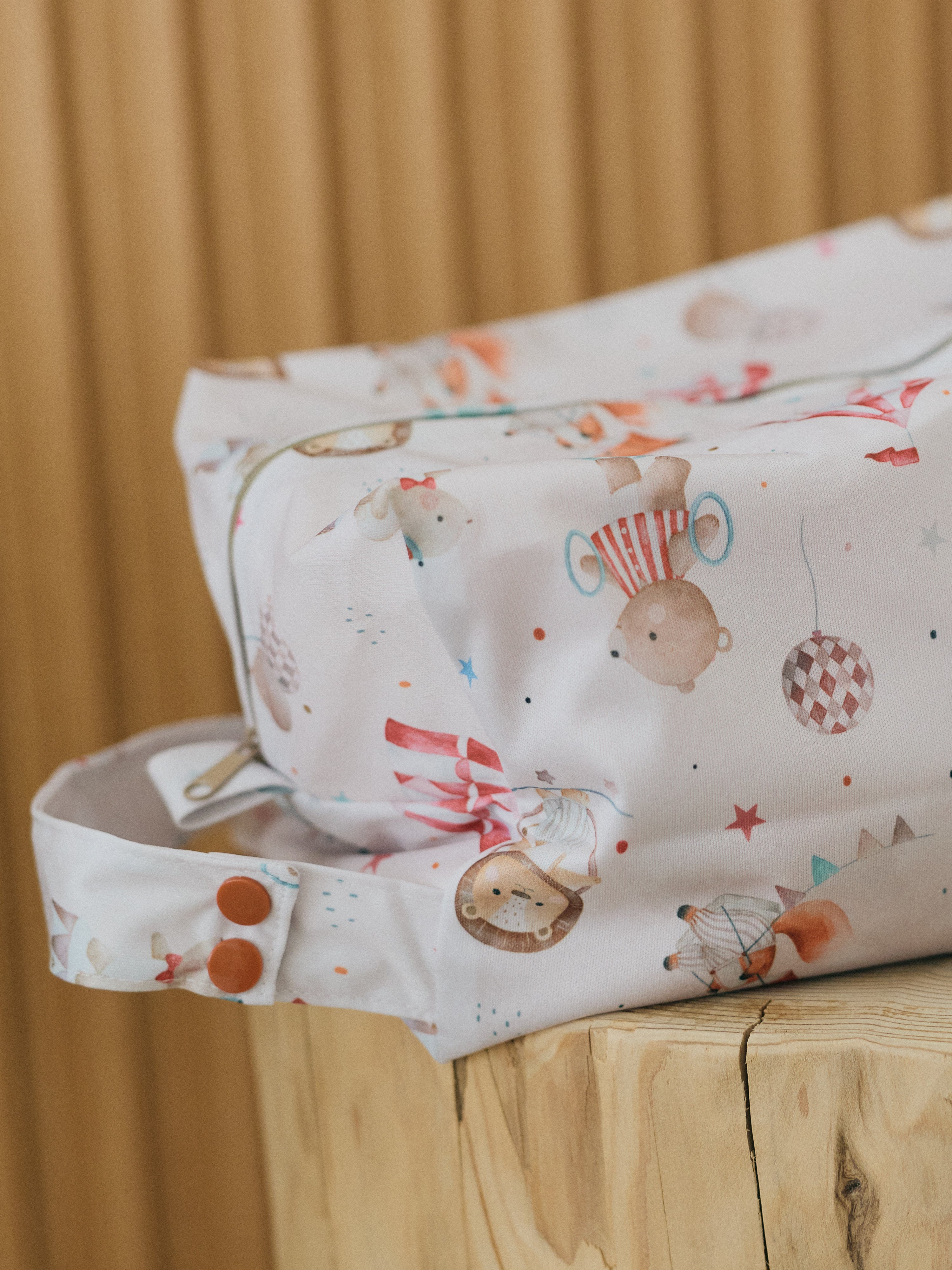Crafted with care, these bags feature a snap-button handle for easy hanging on a stroller or in the bathroom. Double-lined and equipped with a high-quality YKK zipper, they offer enhanced durability for long-lasting use.