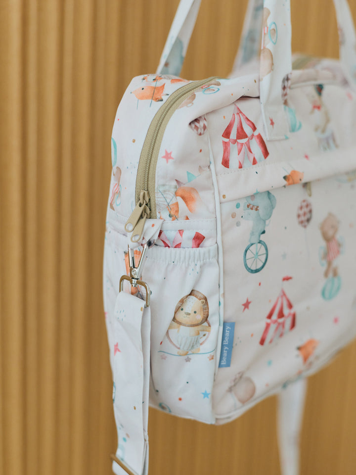 - Medium Weekender Bag (30 x 25 x 10cm): Designed with busy days in mind, this medium-sized weekender bag is just the right size to hold all your little one’s outdoor essentials — from spare clothes, diapers, and bottles to wet wipes and tissues. It even fits A4-sized items, making it perfect for library runs or toting your child's favorite books! Whether it’s a day at the park, a sleepover, or errands with your little one, this bag has you covered in style and function.