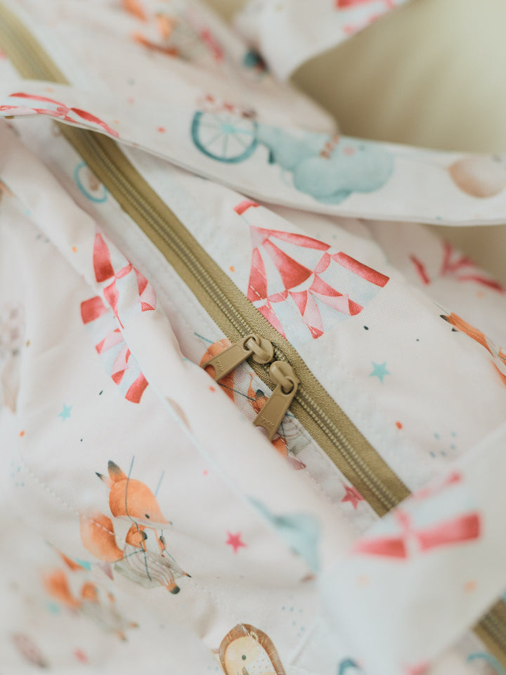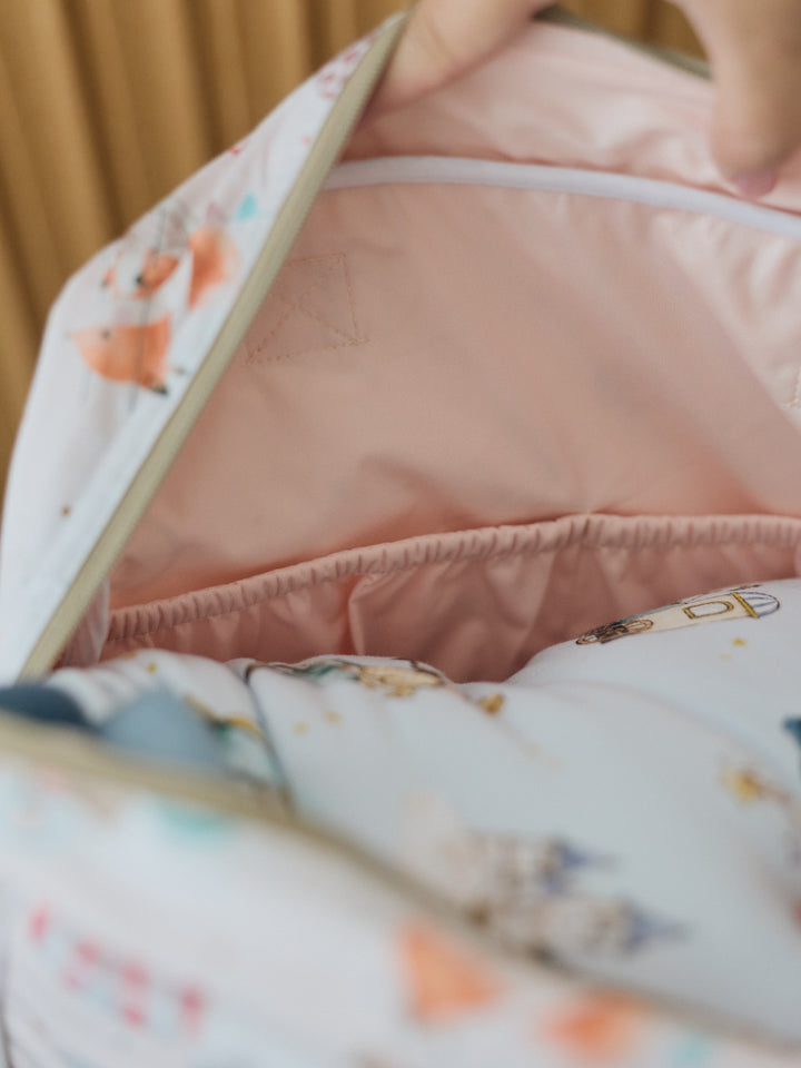 It’s spacious enough to fit our plush pillows and even our cozy TENCEL™ blanket — with room to spare for clothes, books, and bedtime buddies. Durable, soft, and easy to carry, it’s the perfect companion for overnight stays and dreamy getaways.