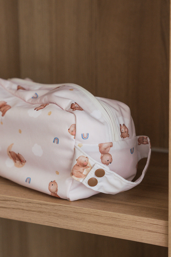 Crafted with care, these bags feature a snap-button handle for easy hanging on a stroller or in the bathroom. Double-lined and equipped with a high-quality YKK zipper, they offer enhanced durability for long-lasting use.