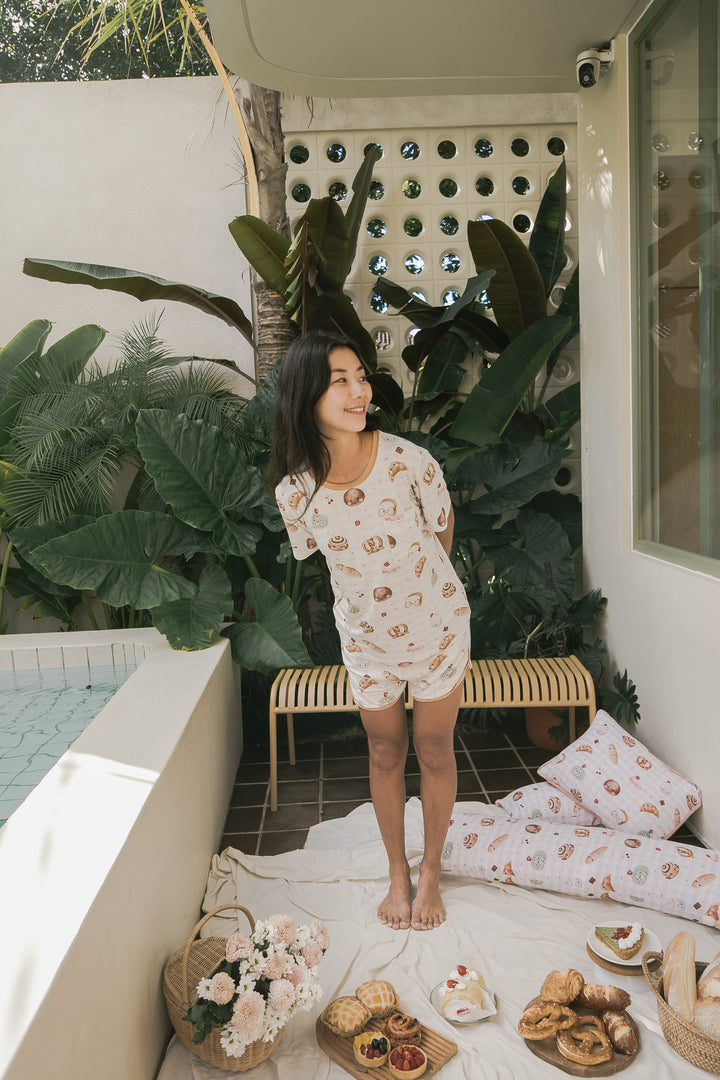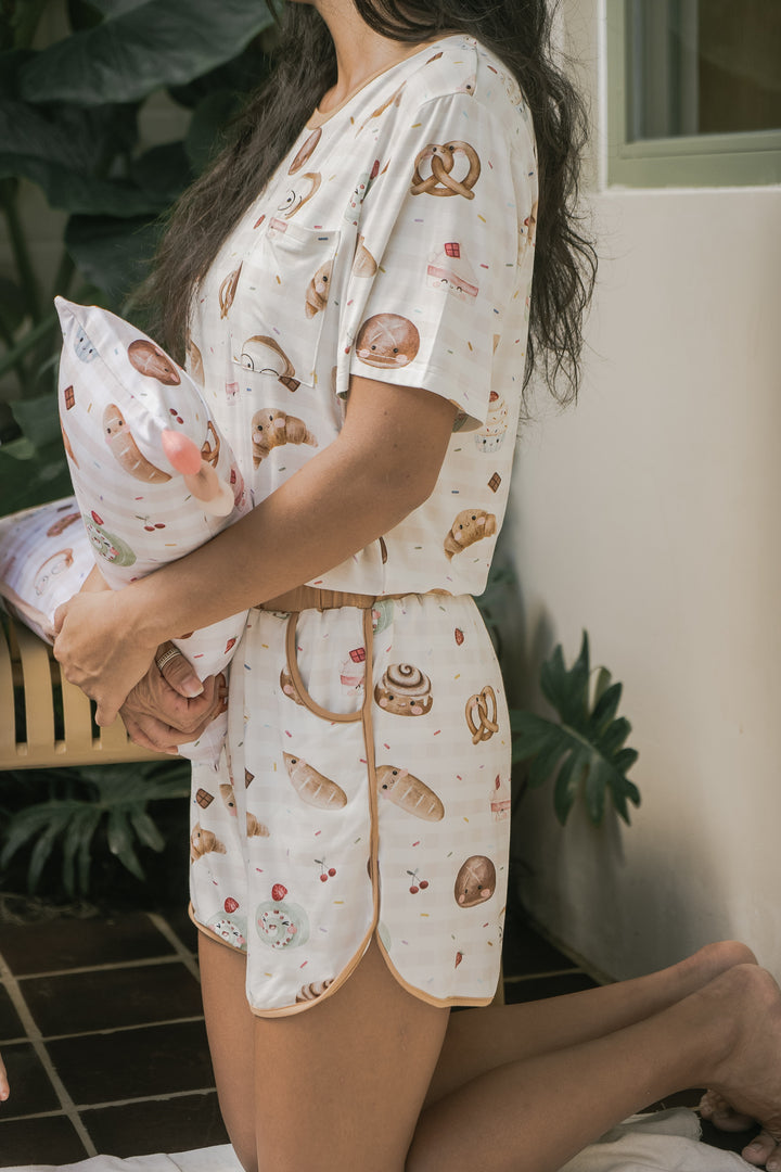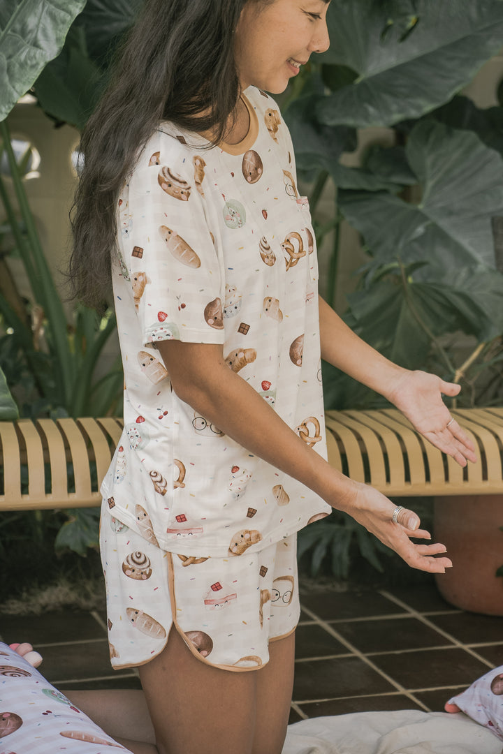 Introducing our luxurious bamboo adult loungewear—allowing you to twin with your mini me! This cozy set features a short-sleeve top and matching shorts, crafted from the softest bamboo fabric, ensuring anyone to feel light and breathable in it all day long. With charming contrasting trimmings that add a playful pop of color, this lounge set is perfect for relaxing at home or for fun-filled adventures. It’s an effortlessly chic choice that blends sustainability, softness, and cuteness into one!