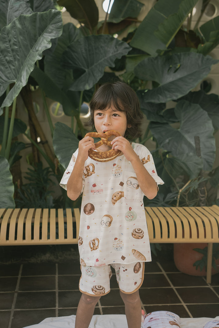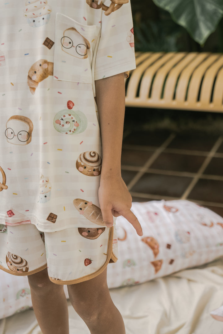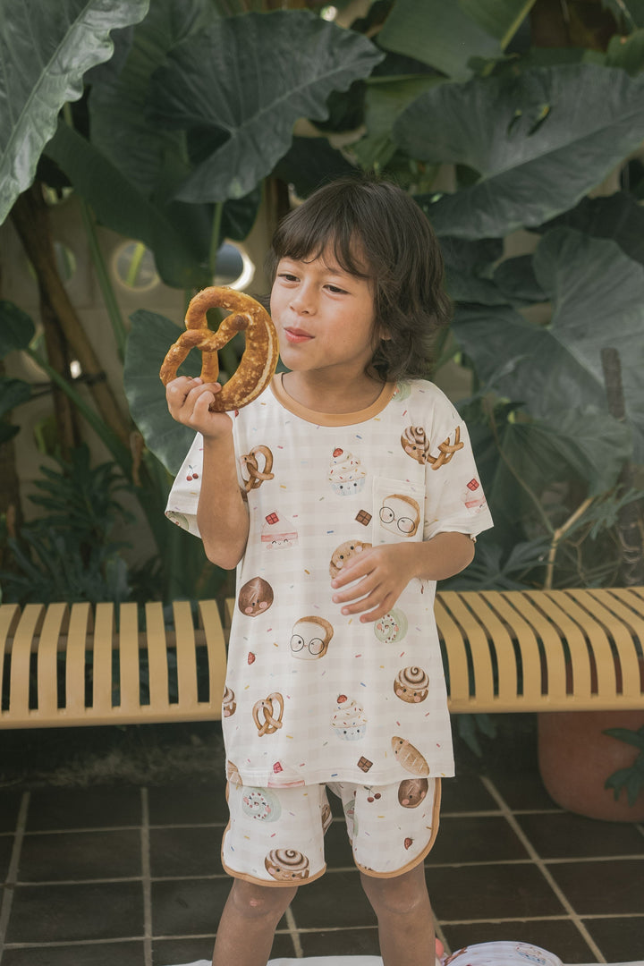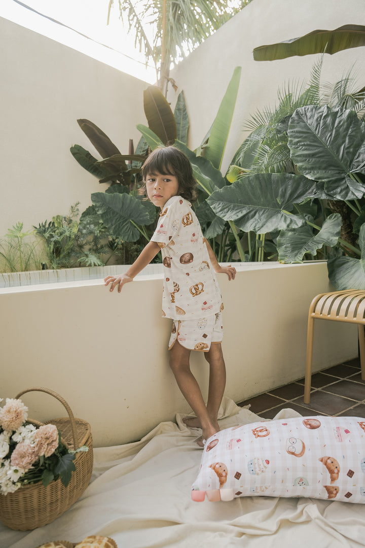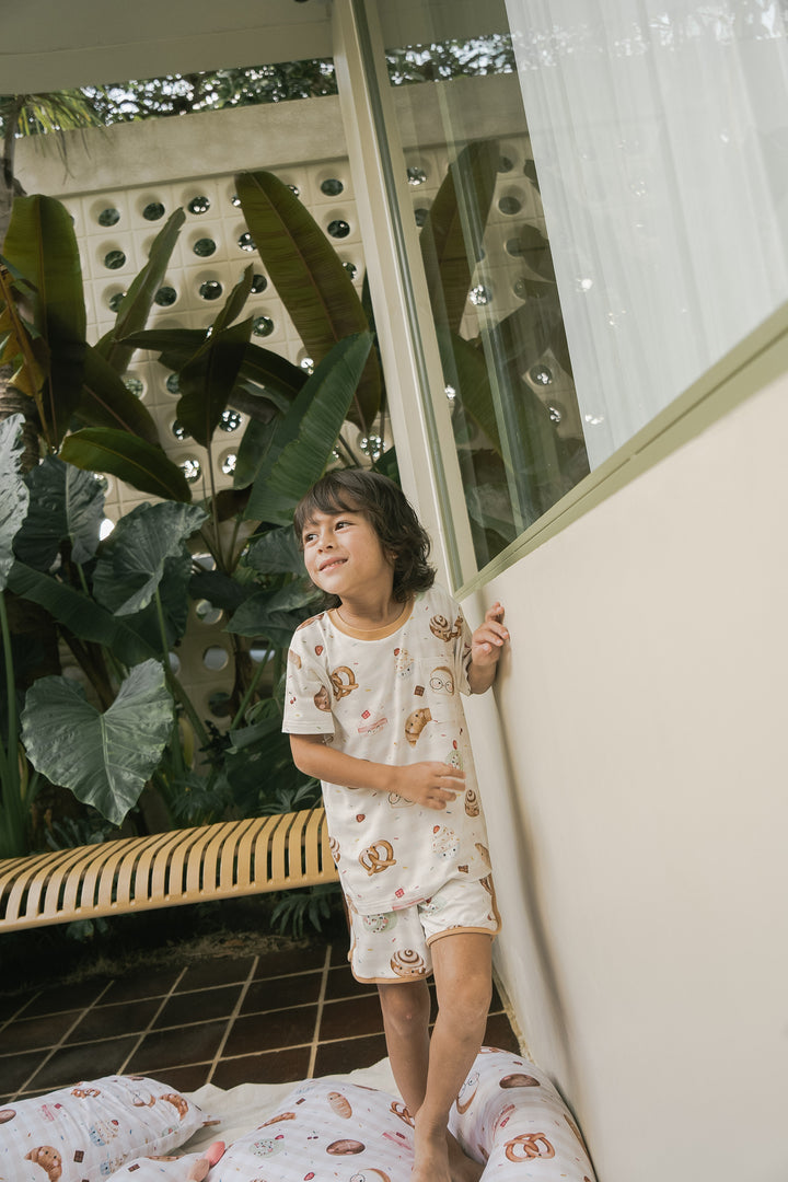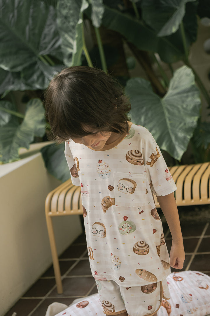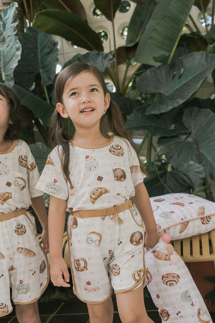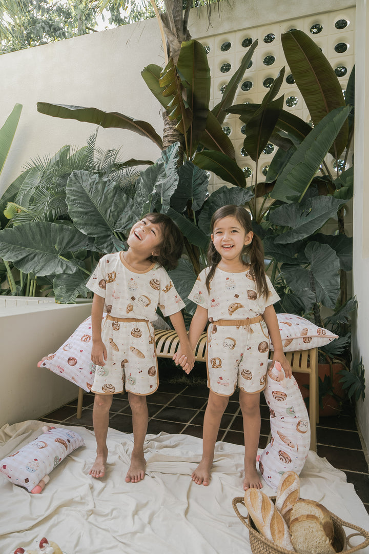 Introducing our luxurious bamboo children's loungewear—designed for both comfort and style. This cozy set features a short-sleeve top and matching shorts, crafted from the softest bamboo fabric, ensuring your little ones feel light and breathable all day long. With charming contrasting trimmings that add a playful pop of color, this lounge set is perfect for relaxing at home or for fun-filled adventures. It’s an effortlessly chic choice that blends sustainability, softness, and cuteness into one!