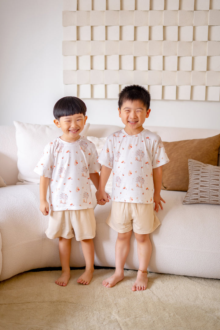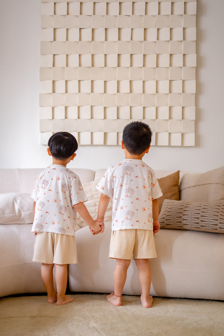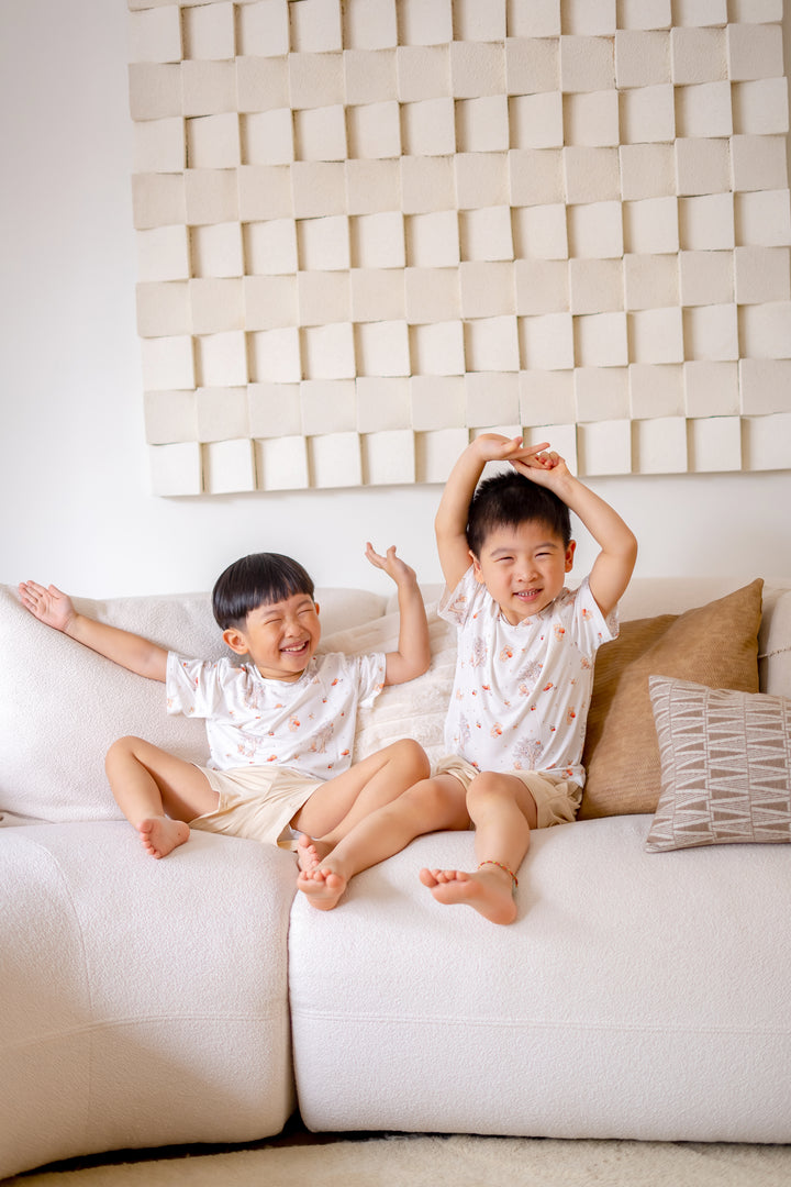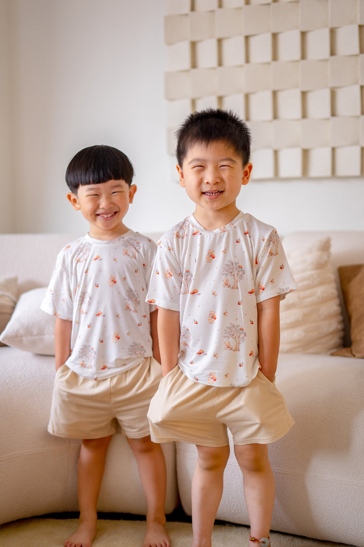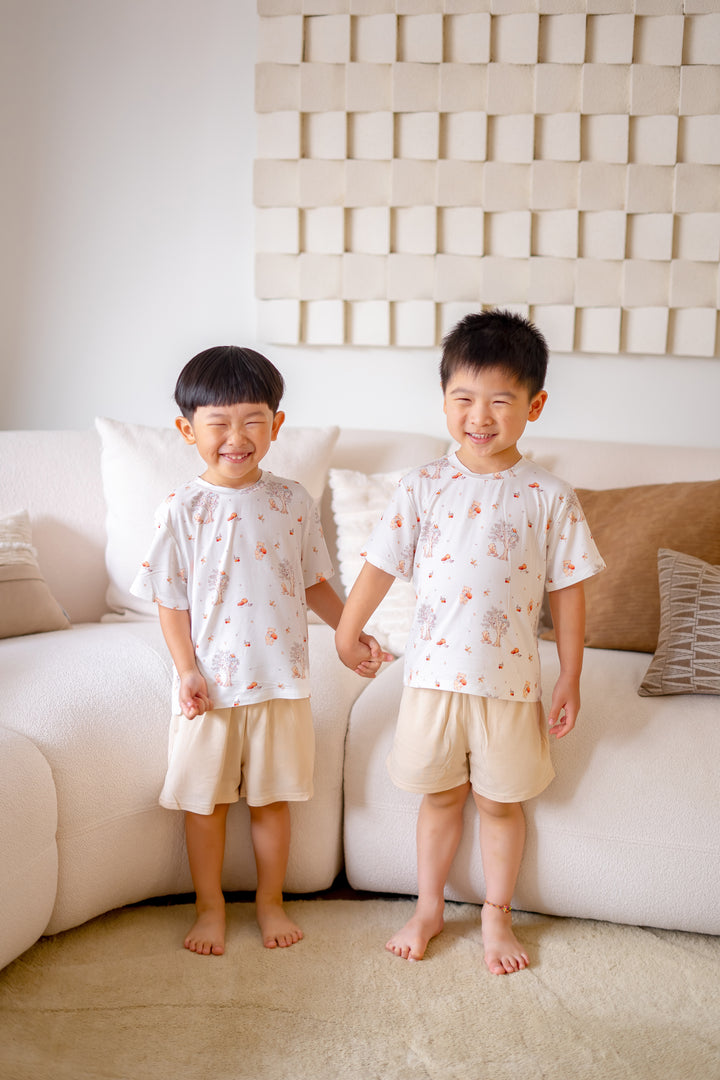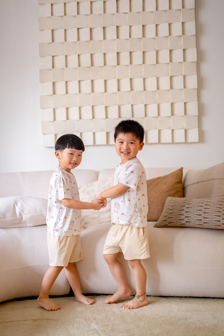 Introducing LeBear's Bamboo Kids Loungewear Set! A two-piece ensemble designed to keep your little one looking cute and feeling cozy all day long. Crafted with care from bamboo fabrics, both the top and shorts in this set promise luxurious softness and breathability for your little one's comfort.