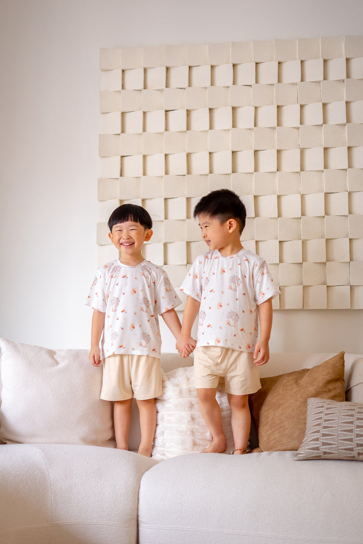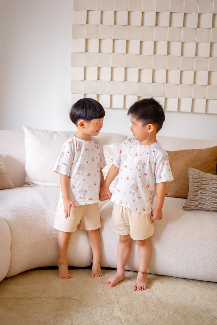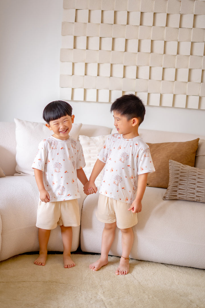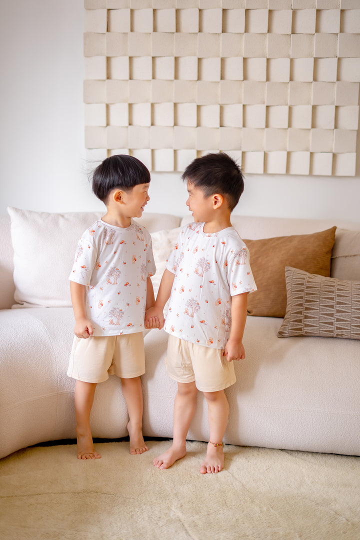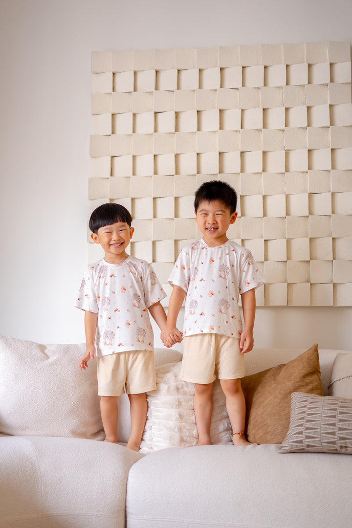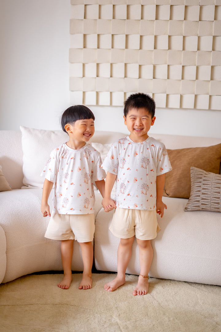 Introducing LeBear's Bamboo Kids Loungewear Set! A two-piece ensemble designed to keep your little one looking cute and feeling cozy all day long. Crafted with care from bamboo fabrics, both the top and shorts in this set promise luxurious softness and breathability for your little one's comfort.
