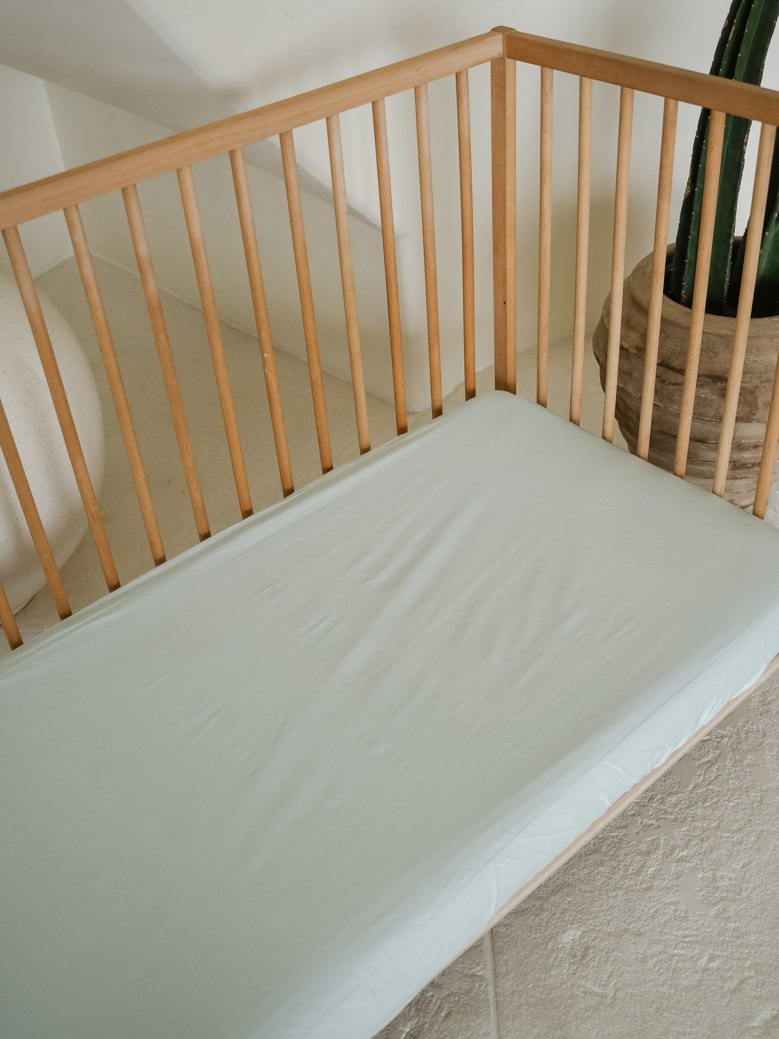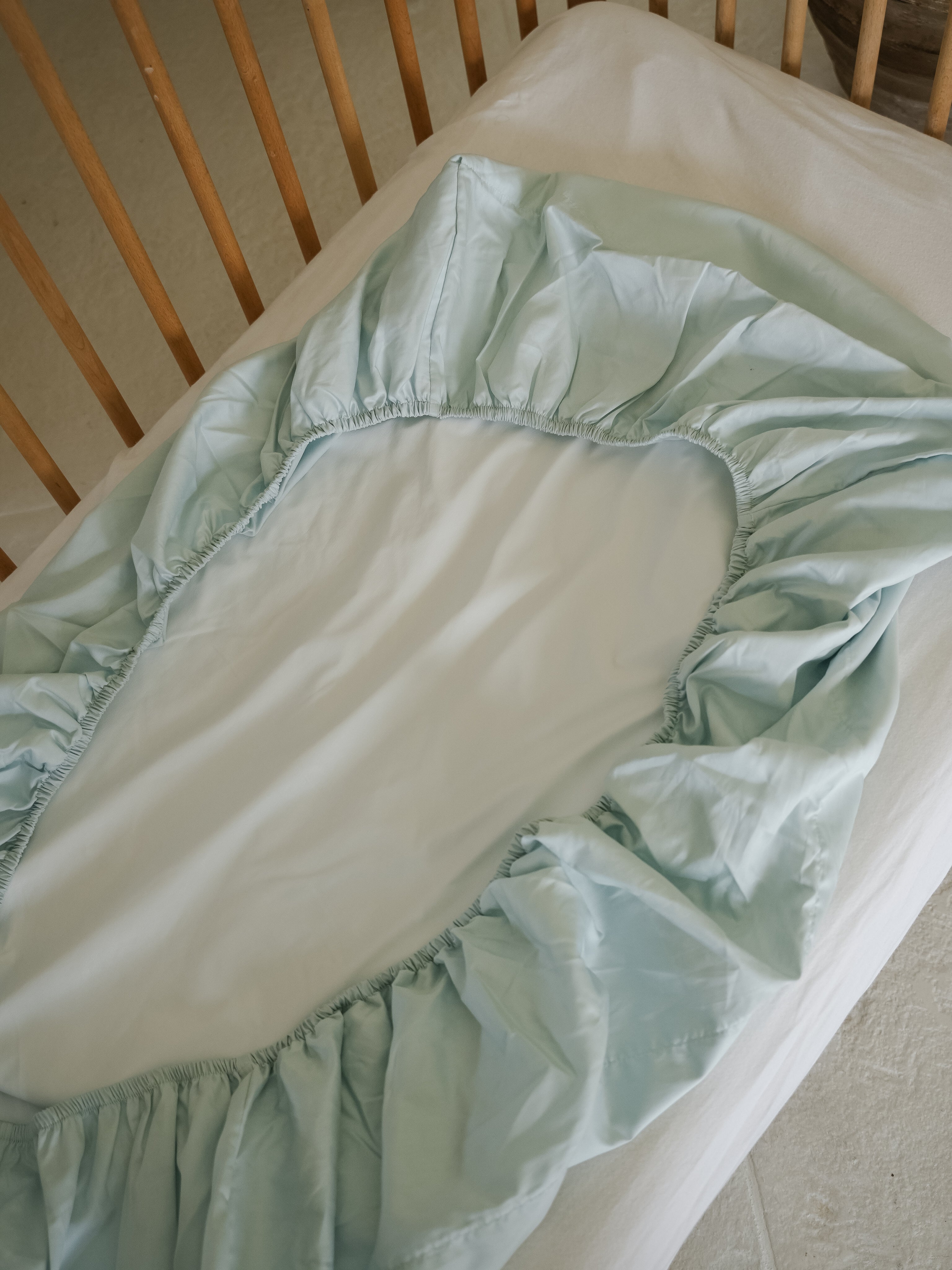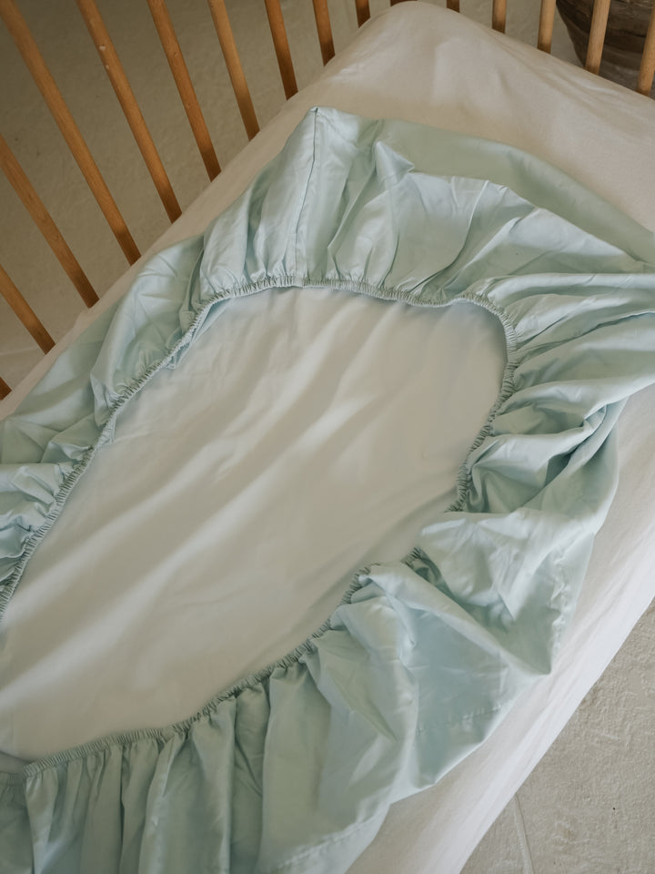 Organic Cotton Waterproof Sheet in Light Seafoam