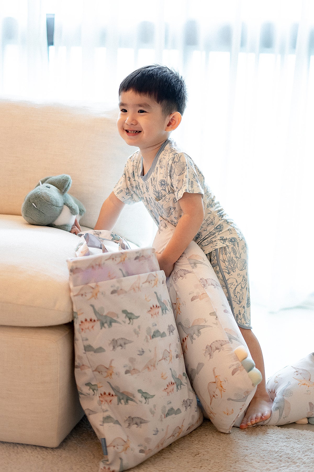 I am sure all boys will go through this roar-some dinosaur stage whereby there roar and stomp whole day. This dinosaur print is perfect for your little one and also easy on mummy's eyes! We love the soft colour palette and the friendly looking dinosaurs!
