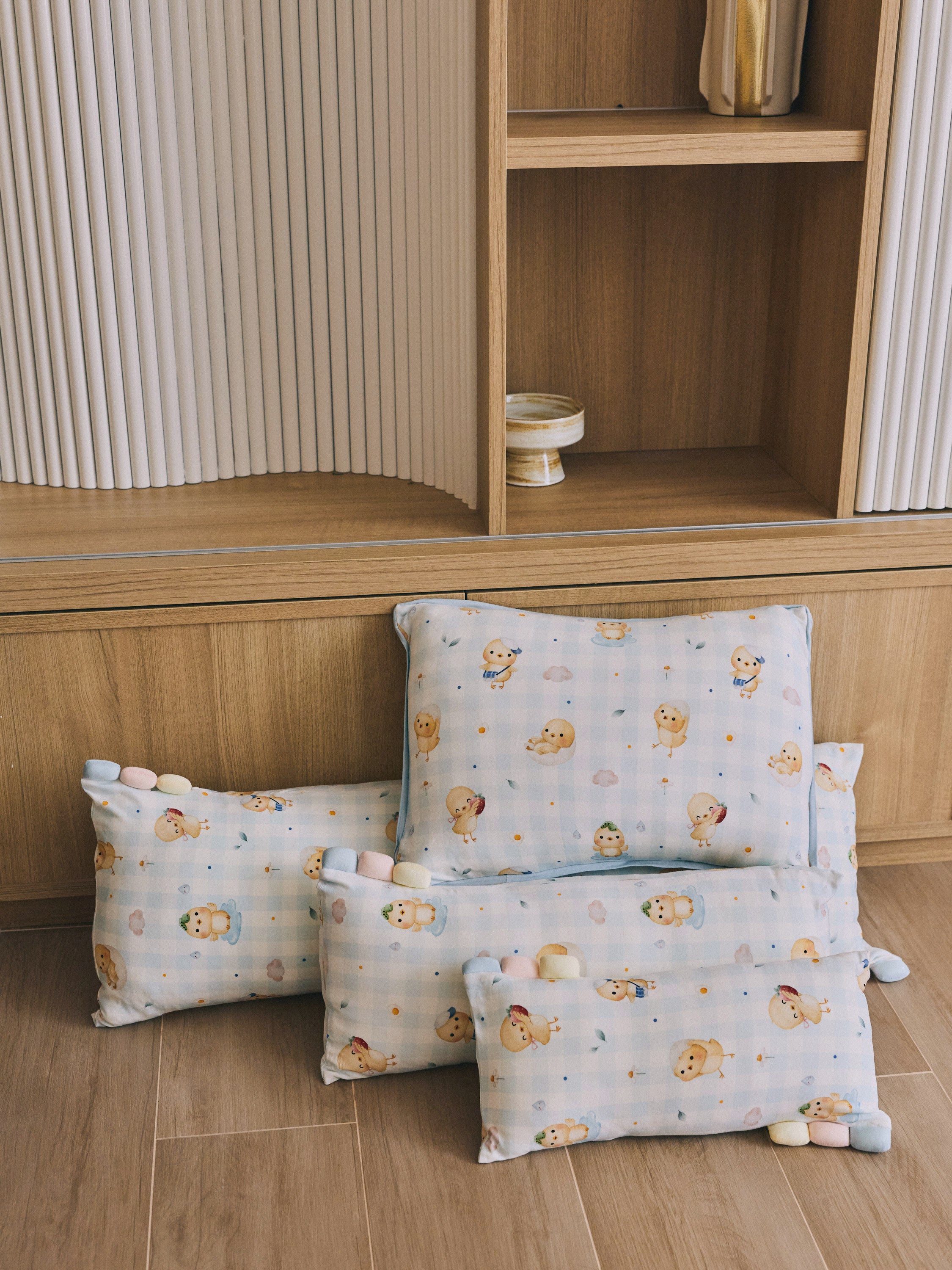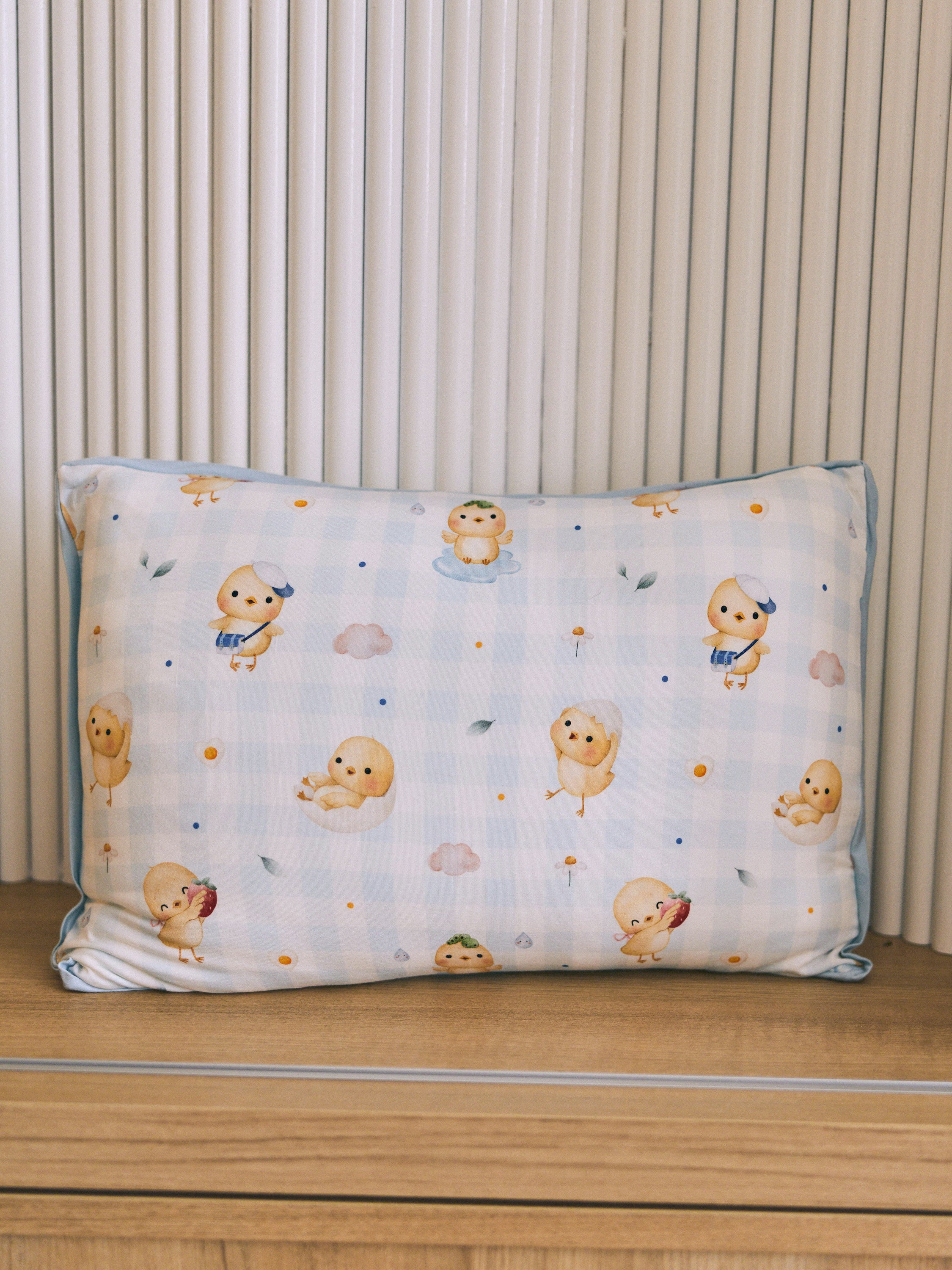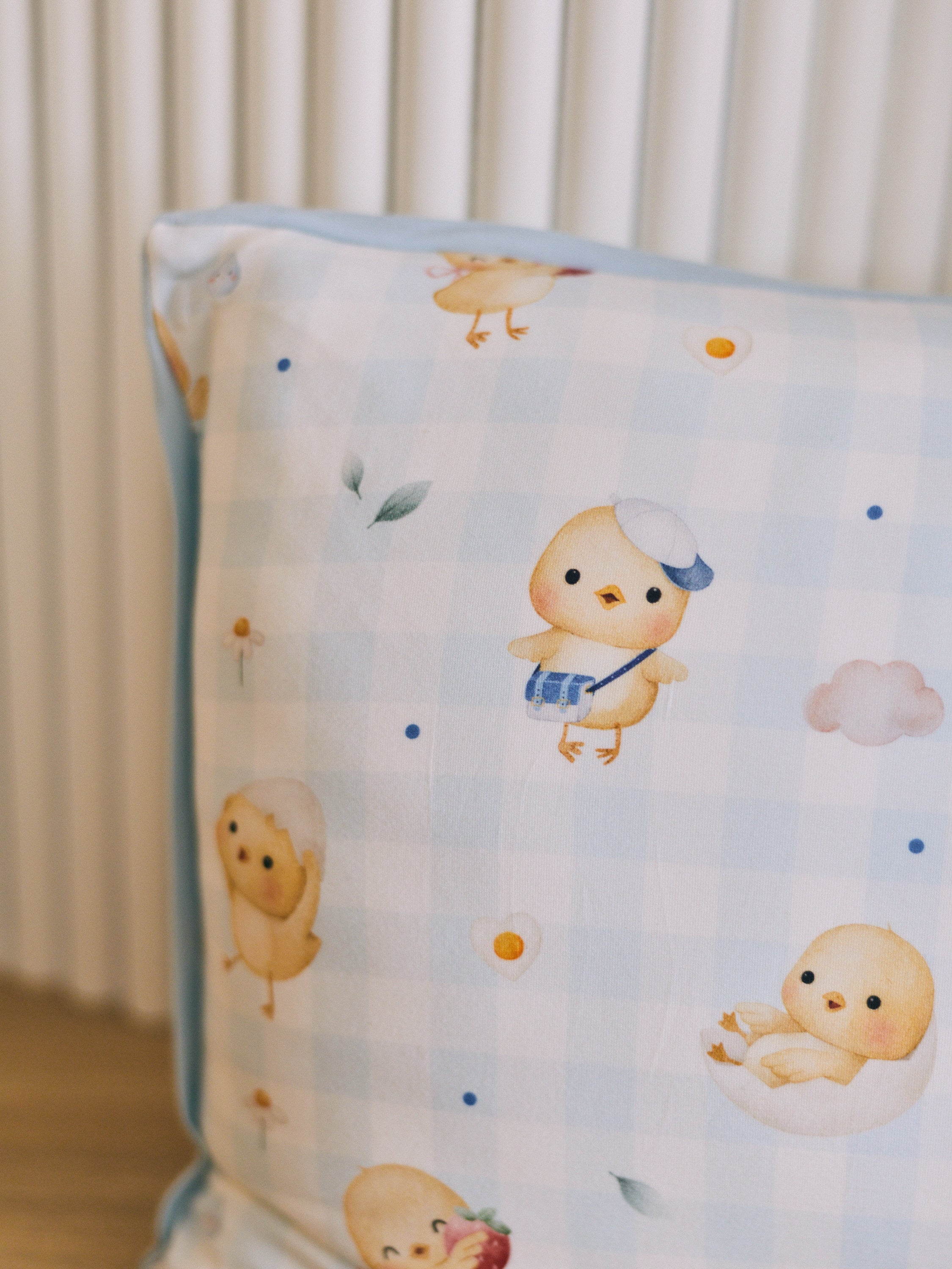 [Pillow] Sunny Side Chicks Picnic Pillow (Blue Checkered)