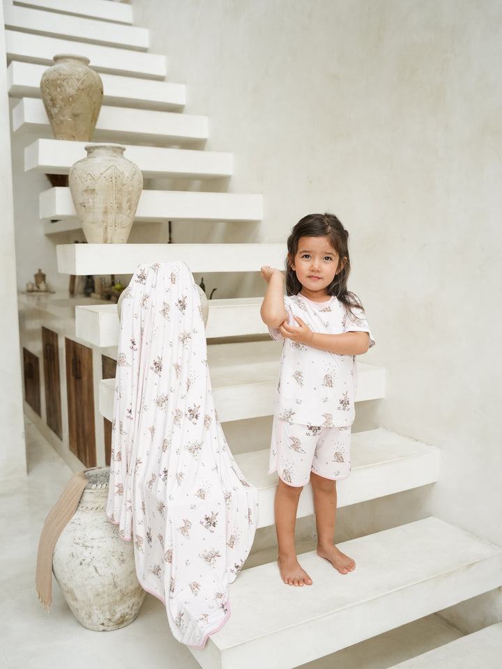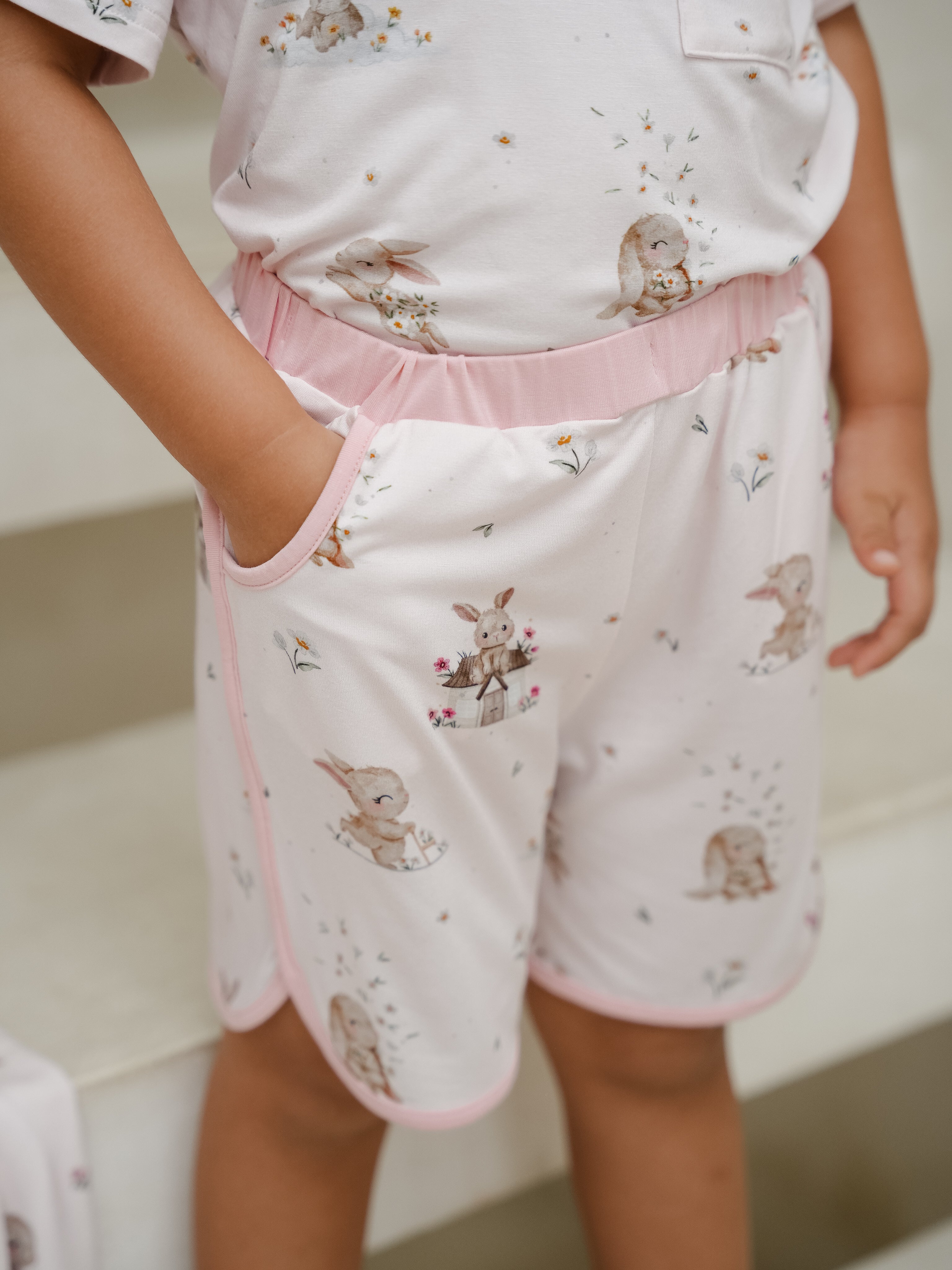 Introducing our luxurious bamboo children's loungewear—designed for both comfort and style. This cozy set features a short-sleeve top and matching shorts, crafted from the softest bamboo fabric, ensuring your little ones feel light and breathable all day long. With charming contrasting trimmings that add a playful pop of color, this lounge set is perfect for relaxing at home or for fun-filled adventures. It’s an effortlessly chic choice that blends sustainability, softness, and cuteness into one!