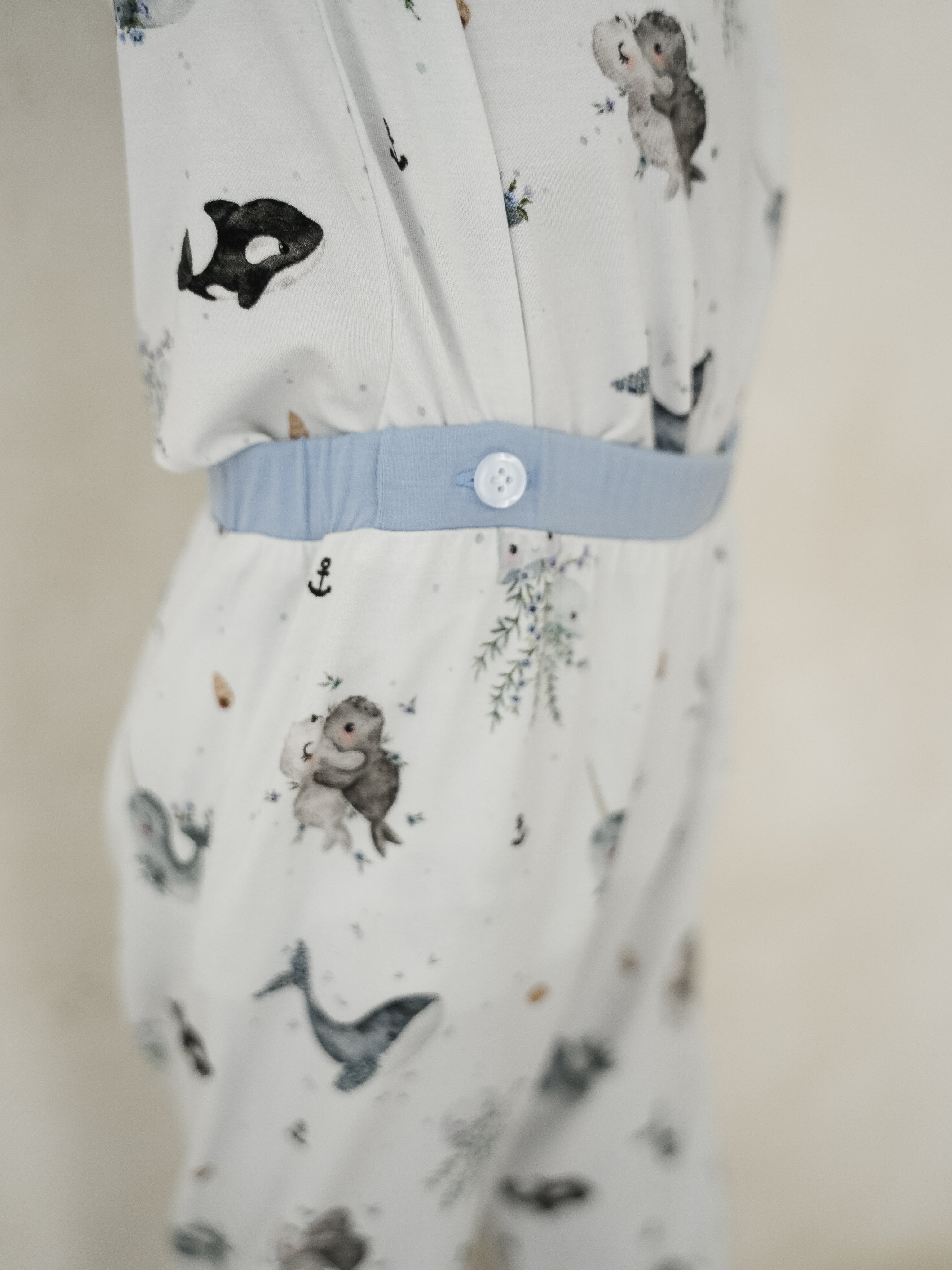 Indulge in the luxuriously soft feel of our premium bamboo sleepwear, designed for the ultimate in comfort and care. Featuring moisture-wicking, breathable, and cooling properties, this sleepwear naturally regulates your body temperature. Hypoallergenic and OEKO-TEX Standard 100 certified, it ensures safe and gentle wear for sensitive skin. A convenient side button detail prevents the top from riding up, offering uninterrupted comfort throughout the night.