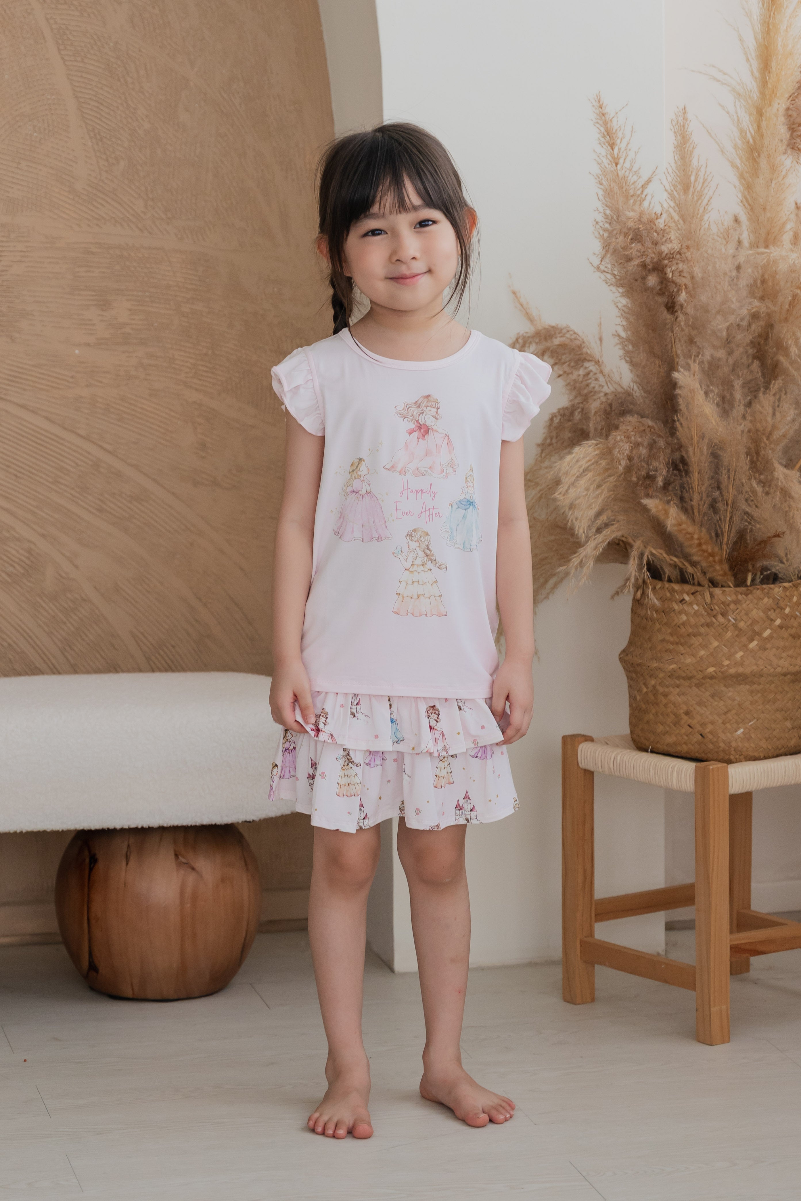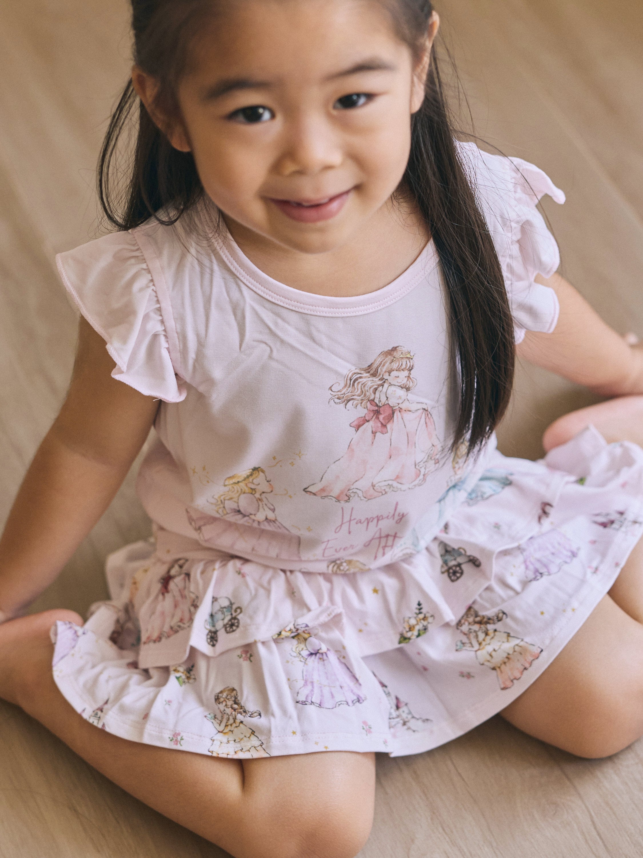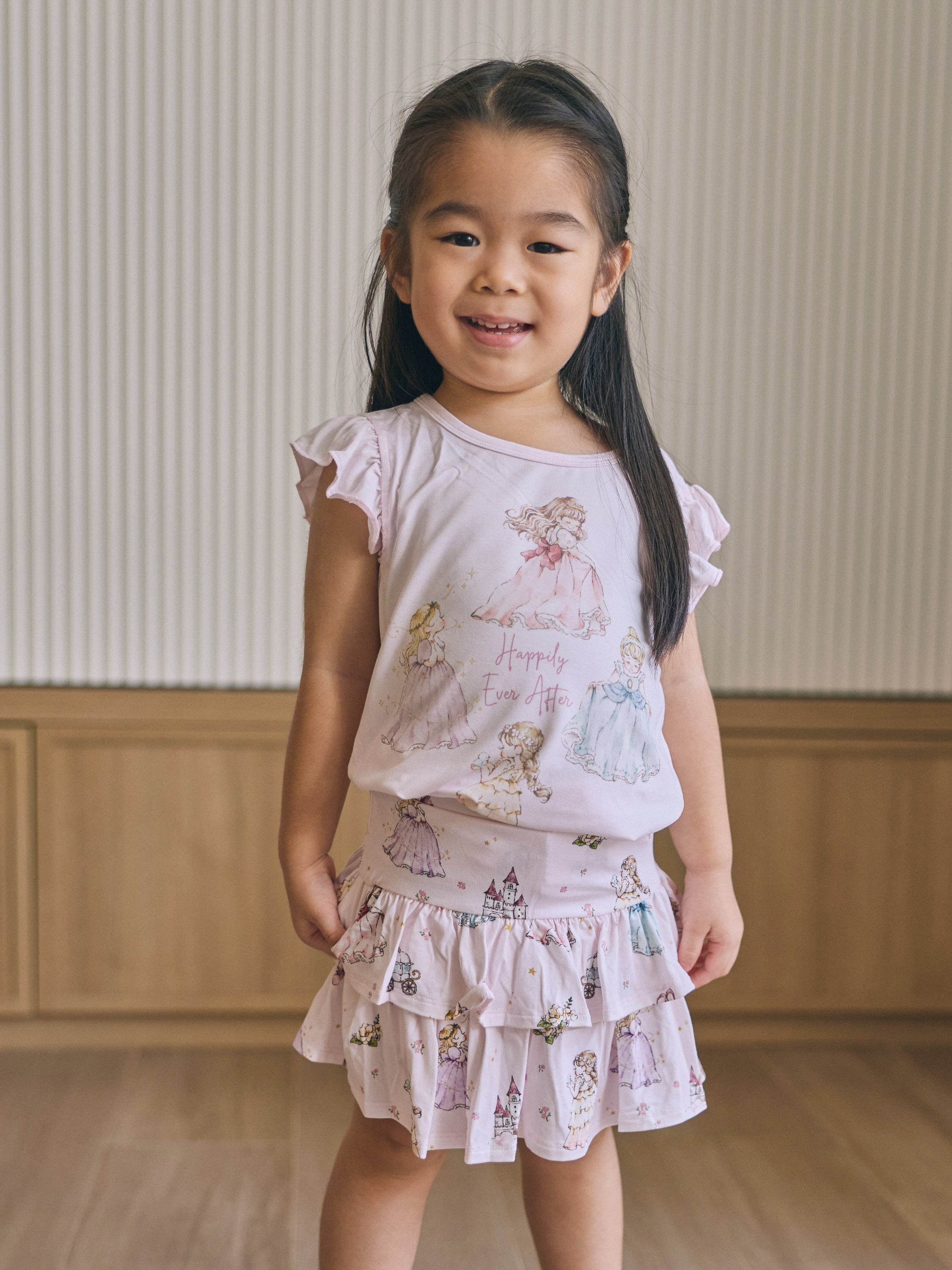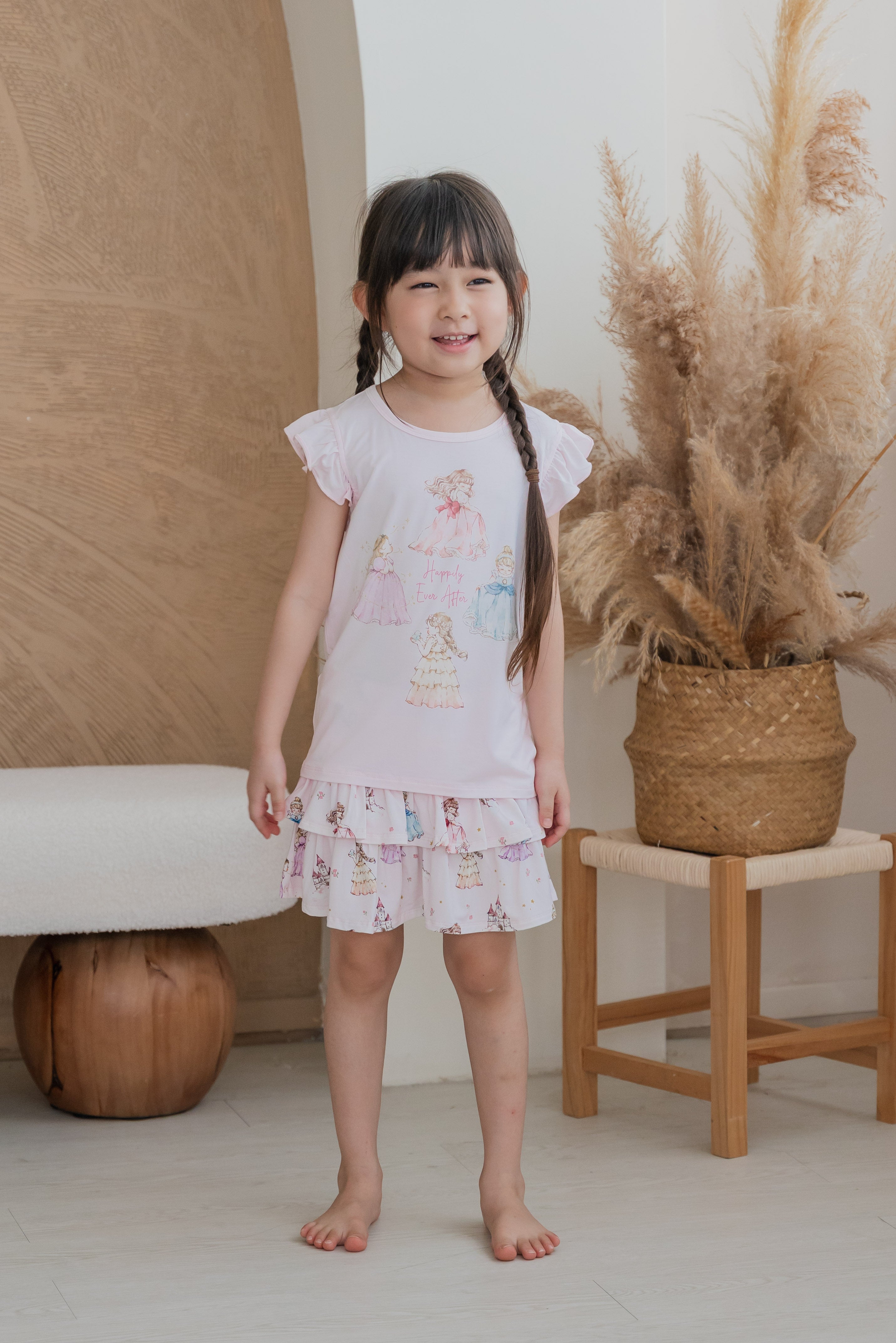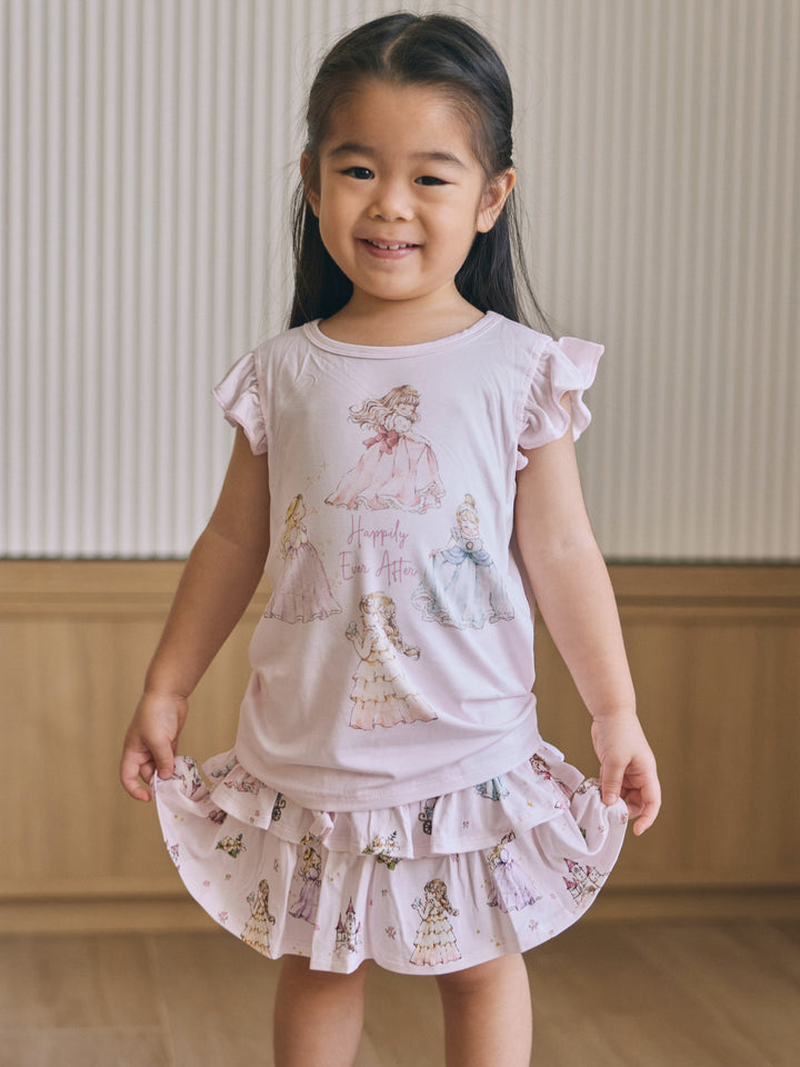 Made from our signature buttery-soft bamboo fabric, this set keeps your little princess cool, comfy, and twirl-ready all day long. The ruffle-sleeve top features our lovely princesses at the heart of the design — bringing a touch of storybook magic to her every move.