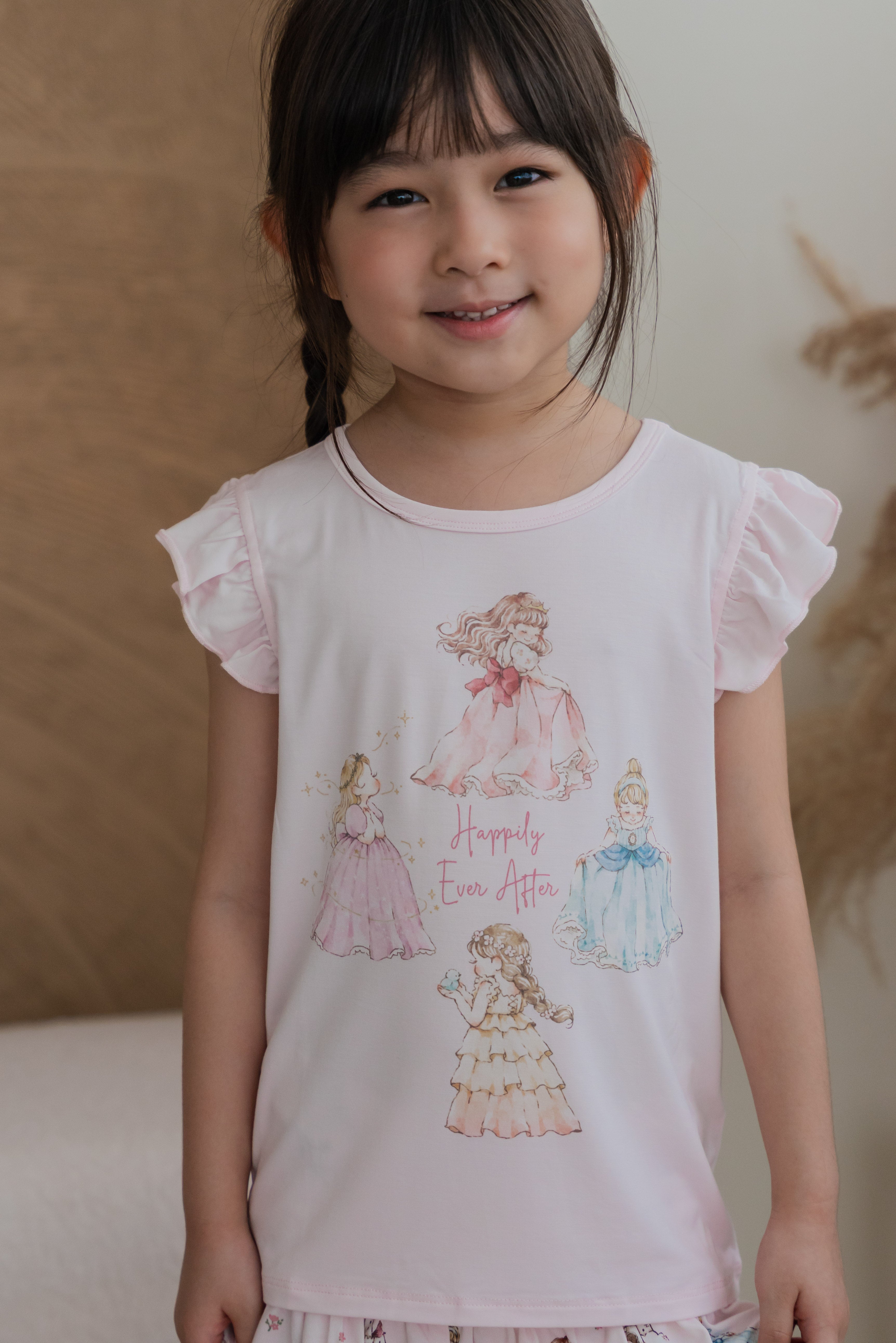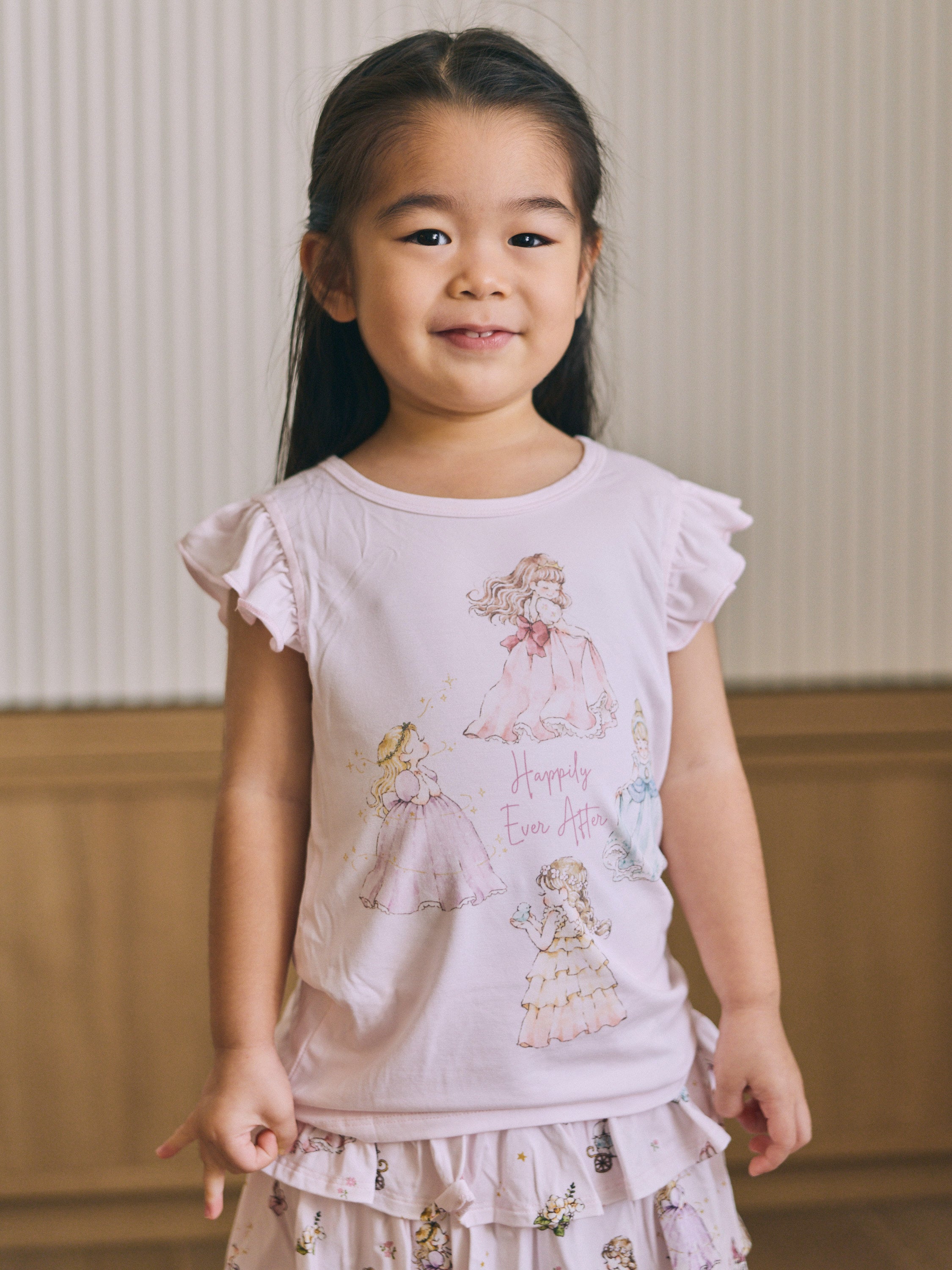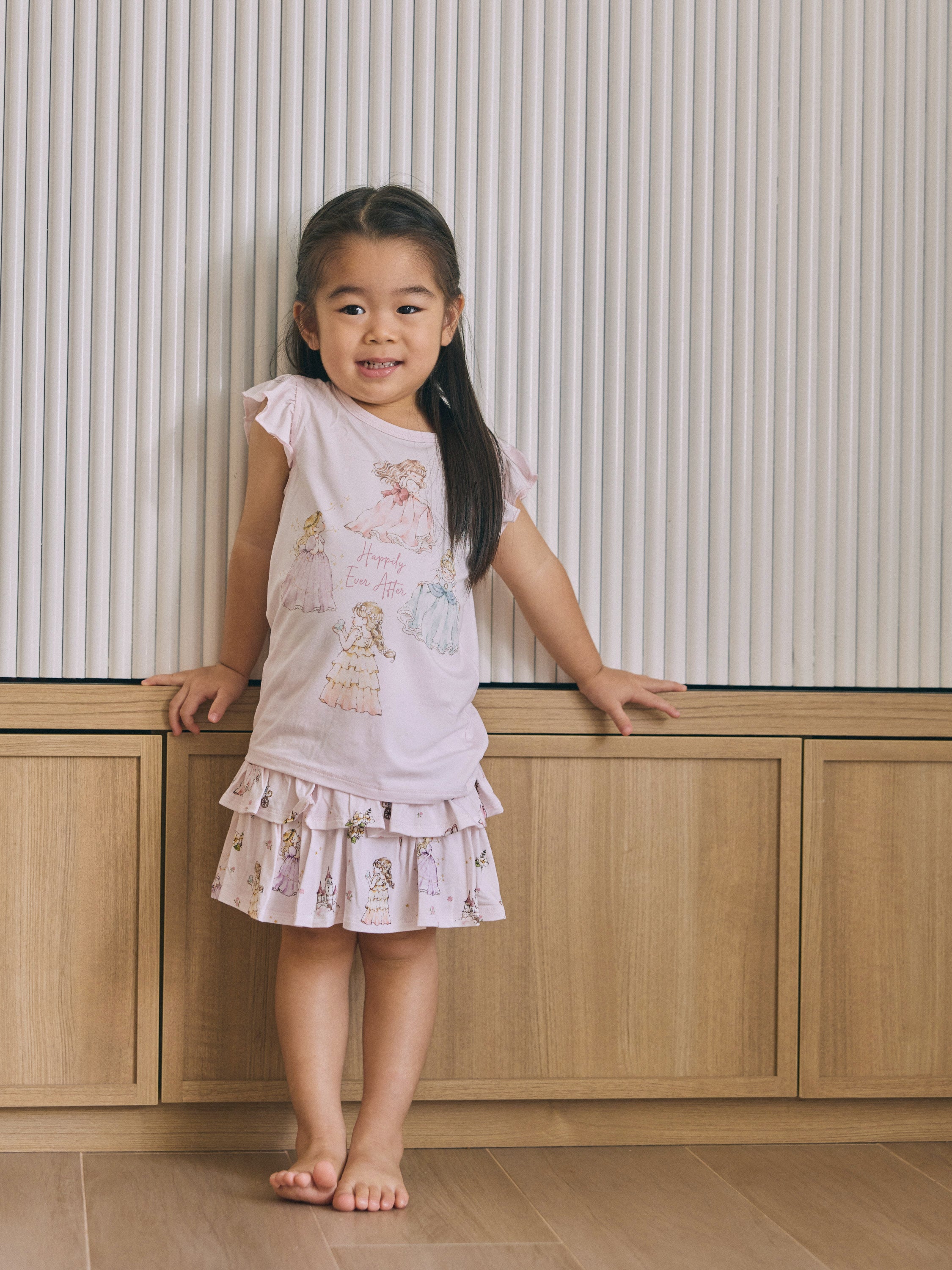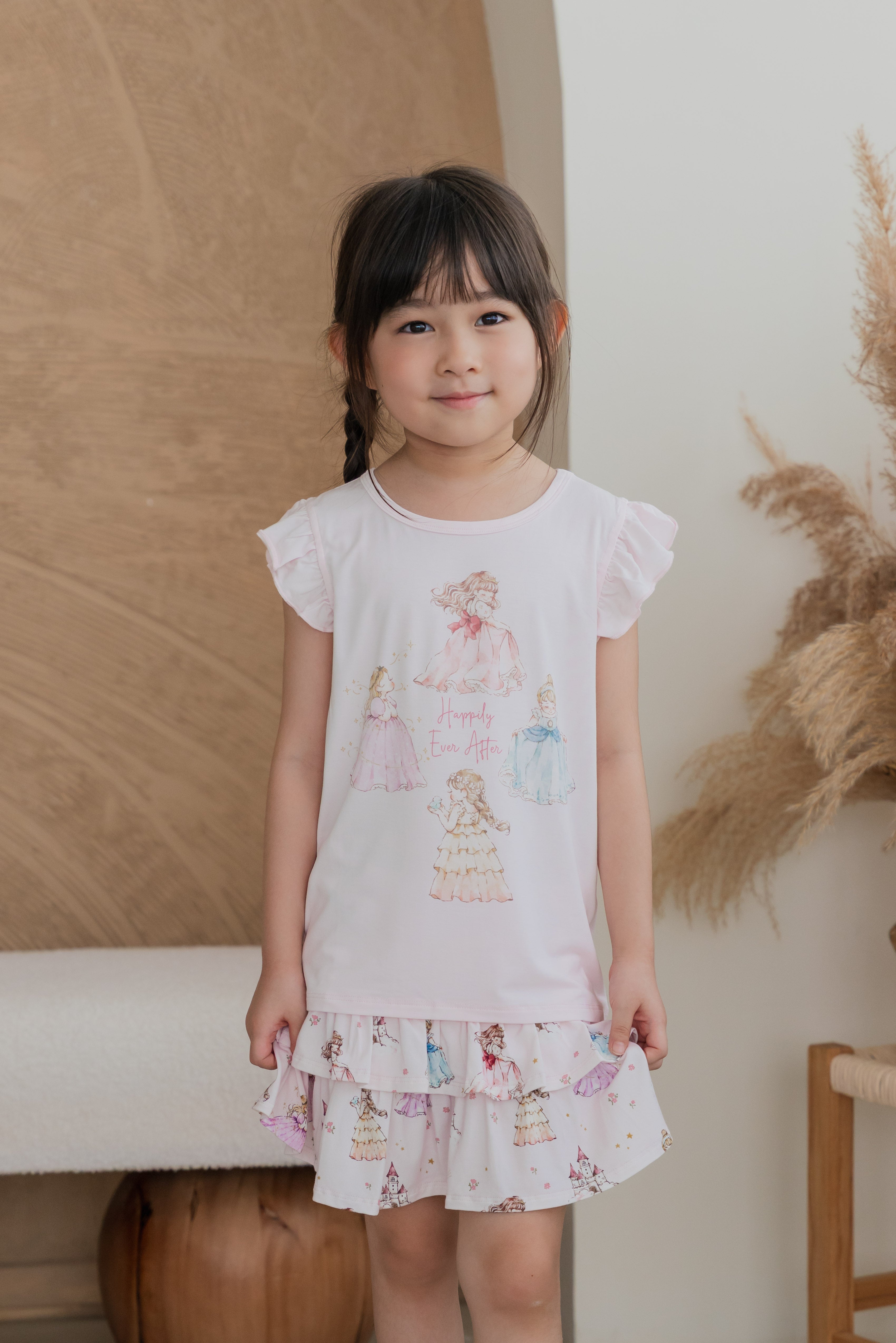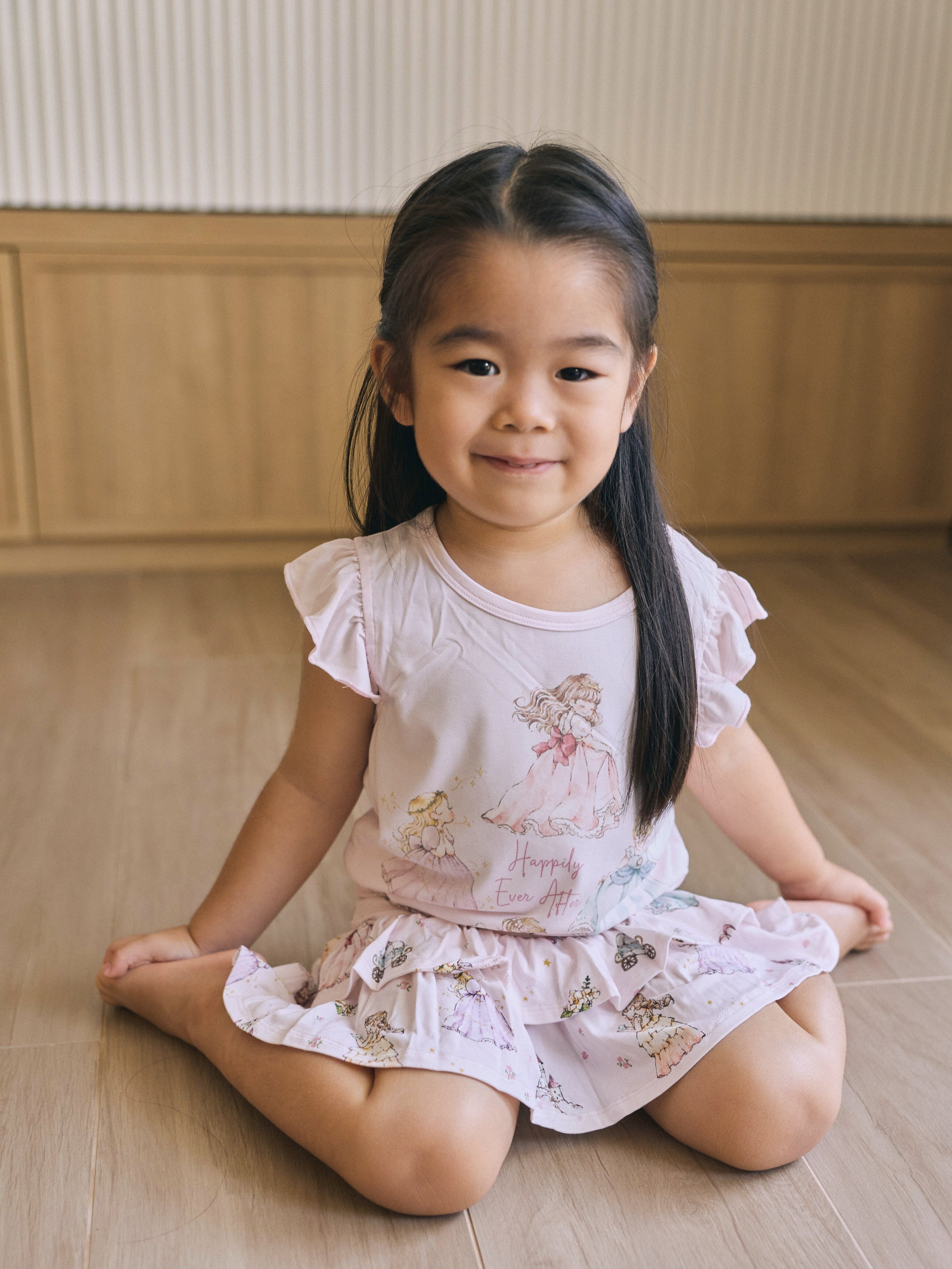 Made from our signature buttery-soft bamboo fabric, this set keeps your little princess cool, comfy, and twirl-ready all day long. The ruffle-sleeve top features our lovely princesses at the heart of the design — bringing a touch of storybook magic to her every move.