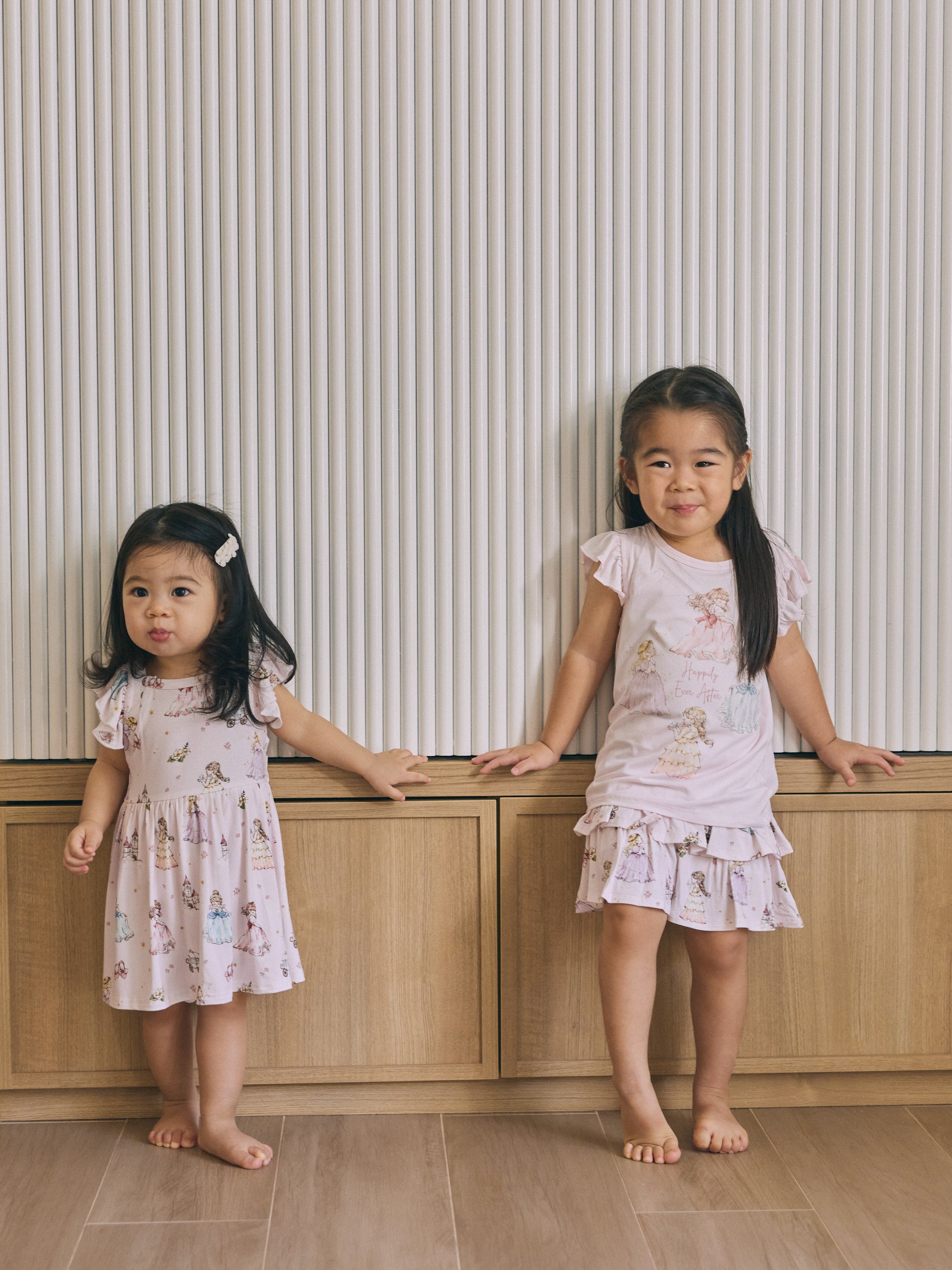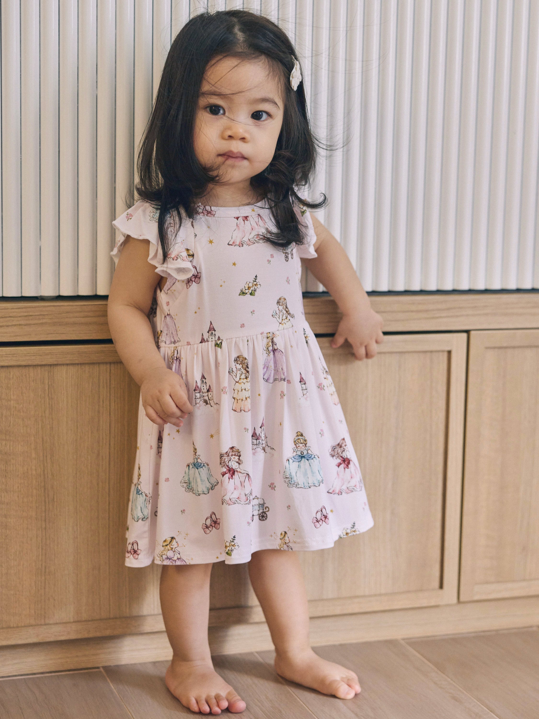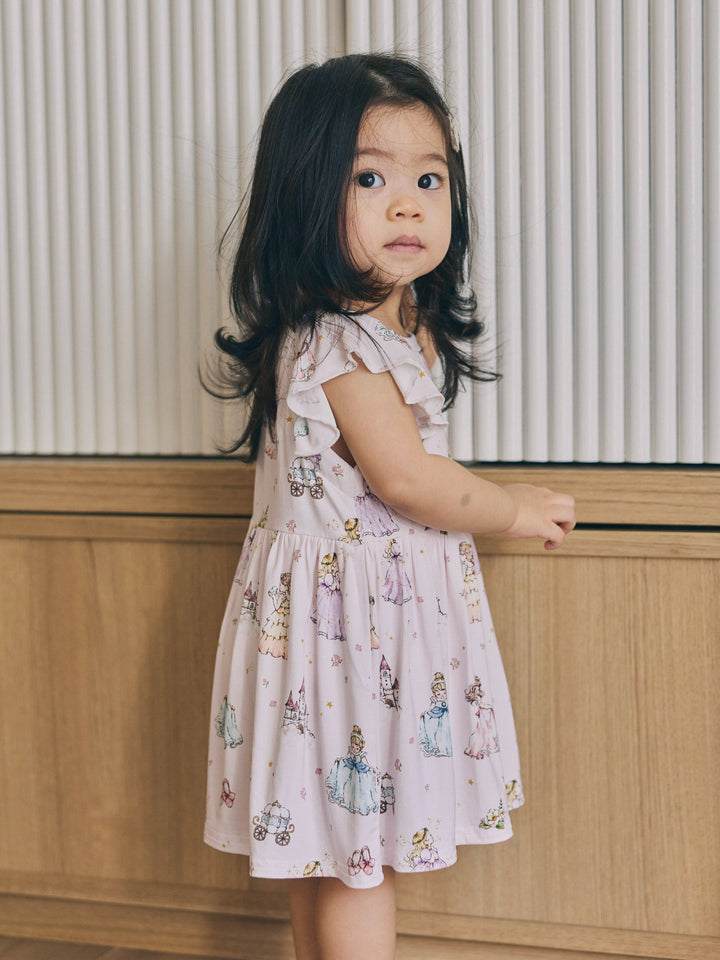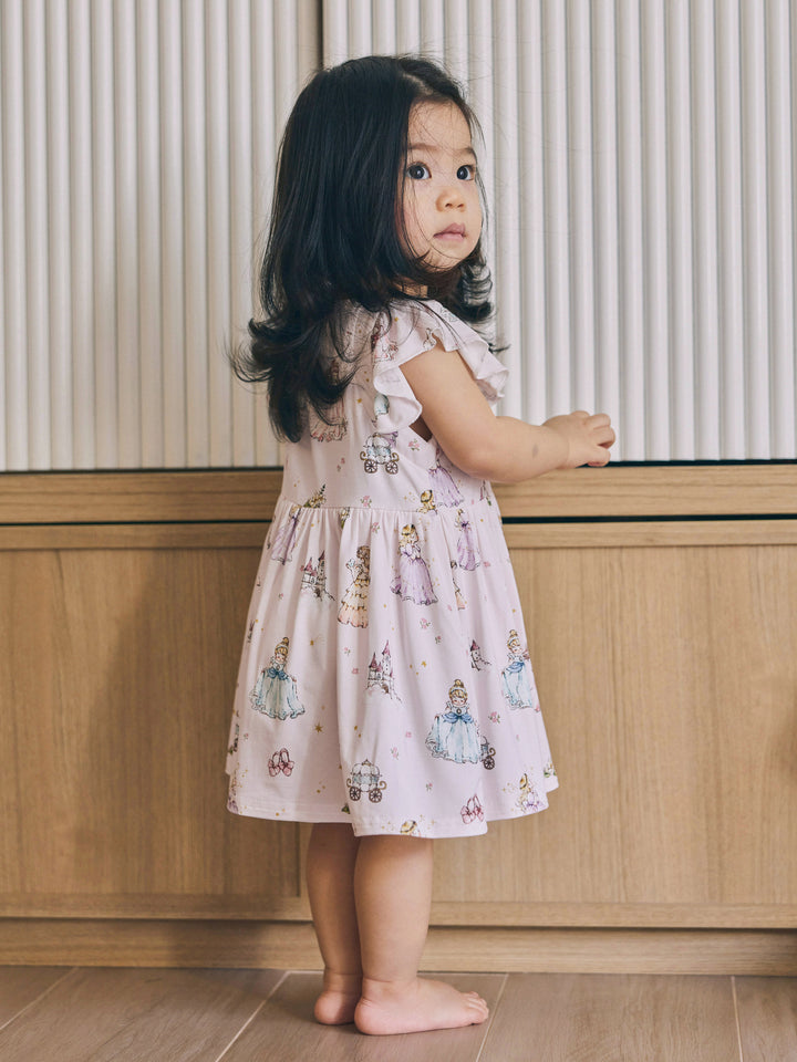 Crafted from luxuriously soft bamboo fabric, our Princess Flutter Romper keeps your little one cool, comfy, and irresistibly adorable from playtime to nap time. The flutter sleeves add a dreamy touch of elegance, while the charming princess print at the heart of the design makes it pure magic in motion.
