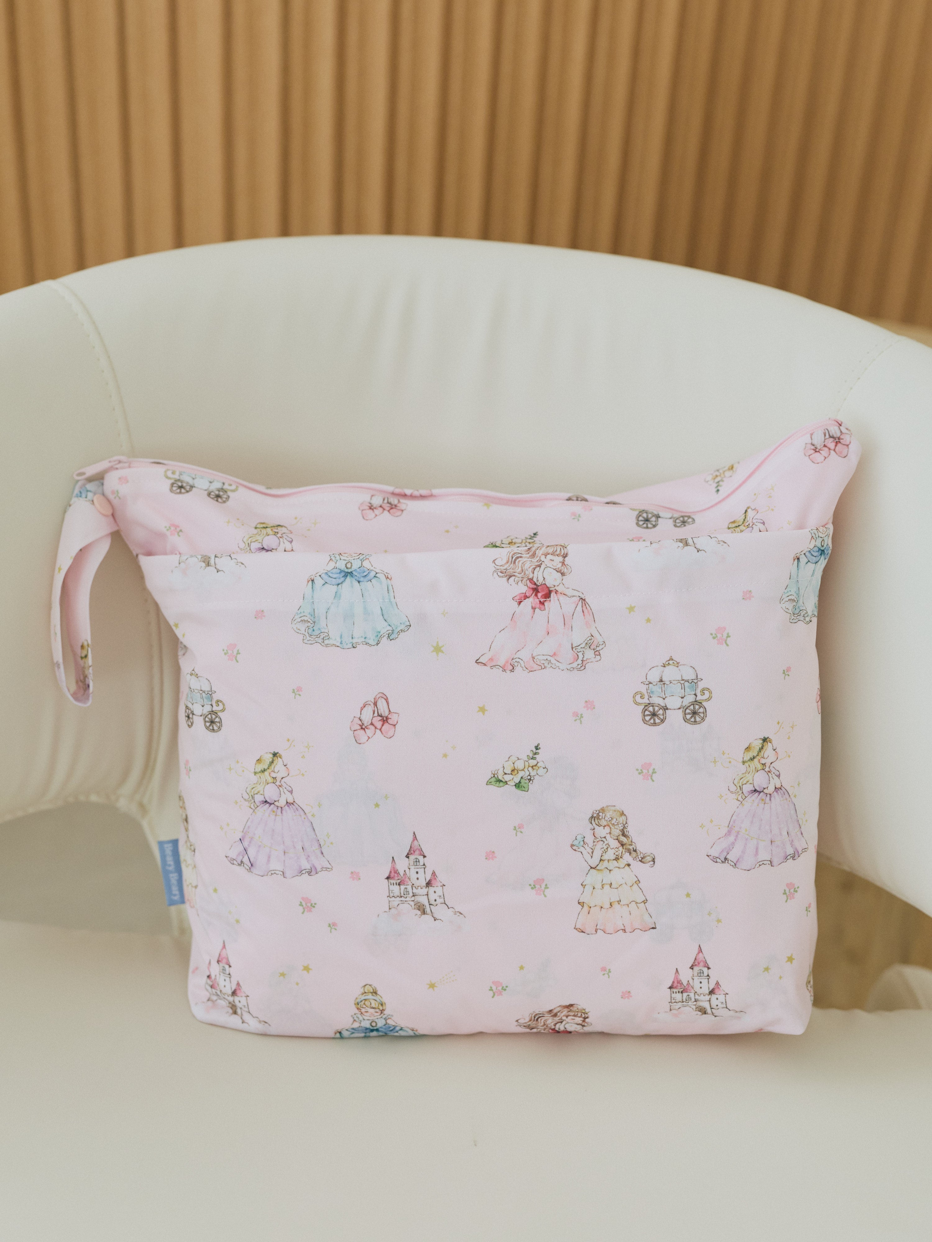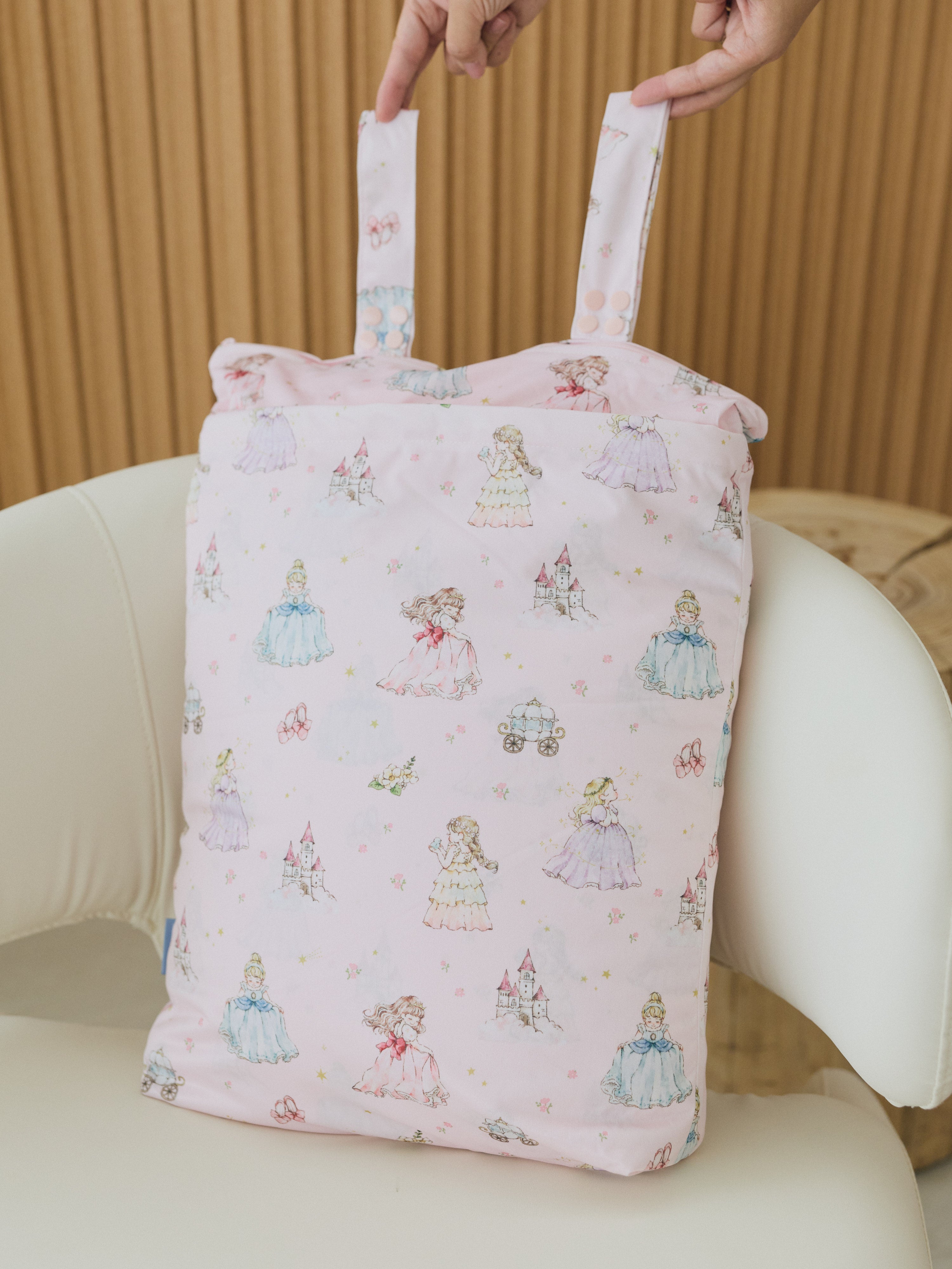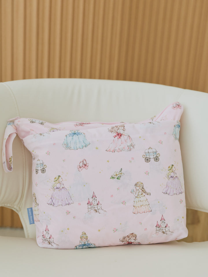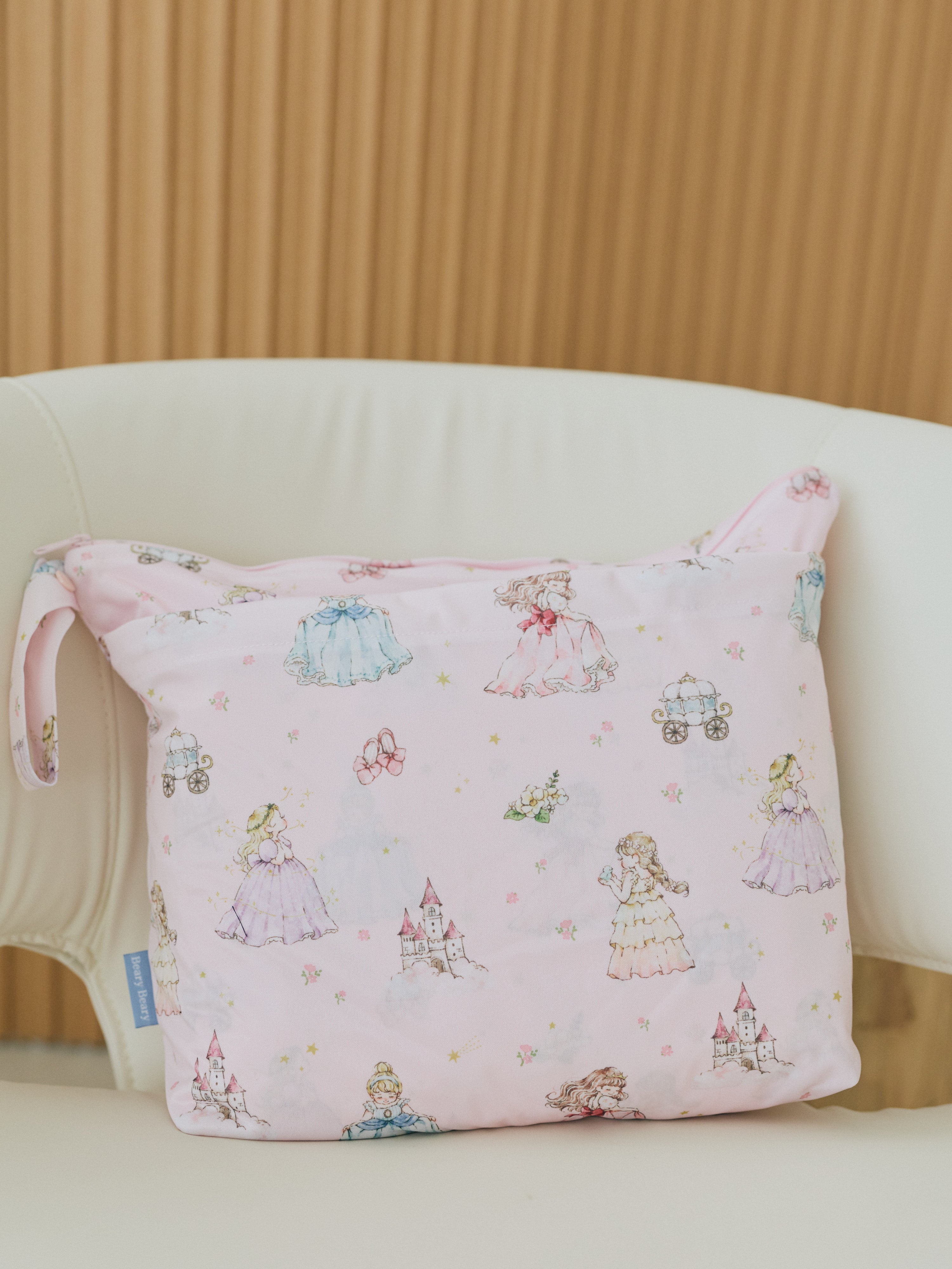 The spacious Size L wet bag also has double pockets for organizing wet and dry items. Perfect for larger items, it serves as an excellent swim bag or storage for sleeping essentials. It can comfortably fit one Toddler Head Pillow or two L-sized pillows. With its double strap design, this bag can be easily hung on a stroller or converted into a shoulder bag, allowing you to carry it hands-free!