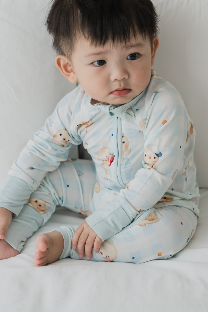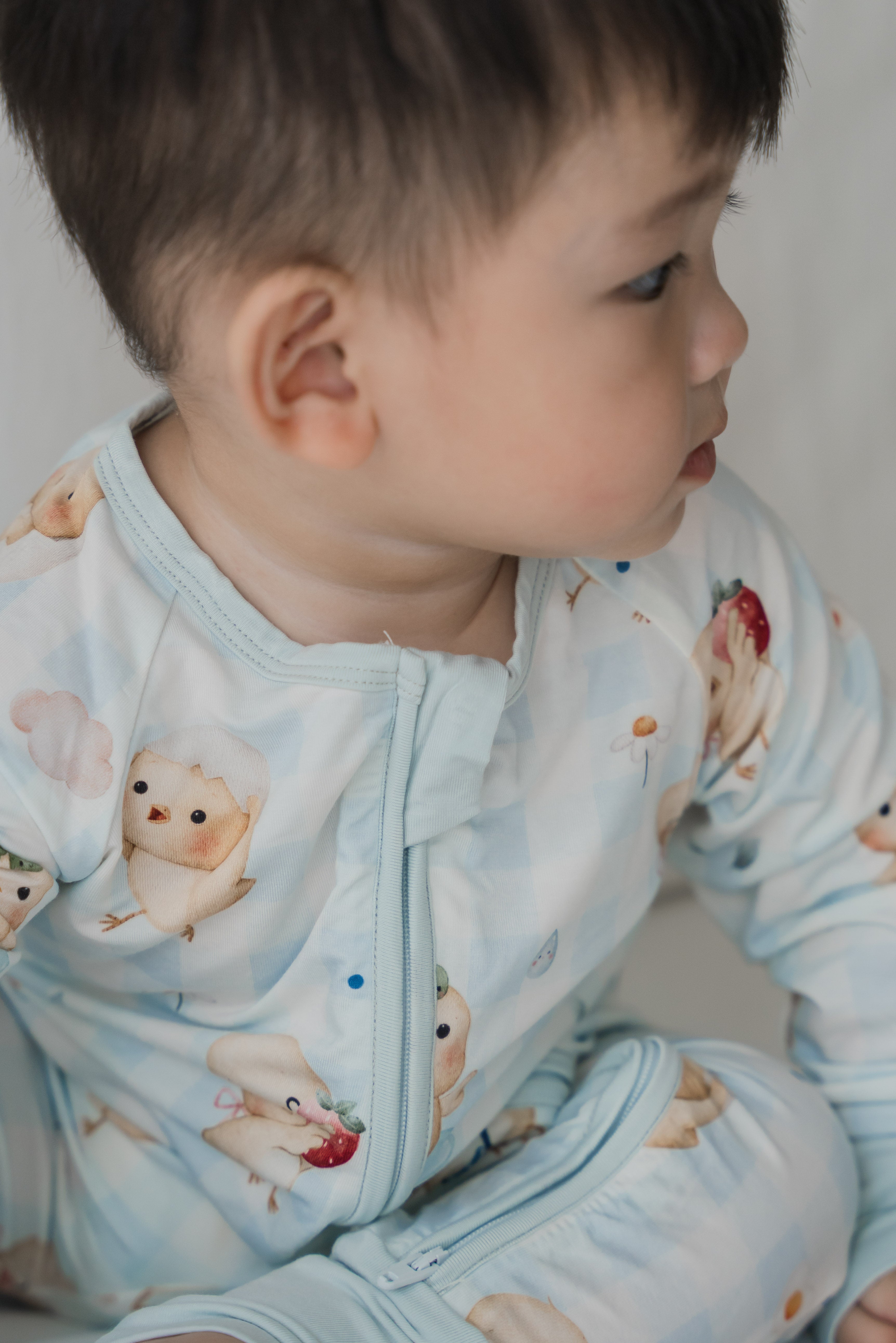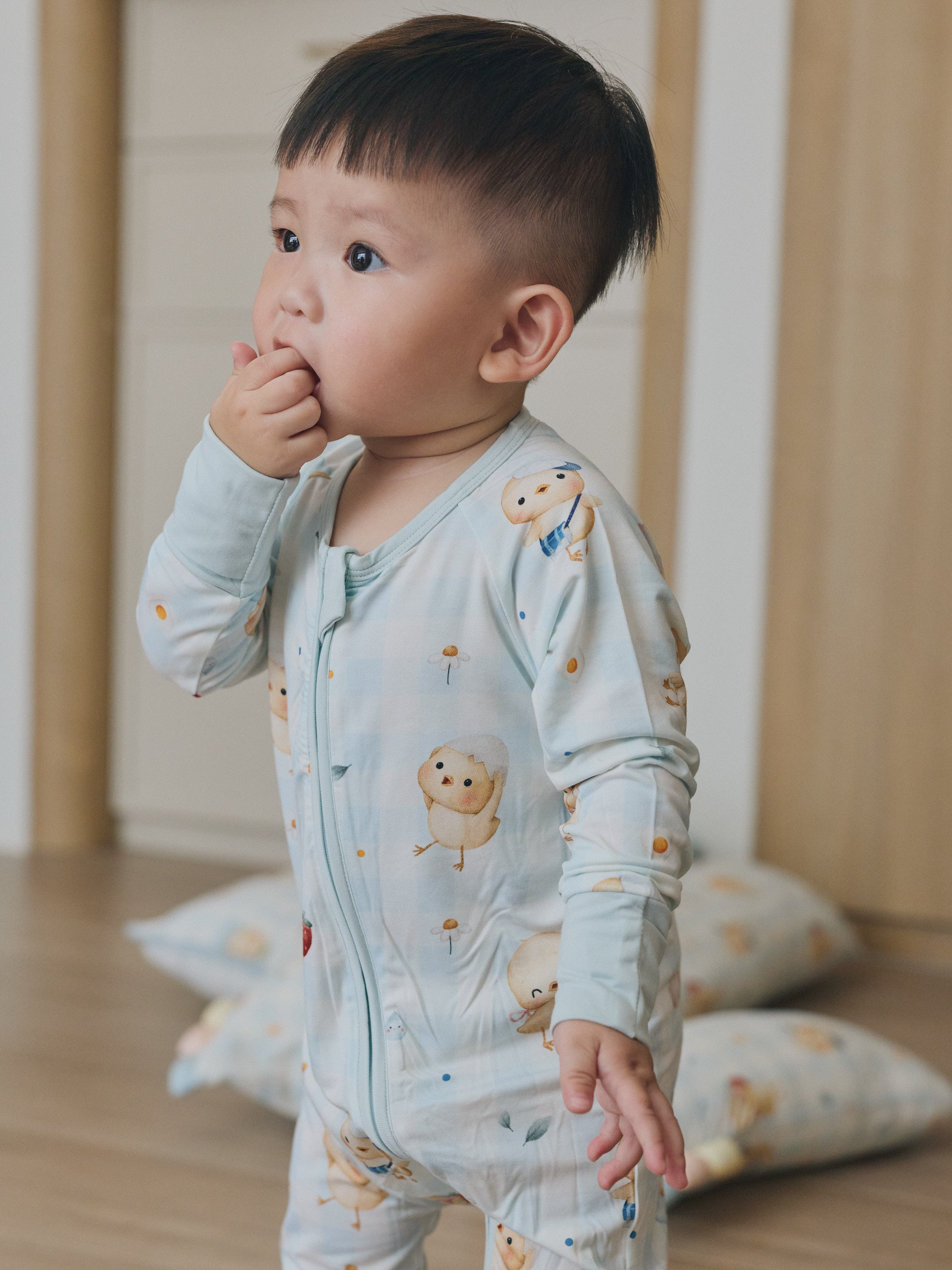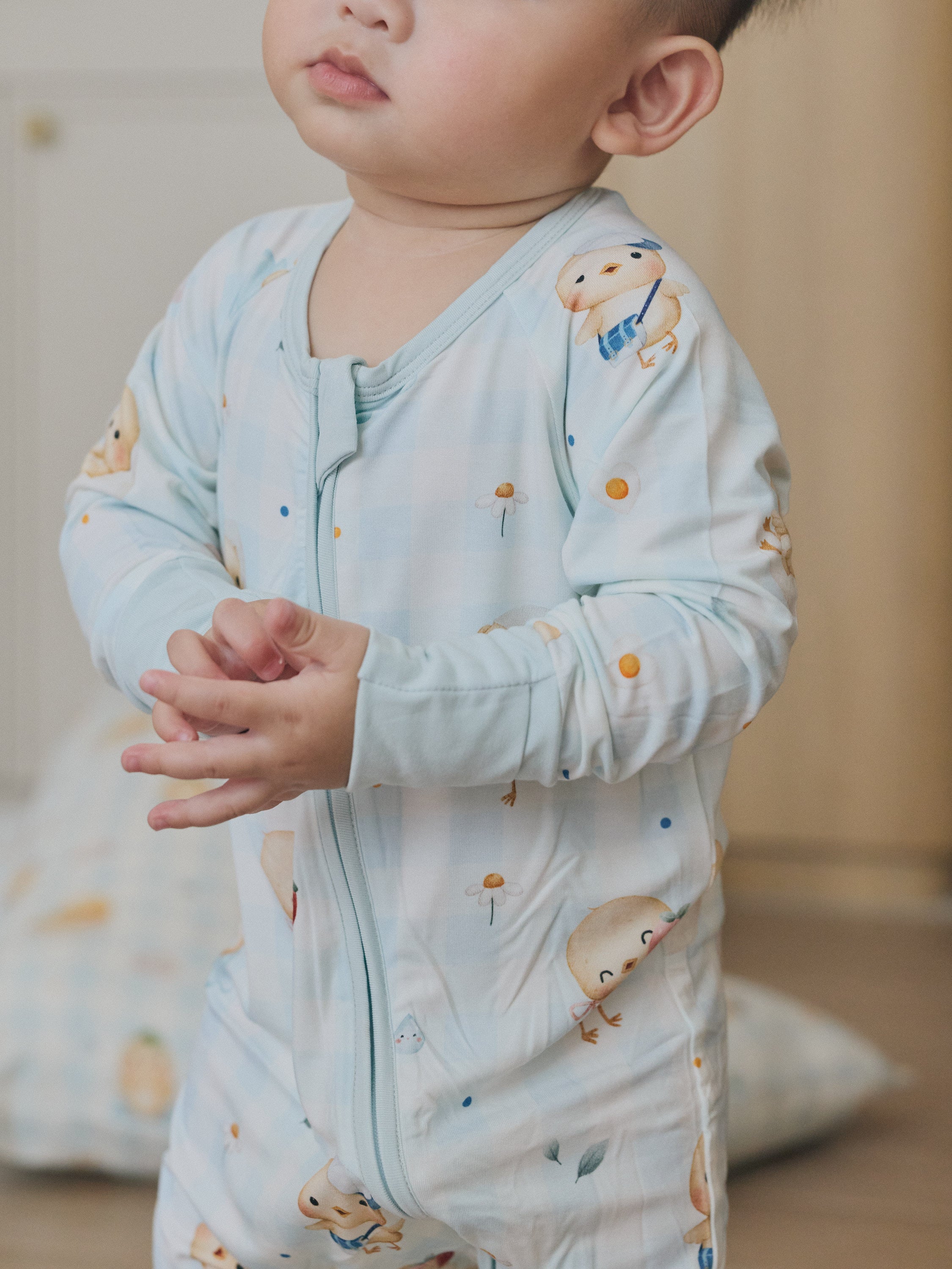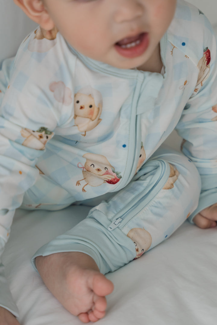 Sunny Side Chick Picnic Zipper Sleepsuit (Blue Checkered)