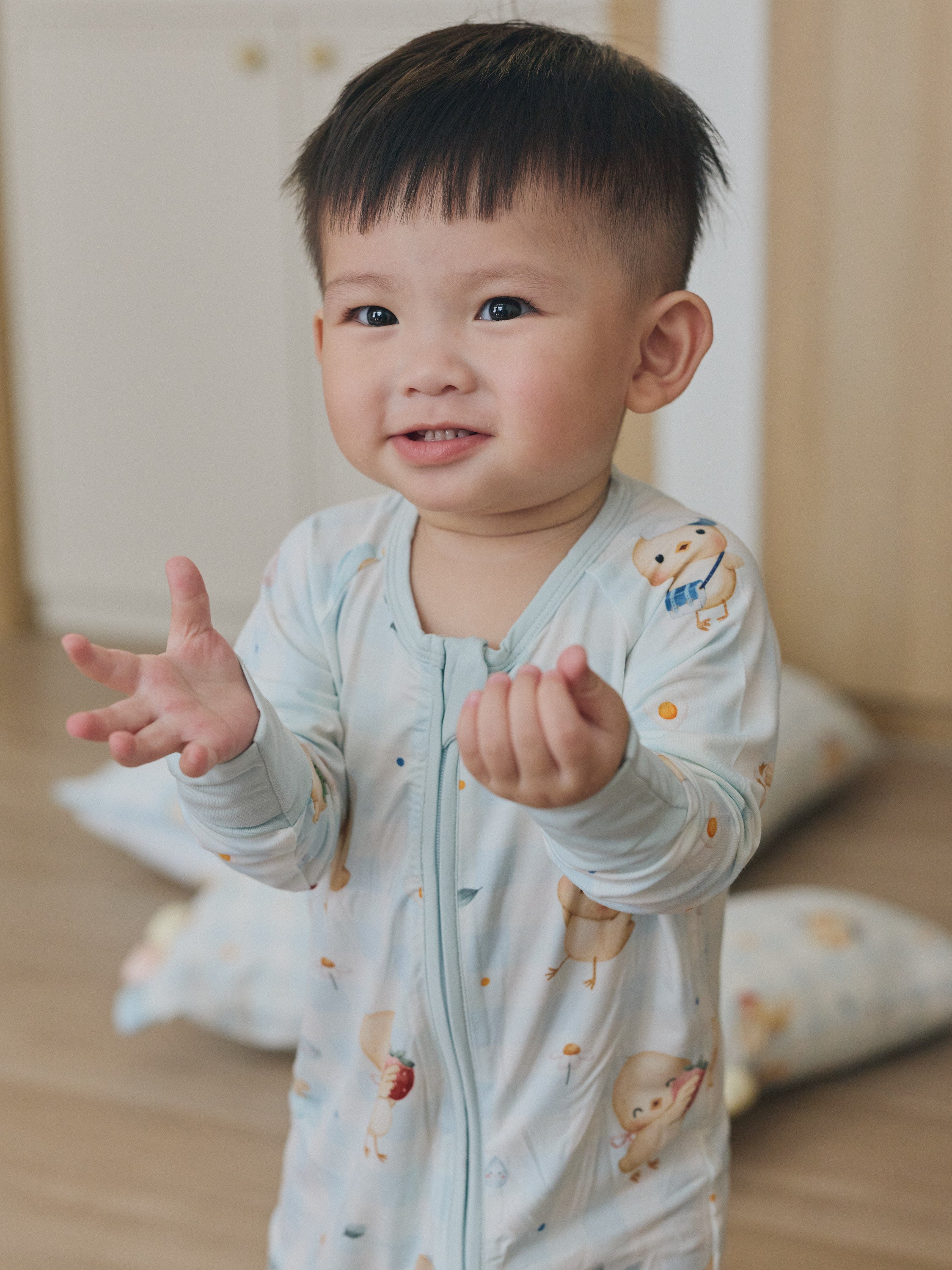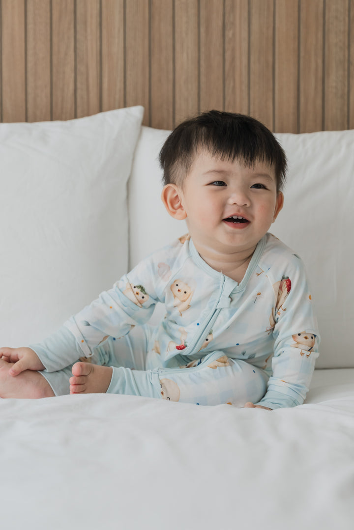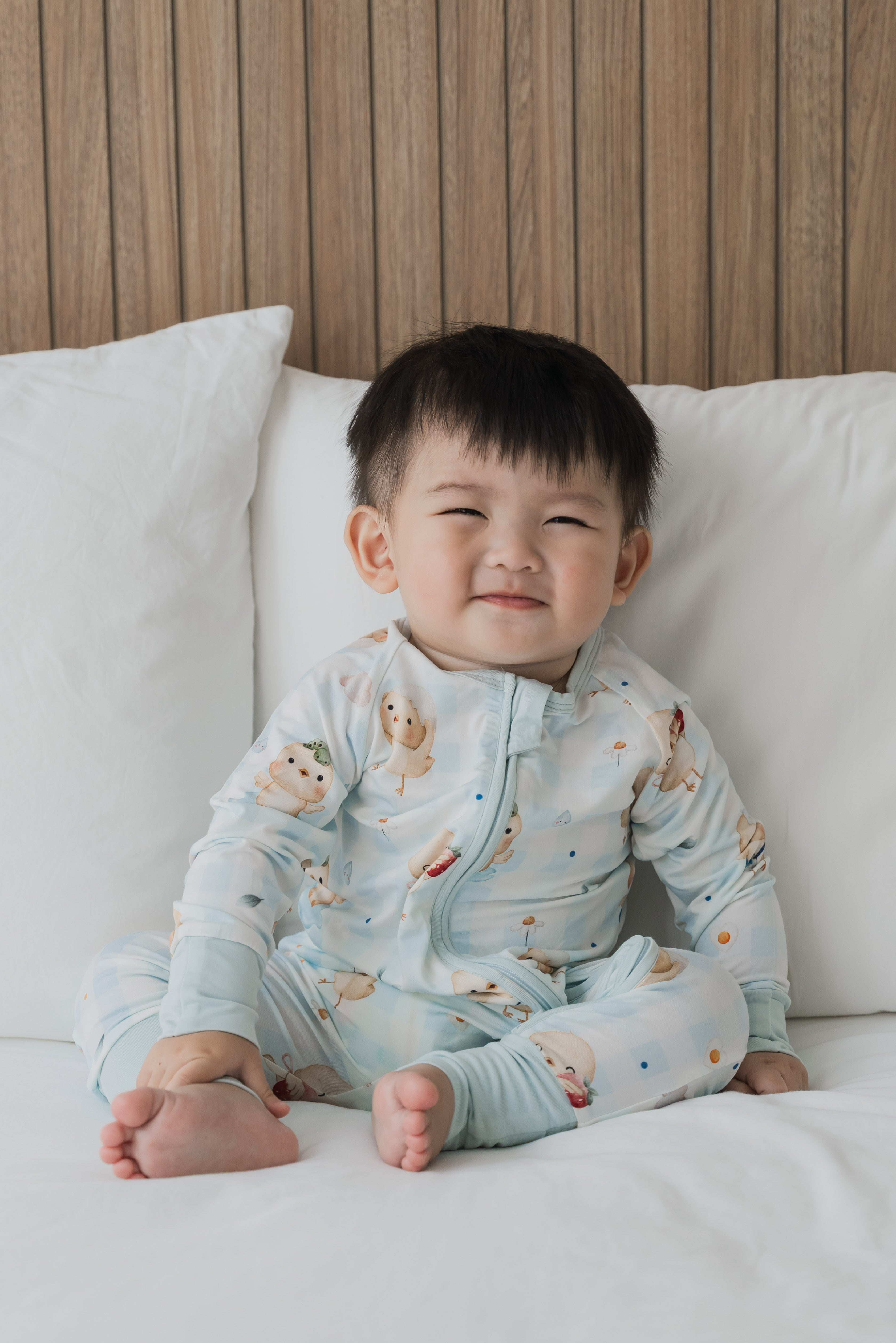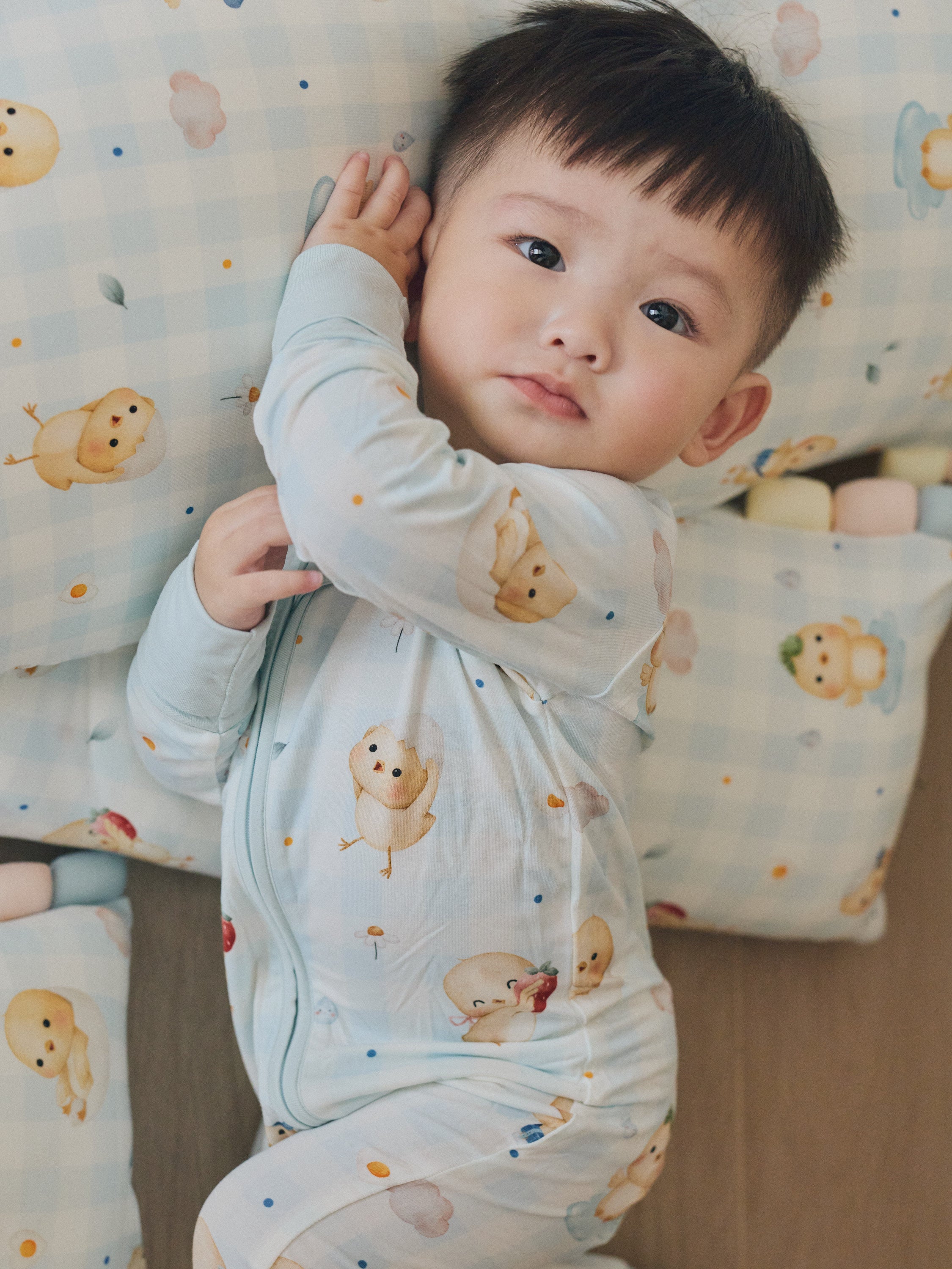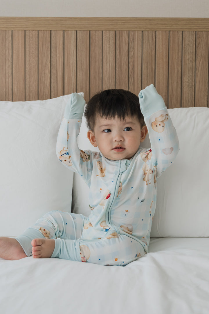 Sunny Side Chick Picnic Zipper Sleepsuit (Blue Checkered)