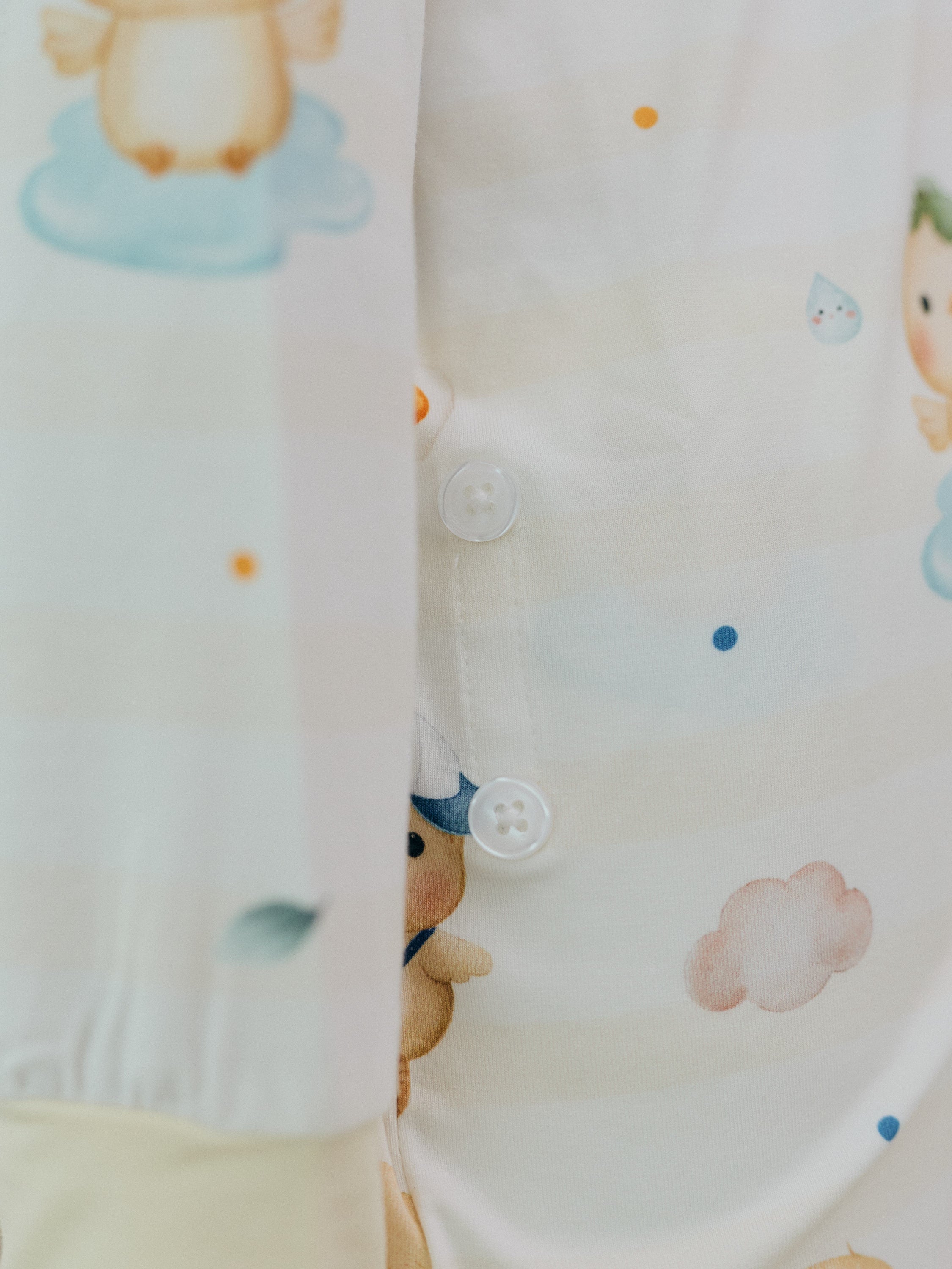 Indulge in the luxuriously soft feel of our premium bamboo sleepwear, designed for the ultimate in comfort and care. Featuring moisture-wicking, breathable, and cooling properties, this sleepwear naturally regulates your body temperature. Hypoallergenic and OEKO-TEX Standard 100 certified, it ensures safe and gentle wear for sensitive skin. A convenient side button detail prevents the top from riding up, offering uninterrupted comfort throughout the night.