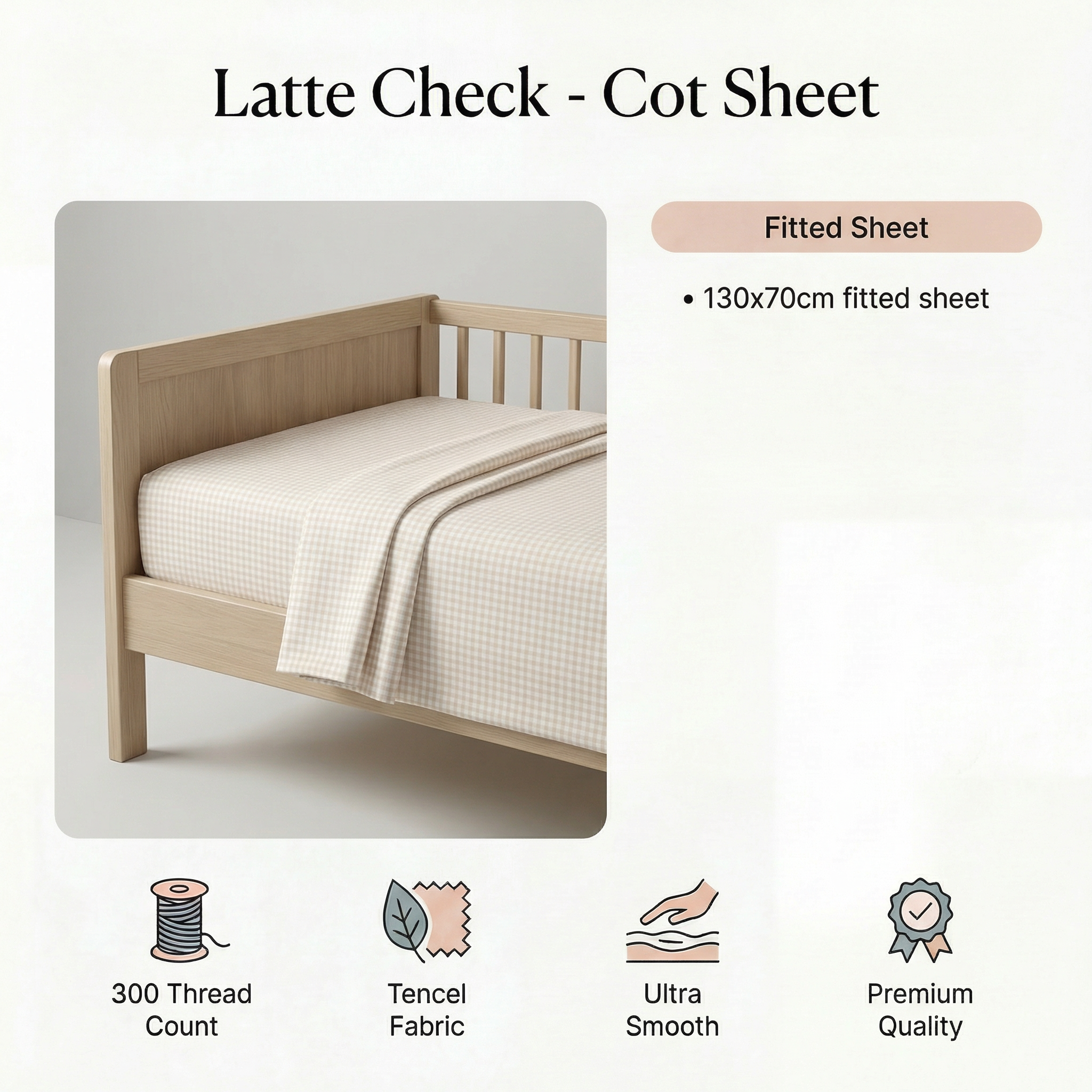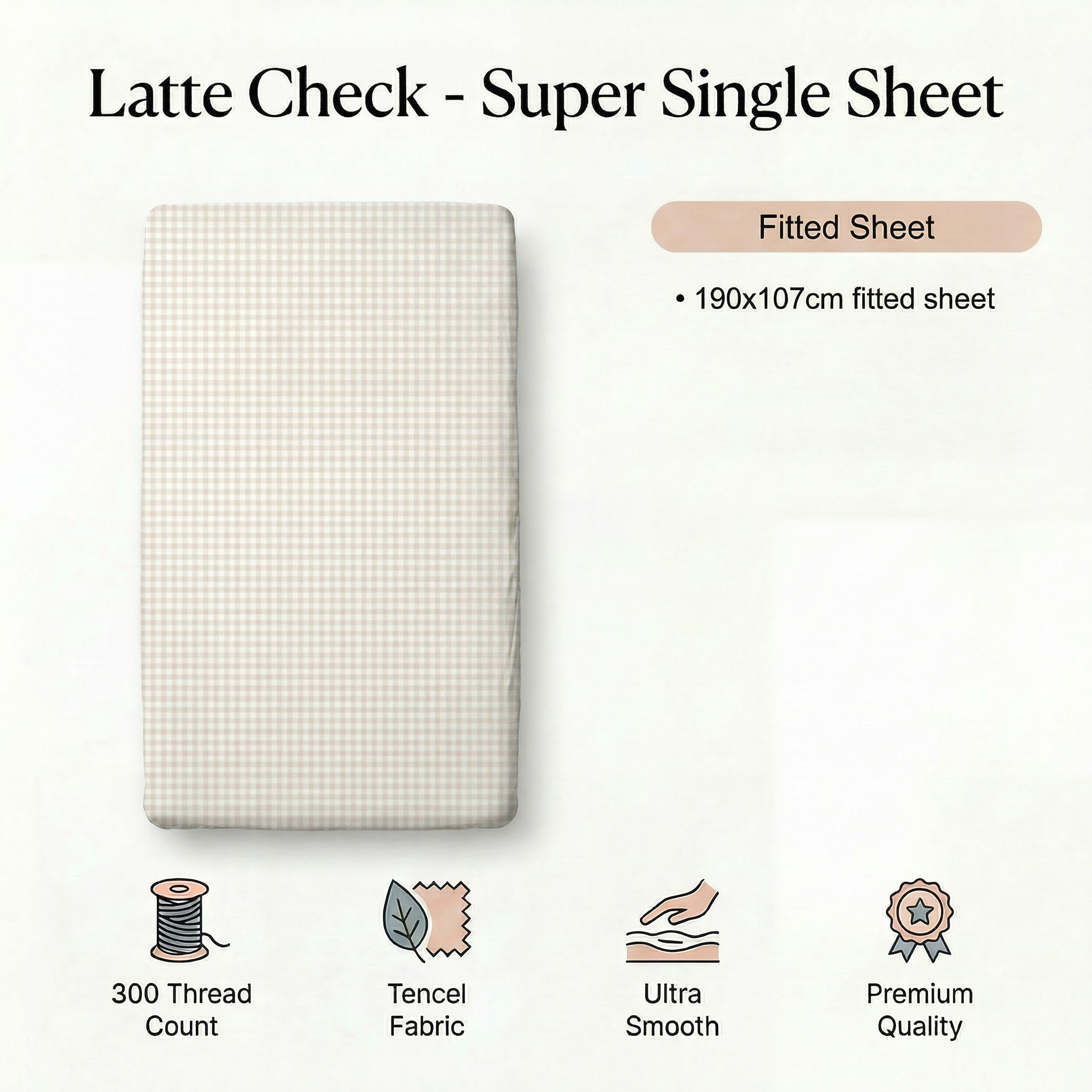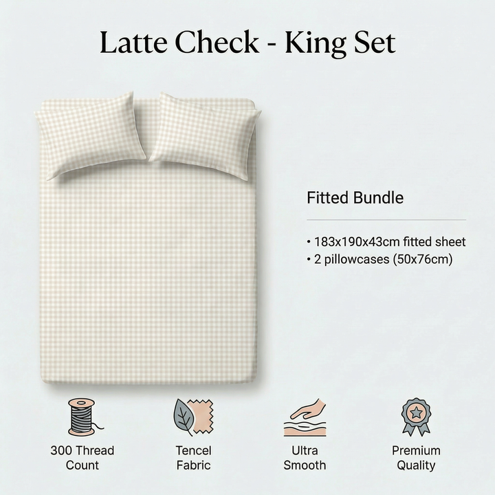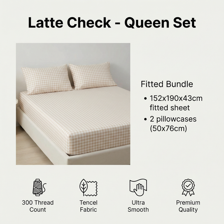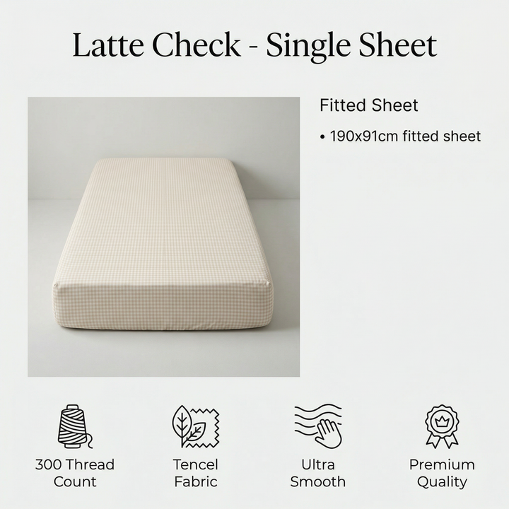 Tencel Waterproof Sheet - Latte Check