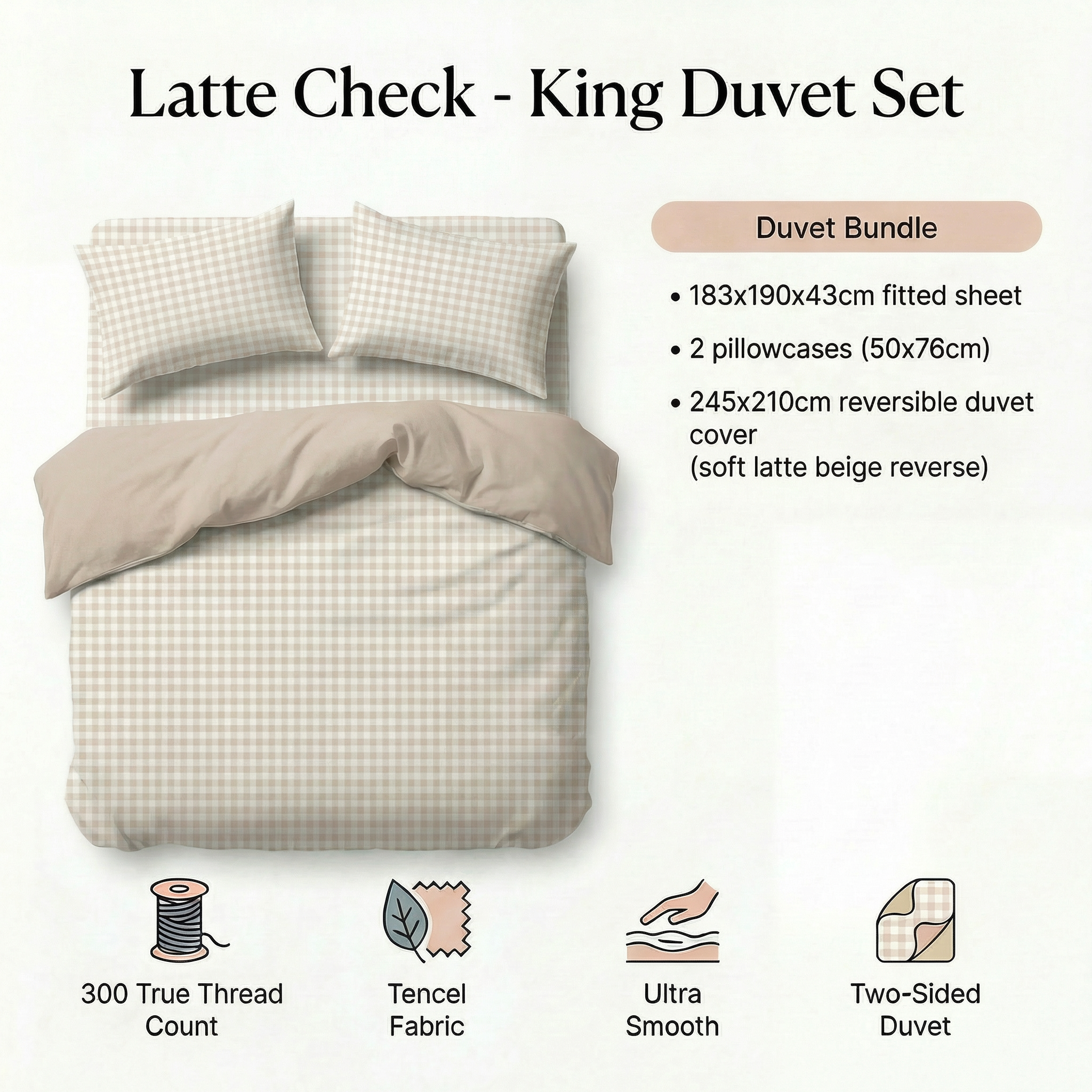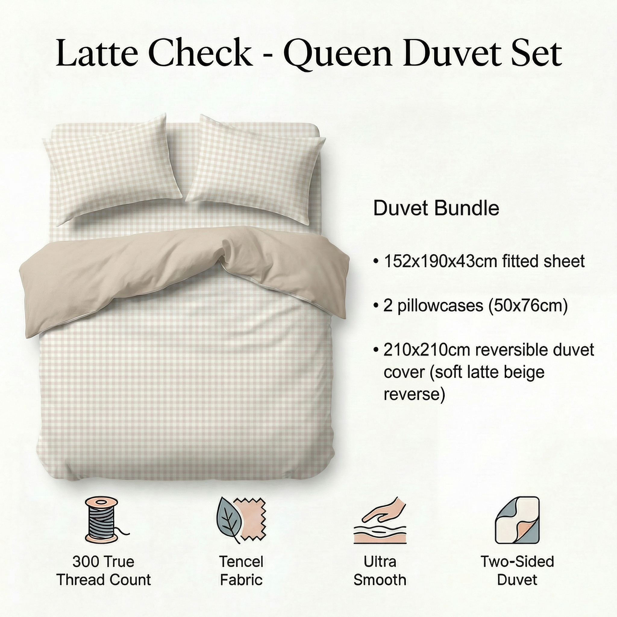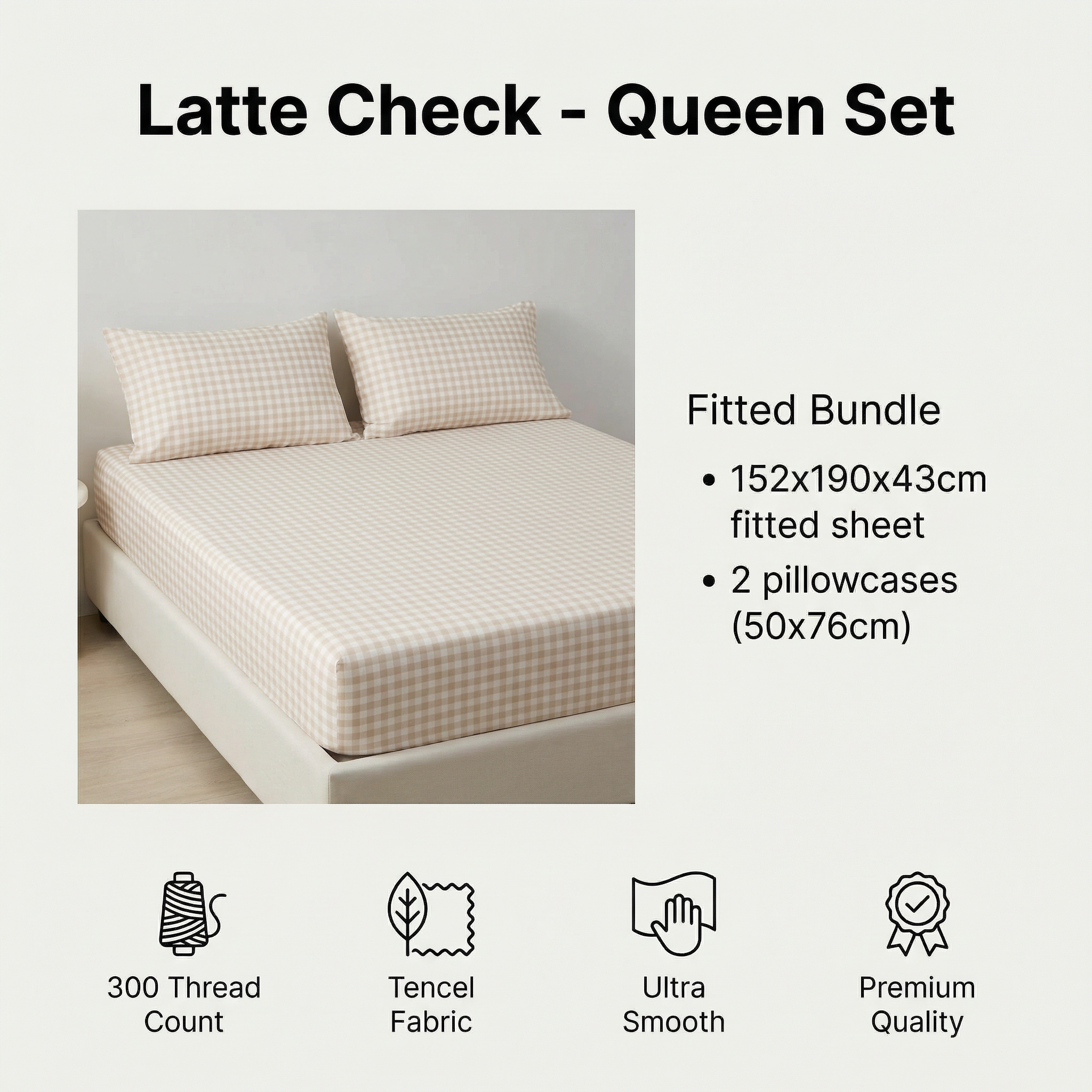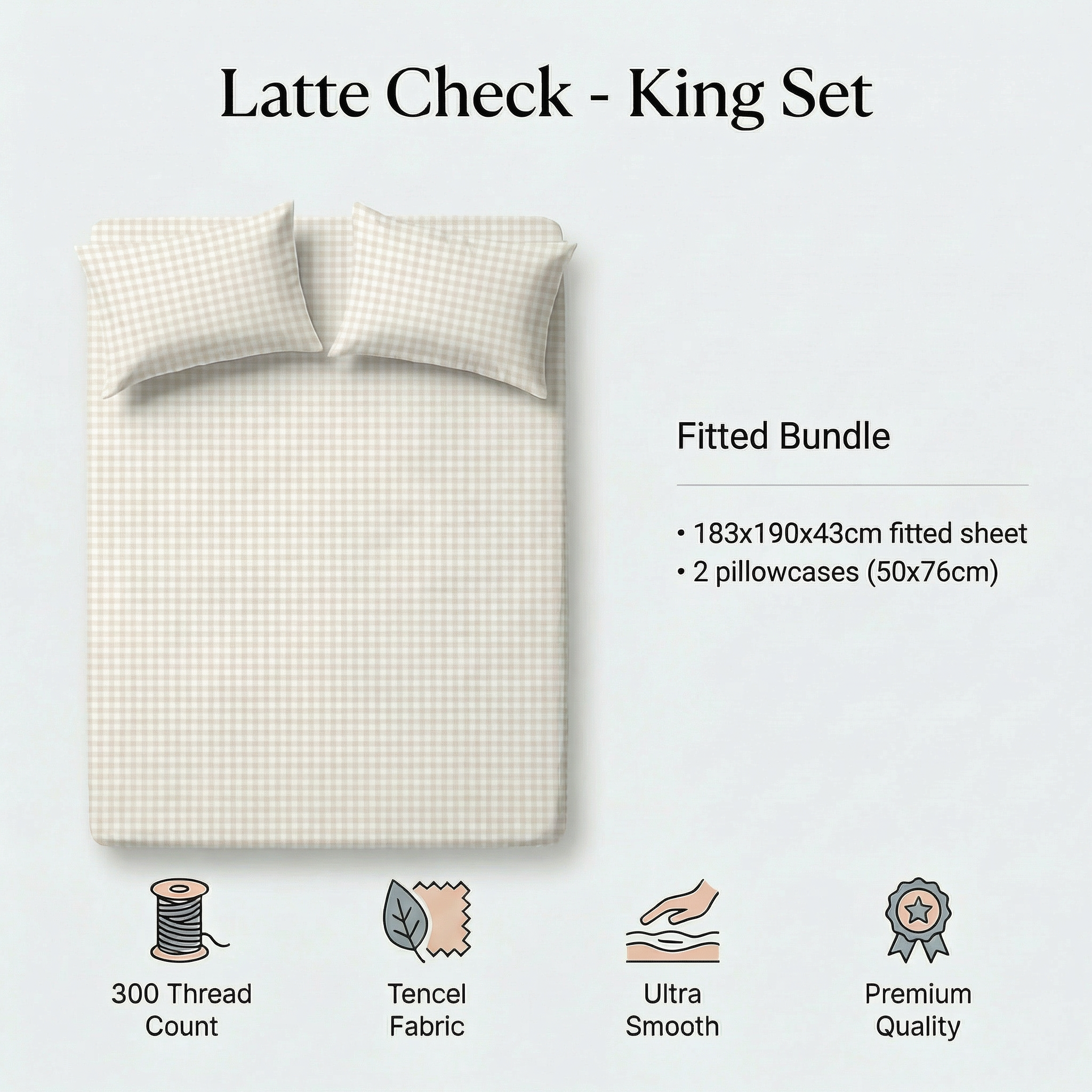 Tencel Waterproof Sheet - Latte Check