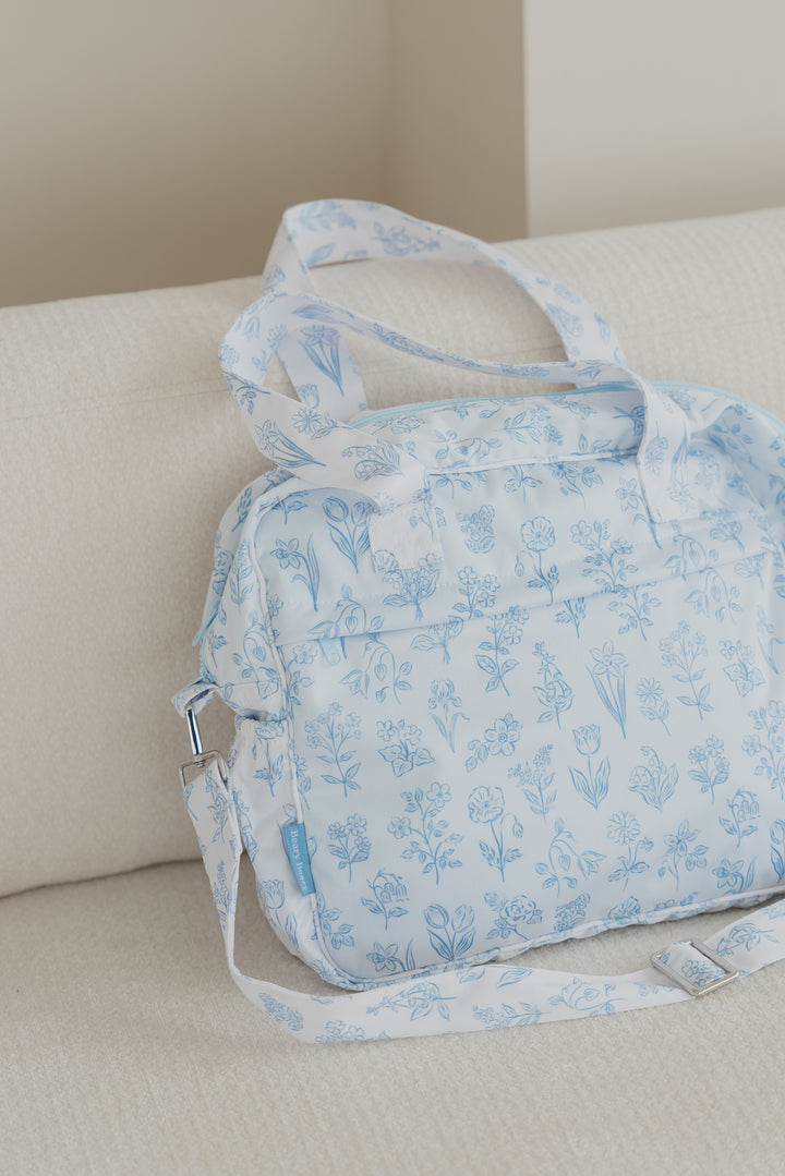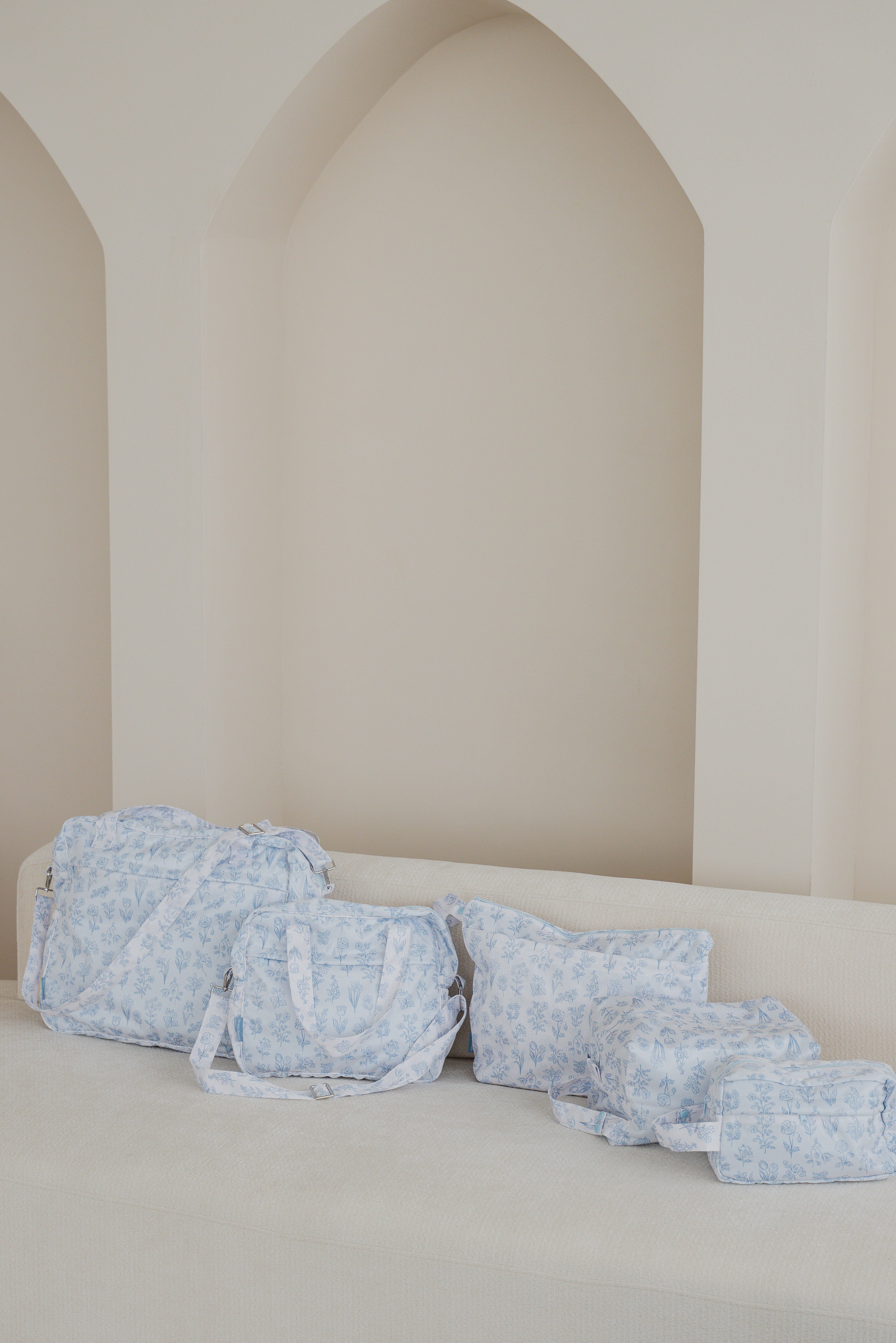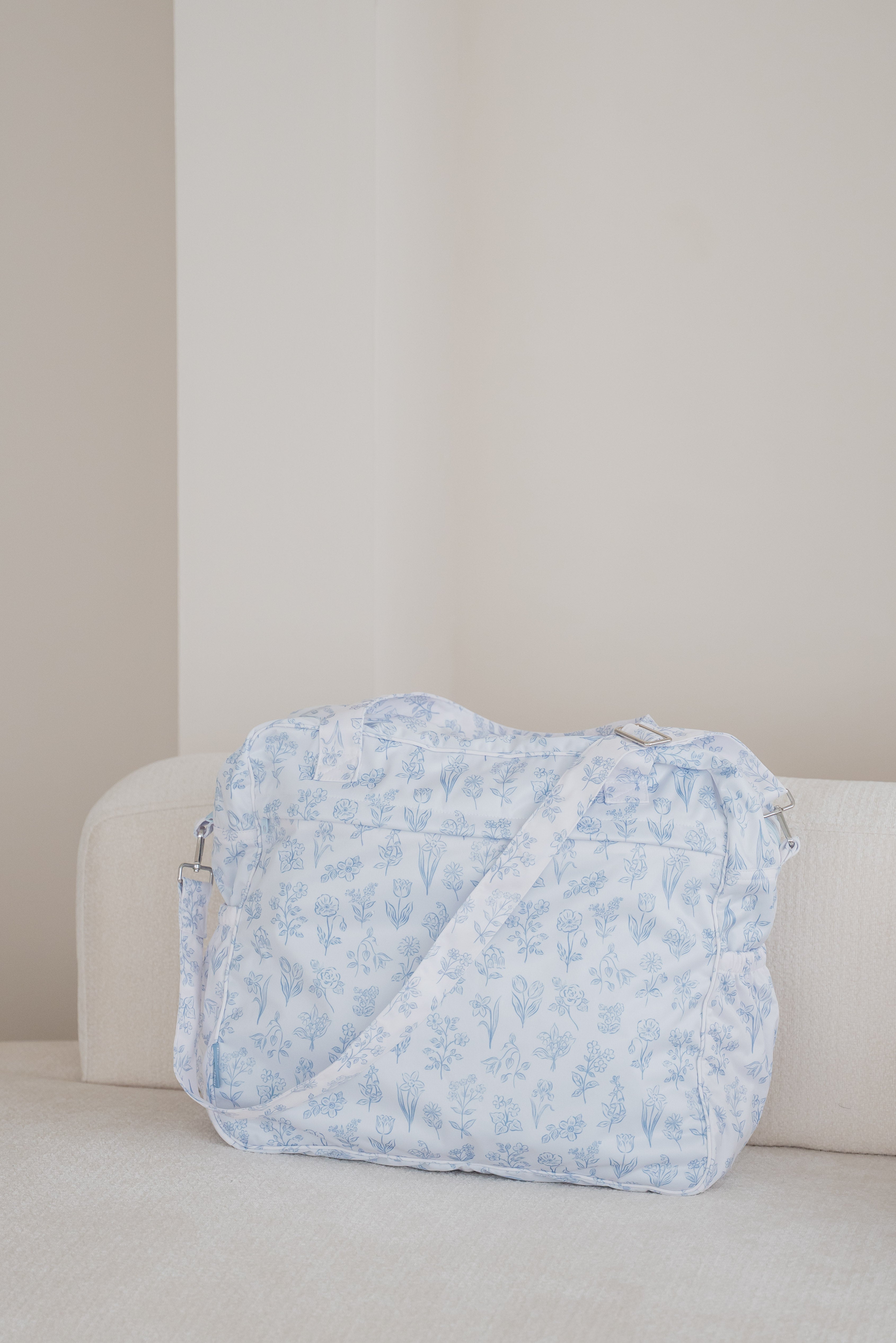 Adorned with soft blue botanical sketches on a creamy canvas, this print draws inspiration from vintage floral illustrations. Its gentle palette and airy composition create a serene, timeless aesthetic that suits both modern and classic interiors. Designed to be neutral and calming, it brings quiet elegance to your little one’s sleep space.