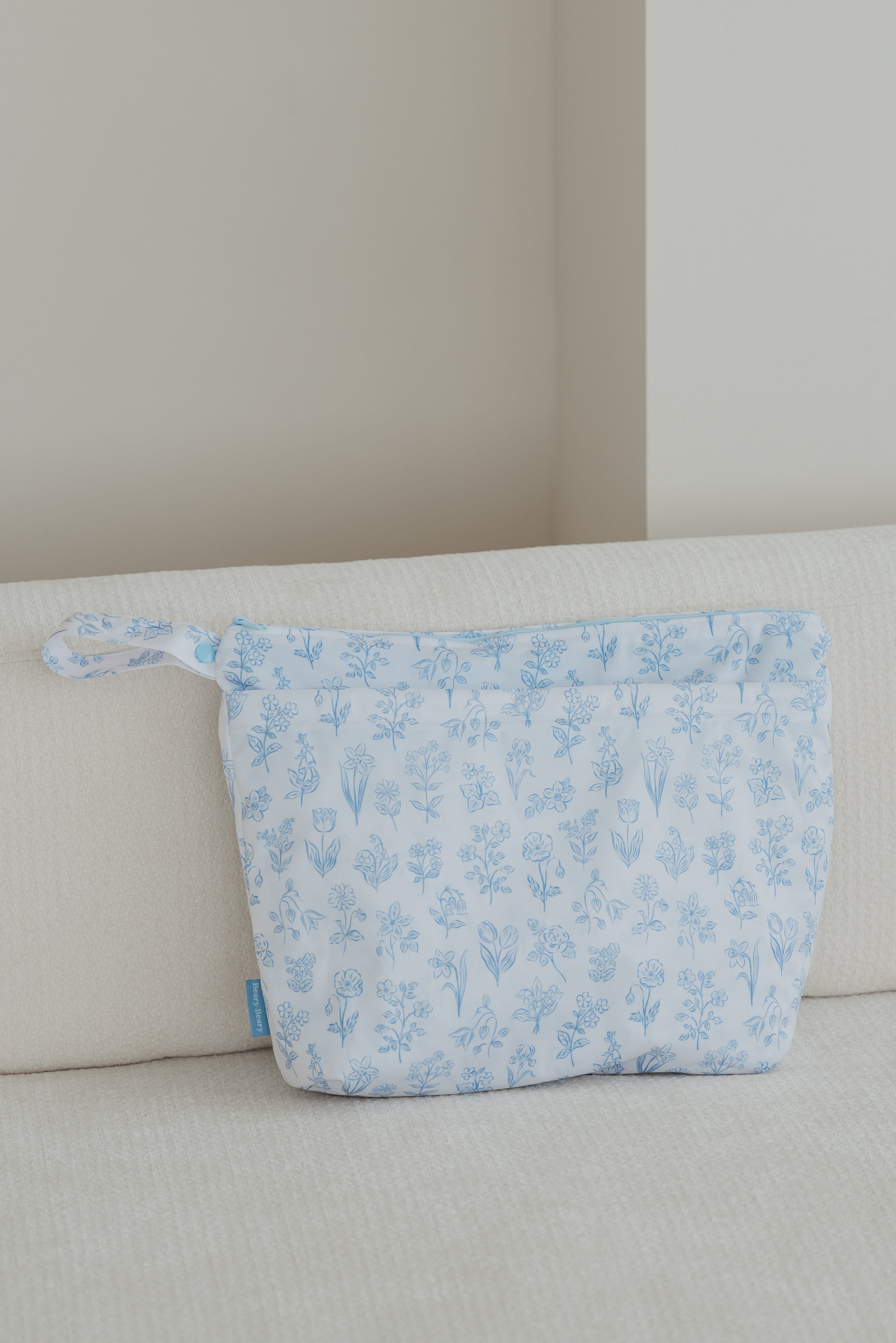 The spacious Size L wet bag also has double pockets for organizing wet and dry items. Perfect for larger items, it serves as an excellent swim bag or storage for sleeping essentials. It can comfortably fit one Toddler Head Pillow or two L-sized pillows. With its double strap design, this bag can be easily hung on a stroller or converted into a shoulder bag, allowing you to carry it hands-free!